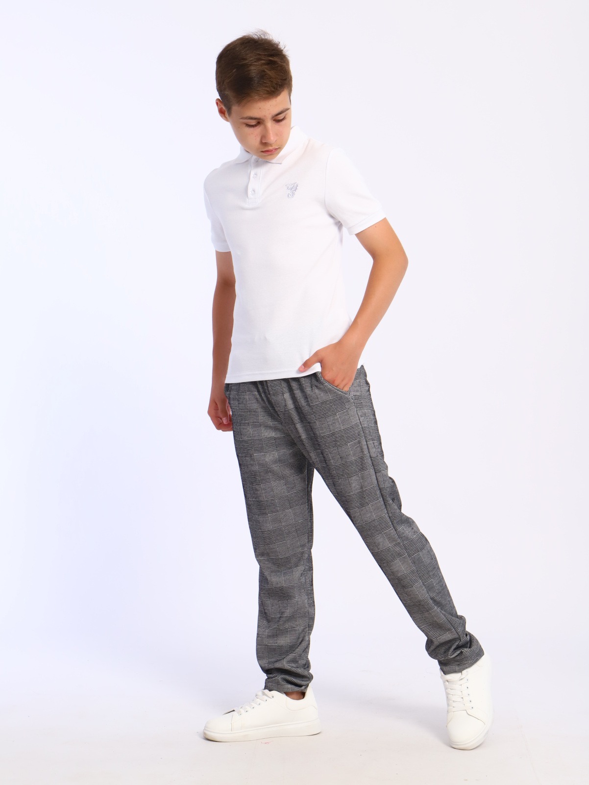 Подростковые штаны прямого кроя, с поясом на резинке, делают фасон универсальным под любую фигуру, с отделкой регулировочным шнурком, удобной посадкой на талии.