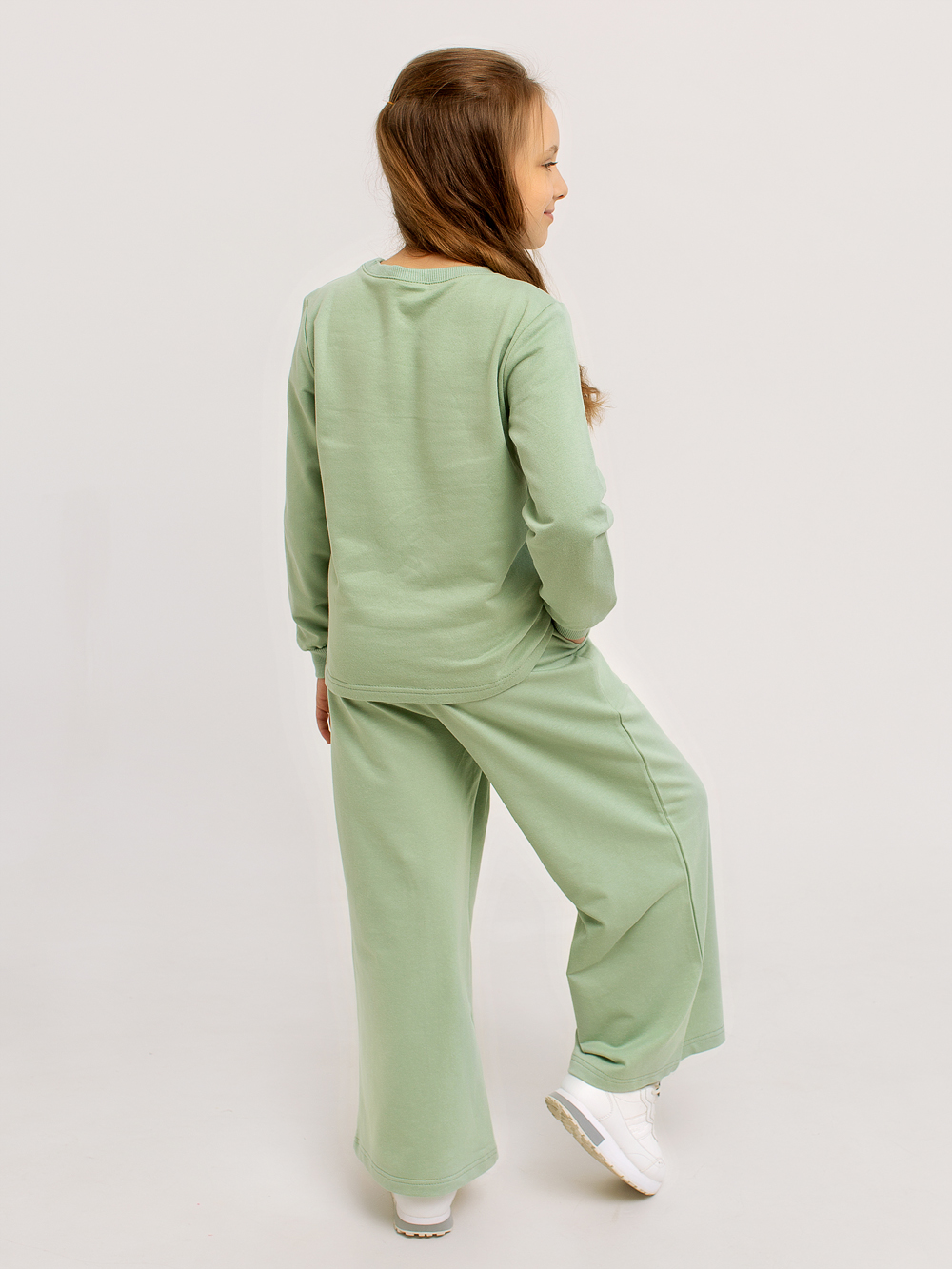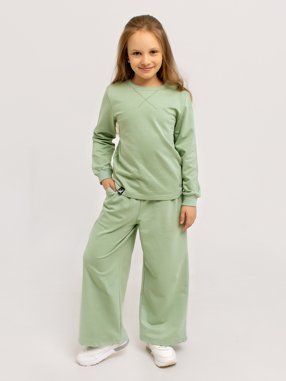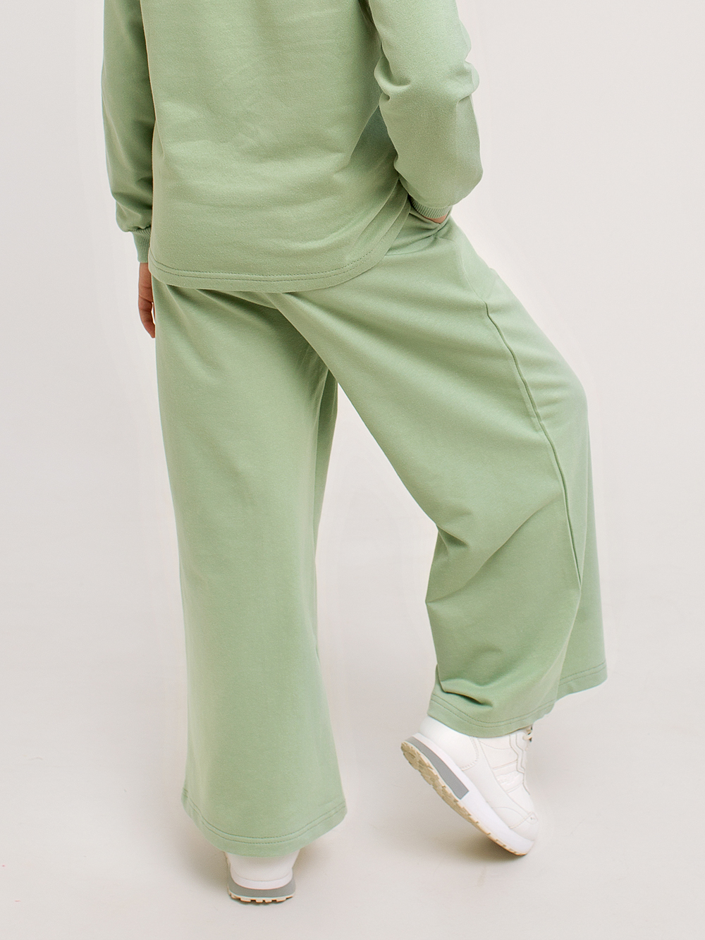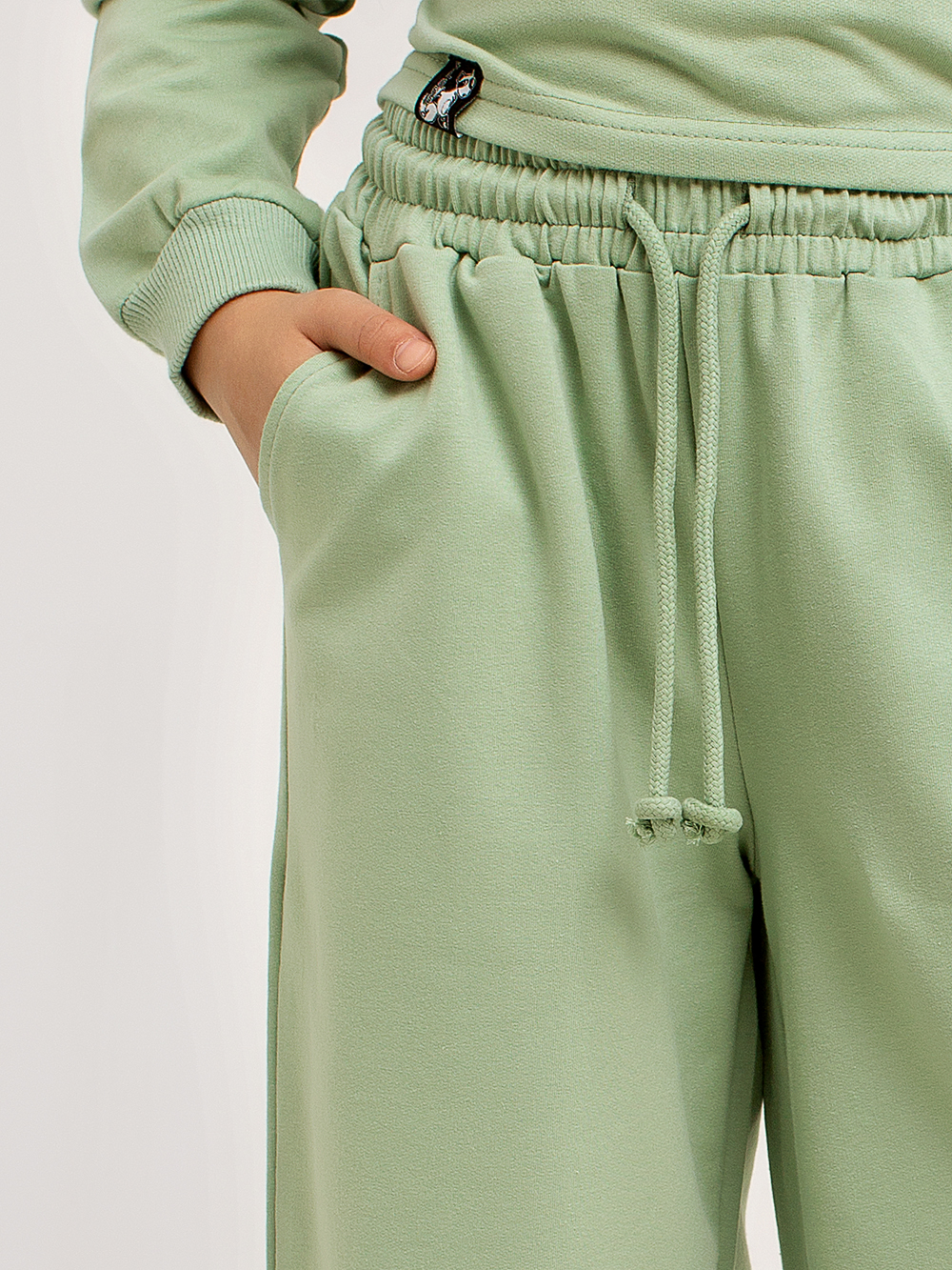 Стильные и удобные широкие брюки палаццо для девочки с высокой посадкой на резинке из футера — идеальный выбор на весну и осень. Мягкая ткань с составом 95% хлопок, 5% эластан приятна к телу, хорошо тянется и не сковывает движений. Модель на резинке со шнуром, что обеспечивает комфортную посадку и регулируется по талии. Широкие штанины и боковые карманы делают эти брюки не только модными, но и практичными. Однотонный цвет легко сочетается с любой одеждой. Отличный вариант для школы, прогулок и активного отдыха.