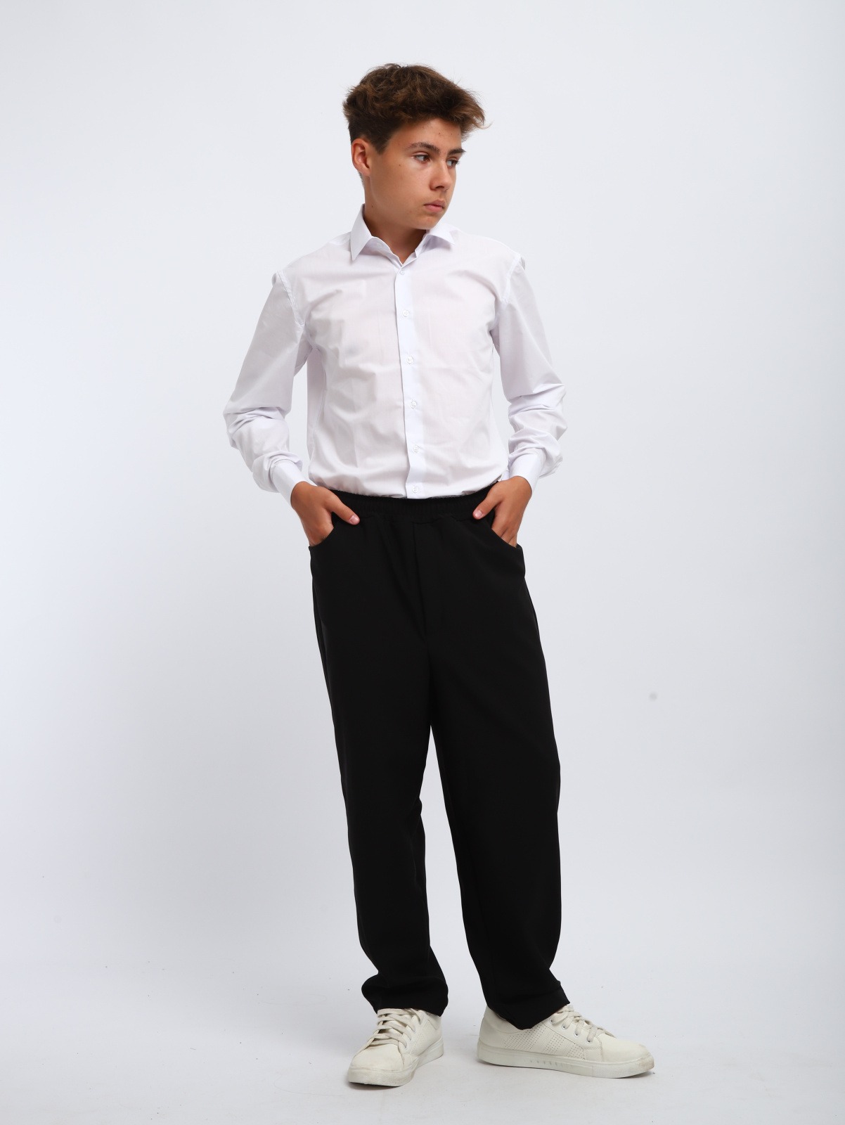 Брюки школьные Дмитрий для мальчика выполнены из прочной и плотной ткани синего цвета, поэтому держат форму и дают свободу движения. Прямой классический крой ,пояс на резинке без застежки помогает быстро подогнать посадку - удобные и на уроках, и во время активных перемен. Наши свободные брючки из стрейч ткани с акцентом на комфорт и стиль. Модная трикотажная модель в стиле кэжуал (casual) то что нужно для весны и осени,также базовые демисезонные штанишки - это практичная детская одежда на каждый день.