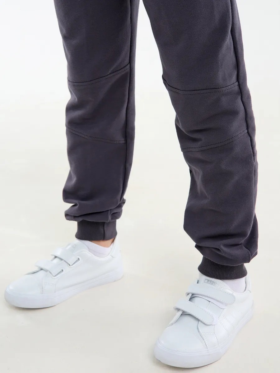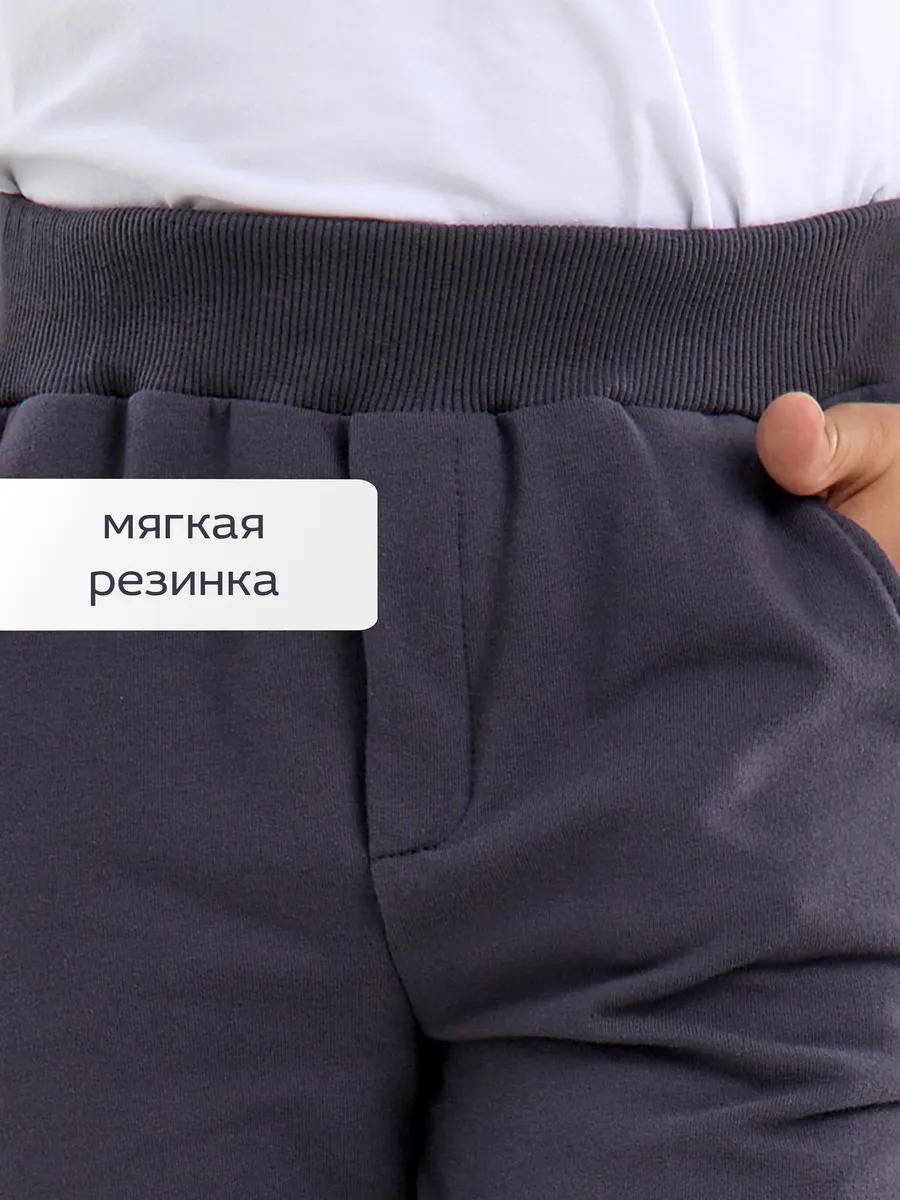 Эластичные волокна футера устойчивы к изнашиванию, не теряют цвет даже после многочисленных стирок. Модель брюк полуприлегающая с удобными карманами. Пояс выполнен из кашкорсе со свободной и эластичной резинкой на талии, что обеспечивает дополнительный комфорт и надежную посадку на талии ребёнка. Манжеты внизу брюк придают дополнительное удобство в носке, а также создают модные и зауженные линии. Оверсайз прямой фасон идеальная модель для любого случая