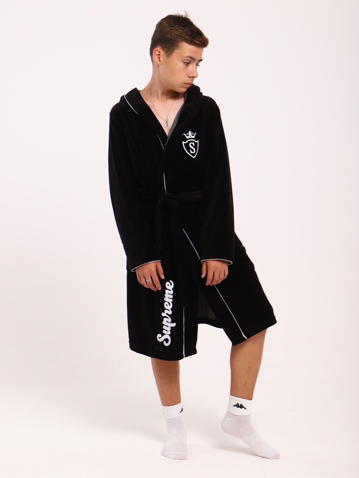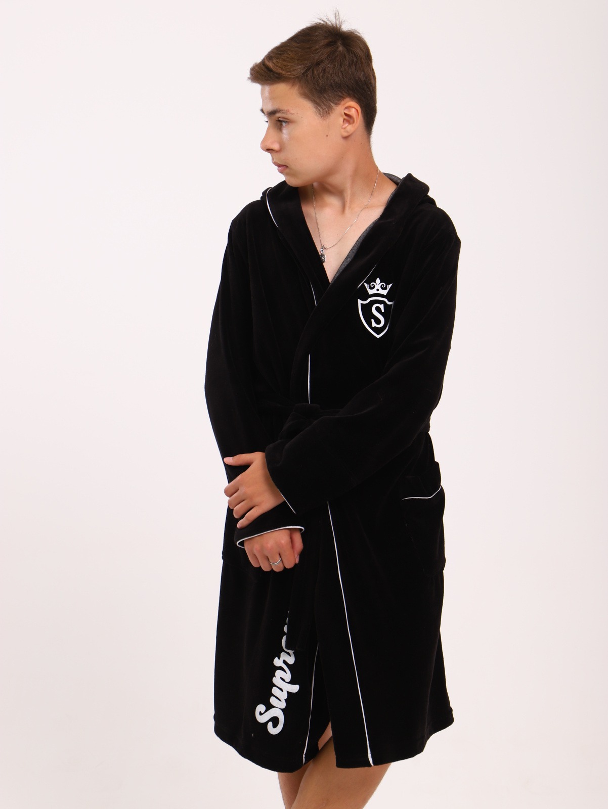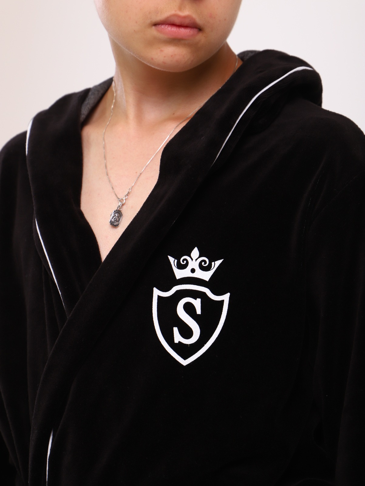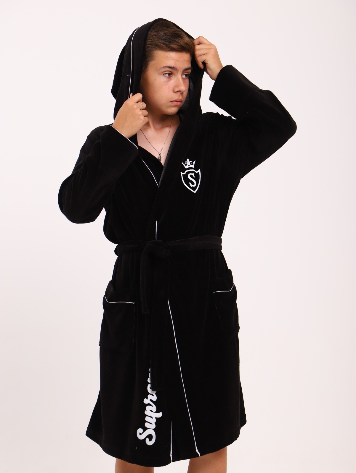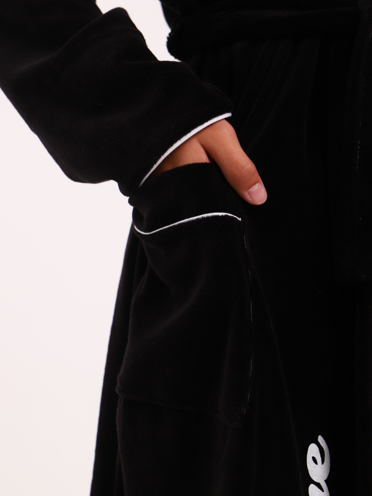 Банный детский халат "Самсон" / Черный сшит их велюра с хлопком. Застежка на запах, по талии фиксируется поясом. Очень нежный, мягкий и свободный.