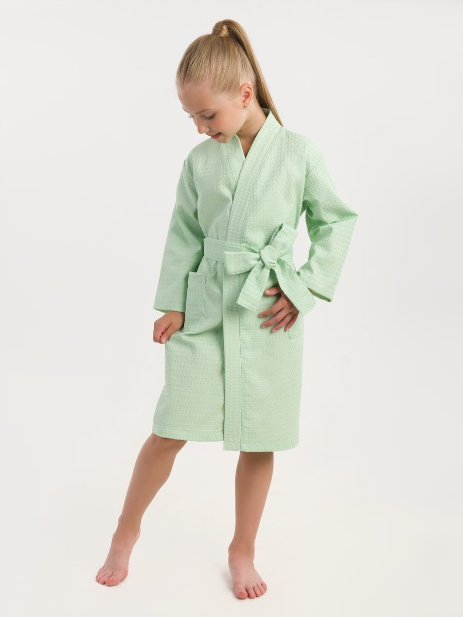 Вафельный халатик для детей, выполненный из натурального материала – 100% хлопка с карманом, удобен и универсален. Ткань не вызывает аллергии и раздражения кожи, прекрасно пропускает воздух, быстро впитывает влагу и так же мгновенно сохнет. Форма халата с запахом и широким поясом позволит использовать его долгое время, несмотря на быстрый рост ребенка. Поэтому для домашнего ухода за детьми вафельный халат является одной из самых удобных и практичных вещей. Халат из вафельной ткани легкий и практичный, благодаря натуральному составу ткани сохраняется комфортная температура тела, идеальная для жаркого лета. После любых водных процедур, вафельный халатик создаст приятную прохладу и быстро высушит тело, он свободный и приятный к детской коже.