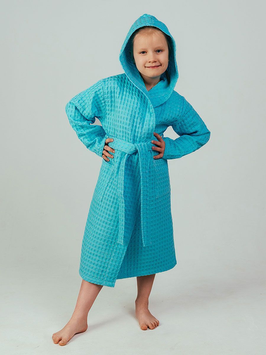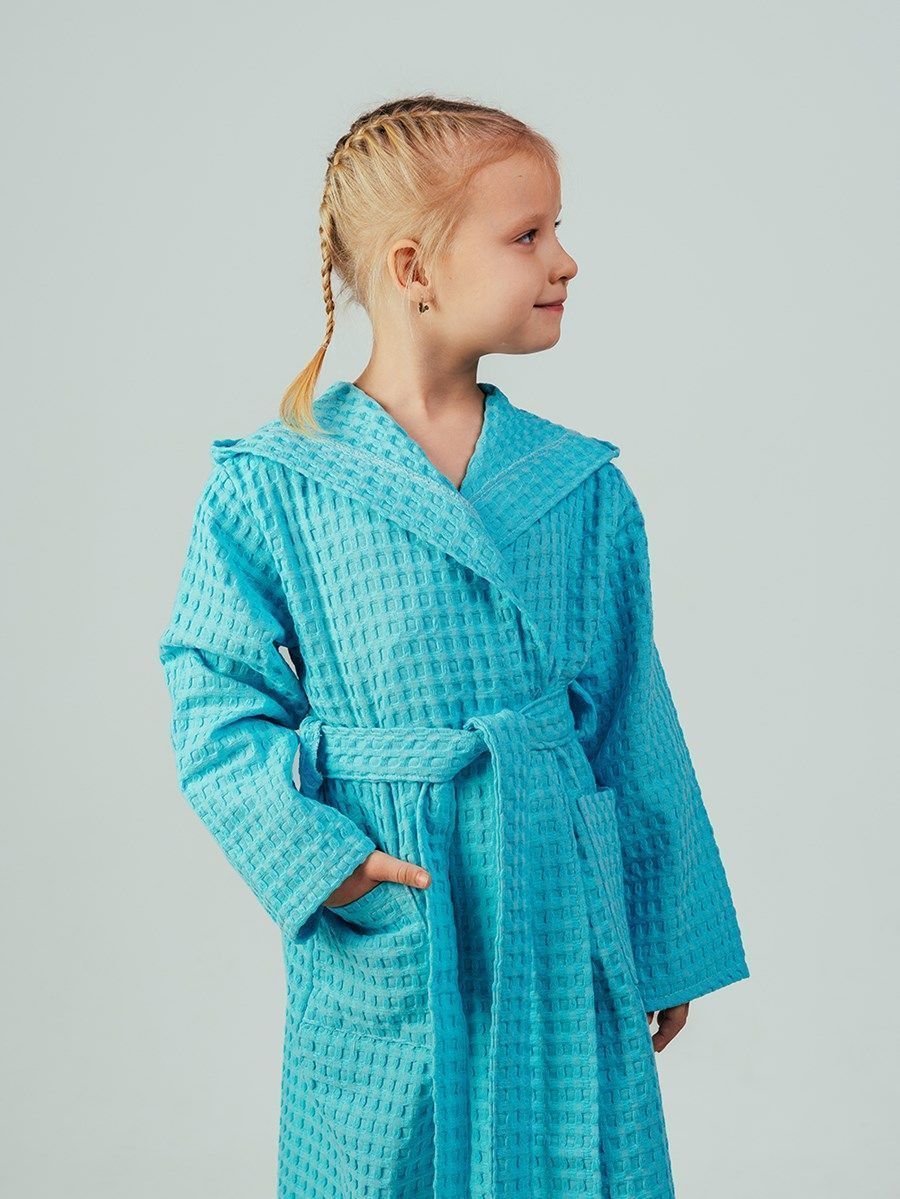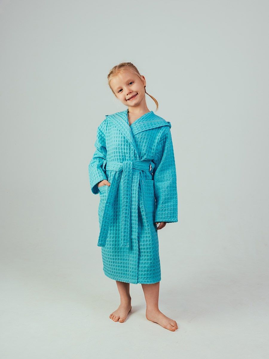 Вафельный халатик для детей, выполненный из натурального материала – 100% хлопка с карманом, удобен и универсален. Ткань не вызывает аллергии и раздражения кожи, прекрасно пропускает воздух, быстро впитывает влагу и так же мгновенно сохнет. Форма халата с запахом и широким поясом позволит использовать его долгое время, несмотря на быстрый рост ребенка. Поэтому для домашнего ухода за детьми вафельный халат является одной из самых удобных и практичных вещей. Халат из вафельной ткани легкий и практичный, благодаря натуральному составу ткани сохраняется комфортная температура тела, идеальная для жаркого лета. После любых водных процедур, вафельный халатик создаст приятную прохладу и быстро высушит тело, он свободный и приятный к детской коже.