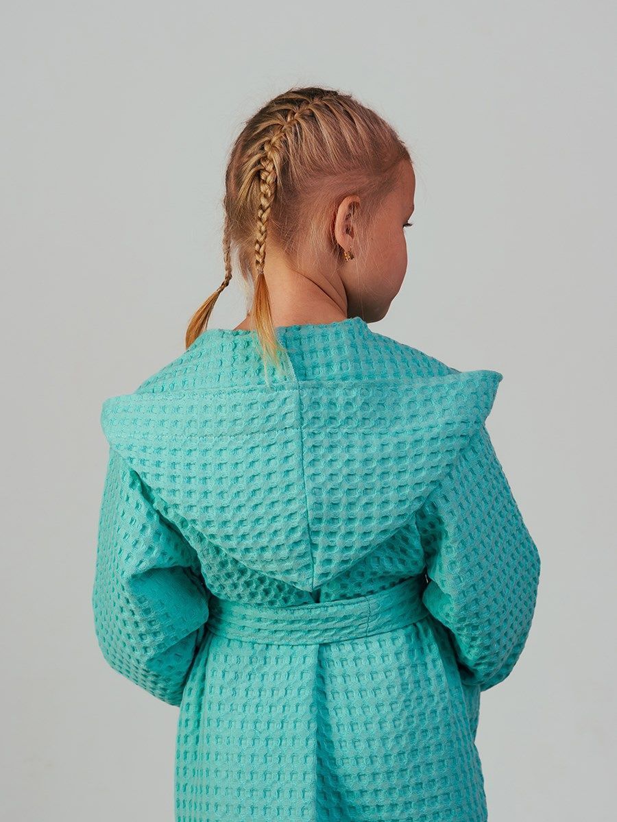 Вафельный халатик для детей, выполненный из натурального материала – 100% хлопка с карманом, удобен и универсален. Ткань не вызывает аллергии и раздражения кожи, прекрасно пропускает воздух, быстро впитывает влагу и так же мгновенно сохнет. Форма халата с запахом и широким поясом позволит использовать его долгое время, несмотря на быстрый рост ребенка. Поэтому для домашнего ухода за детьми вафельный халат является одной из самых удобных и практичных вещей. Халат из вафельной ткани легкий и практичный, благодаря натуральному составу ткани сохраняется комфортная температура тела, идеальная для жаркого лета. После любых водных процедур, вафельный халатик создаст приятную прохладу и быстро высушит тело, он свободный и приятный к детской коже.