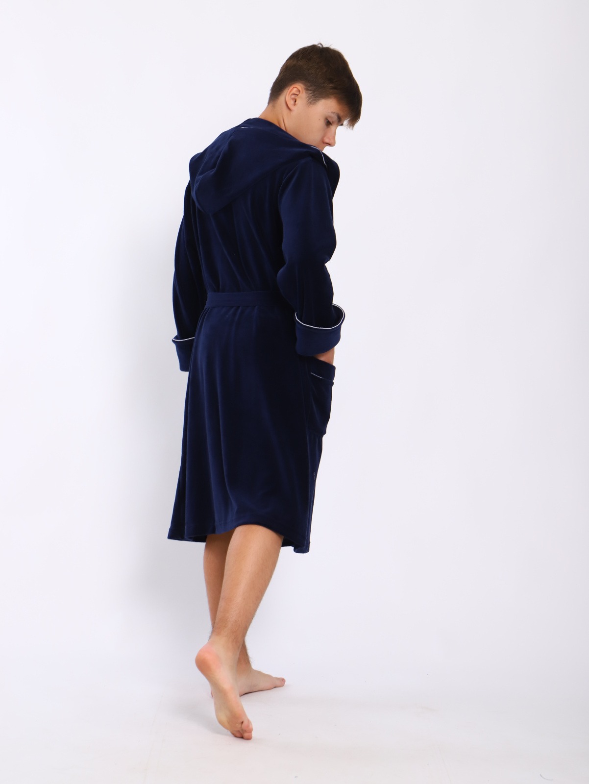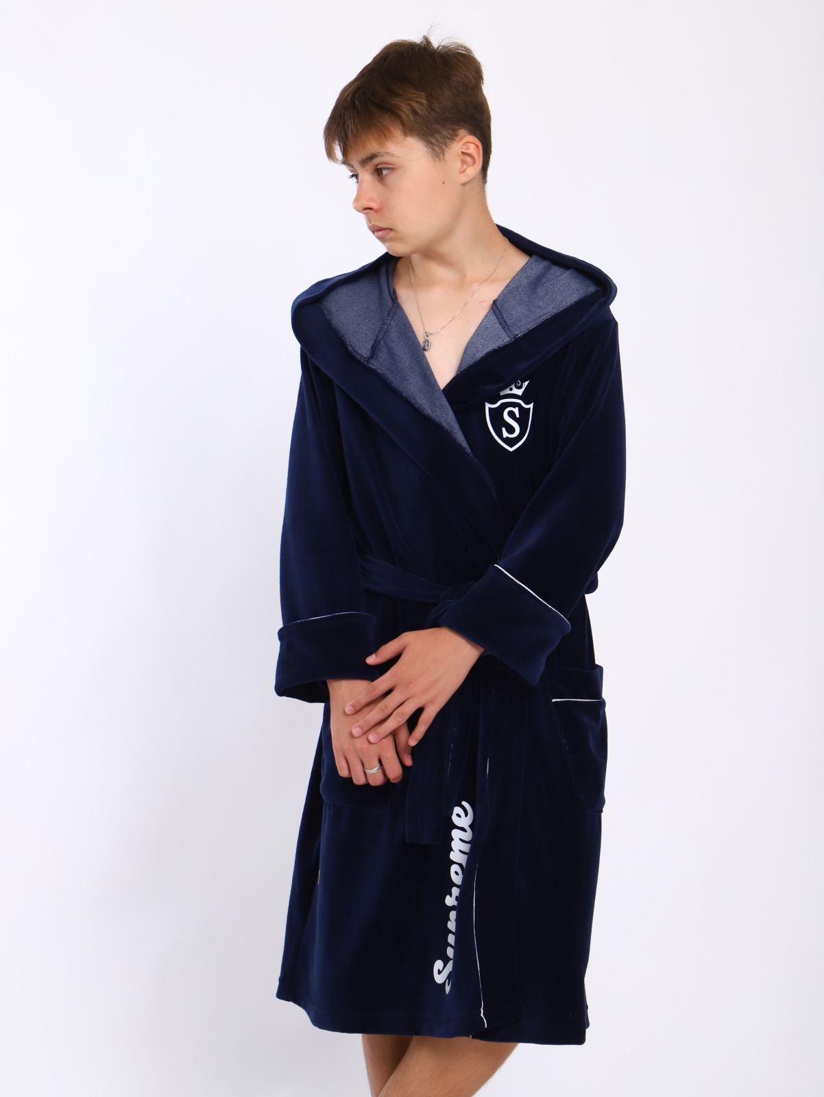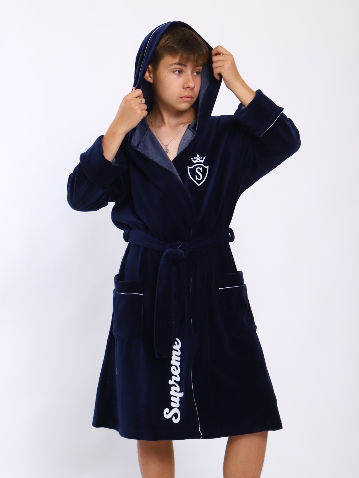 Банный детский халат "Самсон" / Синий сшит их велюра с хлопком. Застежка на запах, по талии фиксируется поясом. Очень нежный мягкий и свободный.