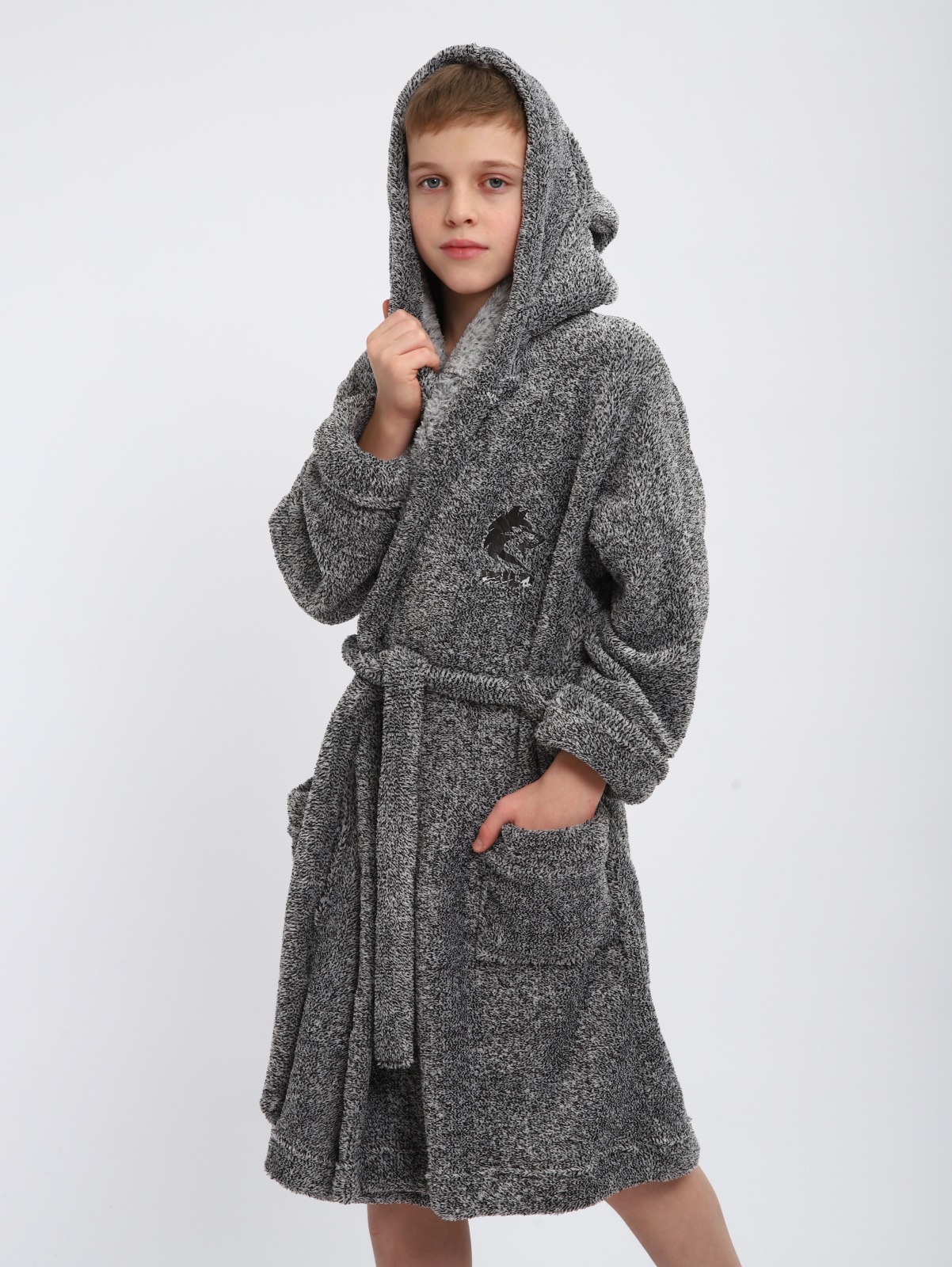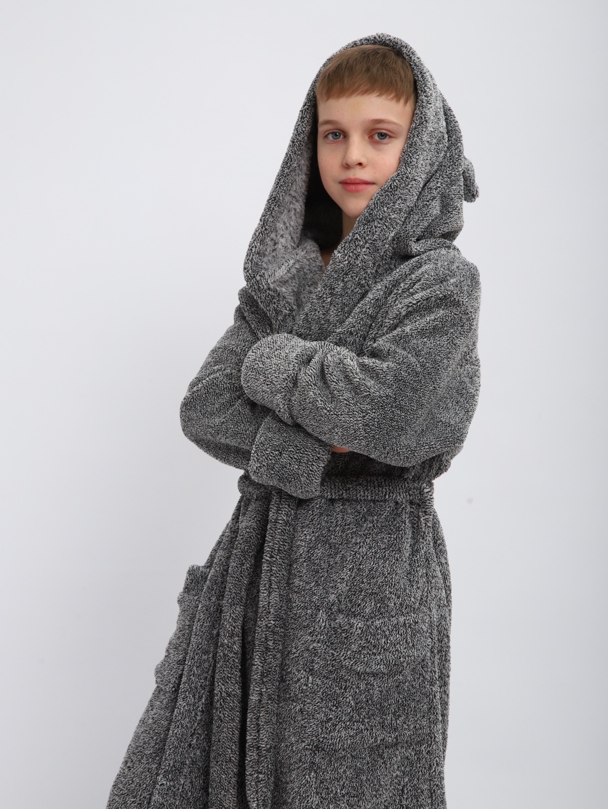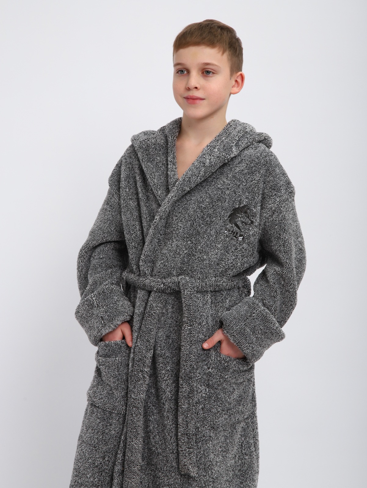 Халат банный с поясом на запах плюс накладные карманы и длинный рукав для детей от 7 до 17 лет отлично подойдет после ванной и душа. Халат детский для мальчика обеспечивает максимальный комфорт дома, в бассейне, в бане, на пляже. Банный халат впитывает воду и влагу, быстро согревает тело ребенка и укутывает в нежные объятия.