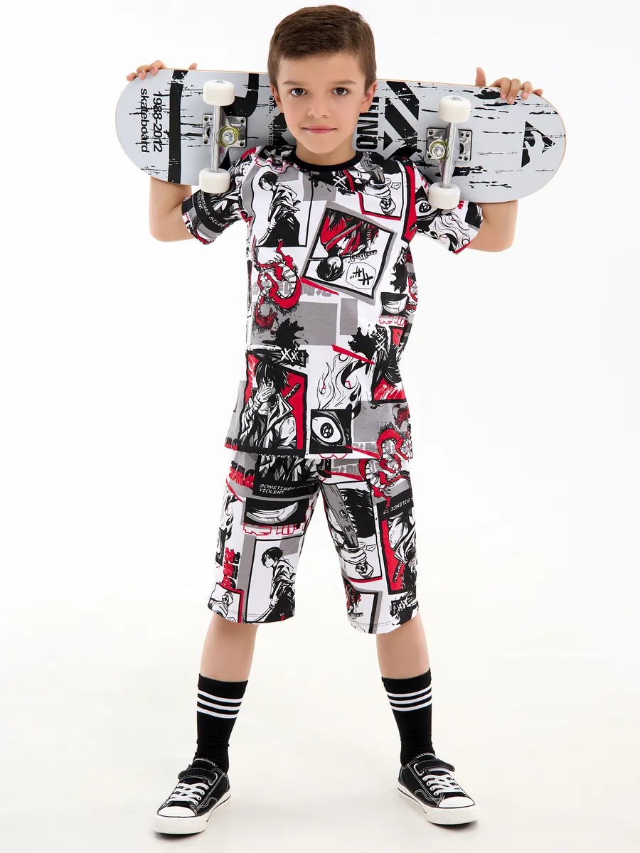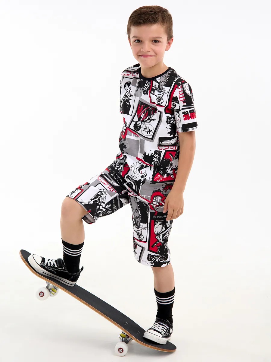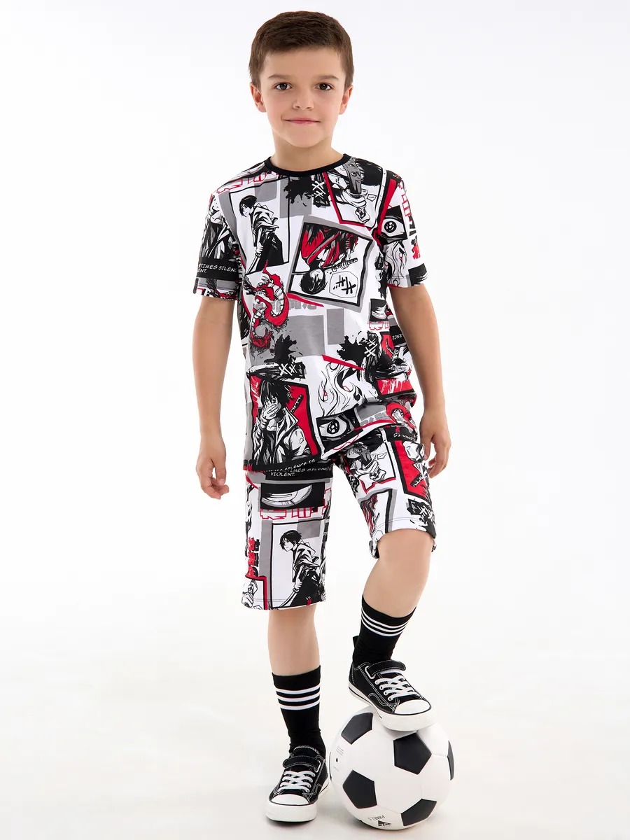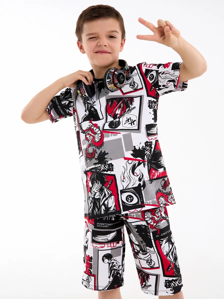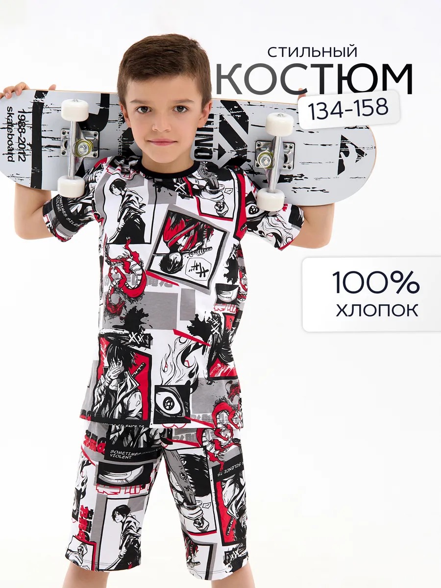 Для вашего удобства представляем летний комплект "Сорванец" Аниме - одежда для мальчика и подростка. Крутая двойка подходит для детей от 9 до 13 лет, создана из тонкого эластичного хлопкового трикотажа. Благодаря стильному принту аниме можно использовать для прогулок или просто дома, а так же как дачный комплект или домашняя вещь, его можно надевать во время долгой поездки на машине или в поезде, для похода на пляж, для занятий гимнастикой. Изделие из натурального хлопка гарантирует комфорт благодаря отличной воздухопроницаемости ткани. Удлиненная футболка для мальчиков свободного кроя, поэтому подойдет для ребенка любой комплекции. Свободные шорты на мягкой эластичной резинке, длиной ниже колена, не стесняют движений во время активности. Детский комплект для ваших любимых детей состоит из шорт и удлиненной футболки, что не дает ей задираться и оголять спину во время активности и наклонов. Изделие выполнено из мягкой приятной хлопковой ткани - кулирка 100% хлопок.