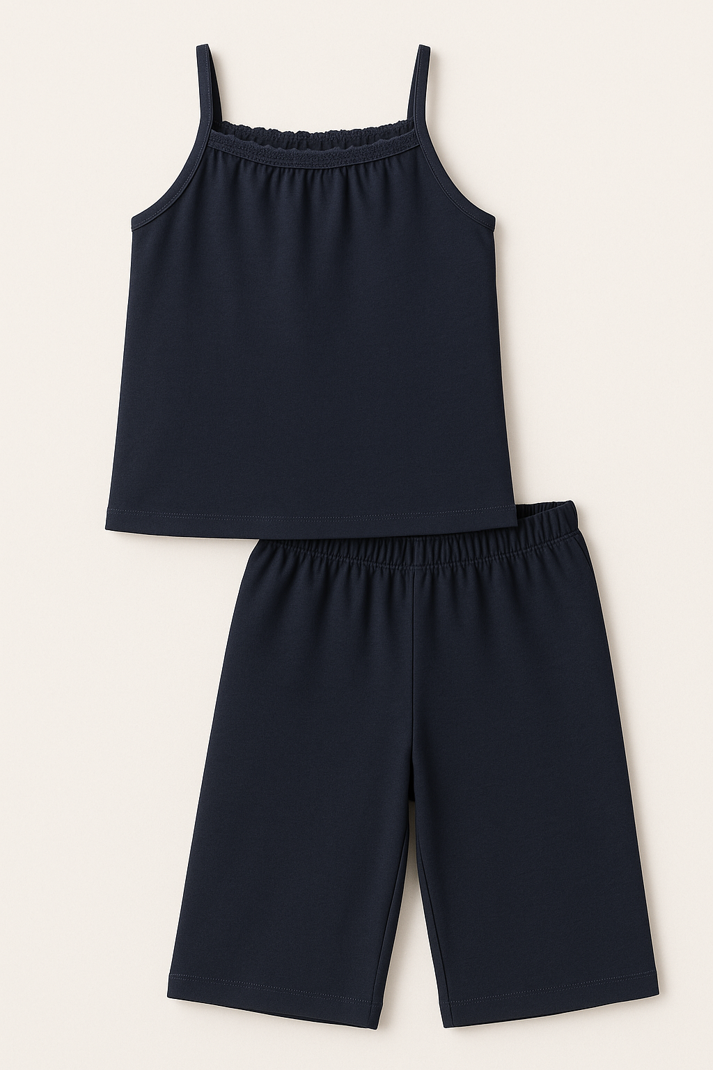 Детский костюм с шортами из фулайкры — это комплект одежды, обычно состоящий из майки или футболки и шорт, изготовленный из мягкой трикотажной ткани. Фулайкра — это материал, который часто содержит хлопок с добавлением эластана или лайкры для эластичности и комфорта. Такие костюмы подходят для дома, отдыха, прогулок или детского сада.