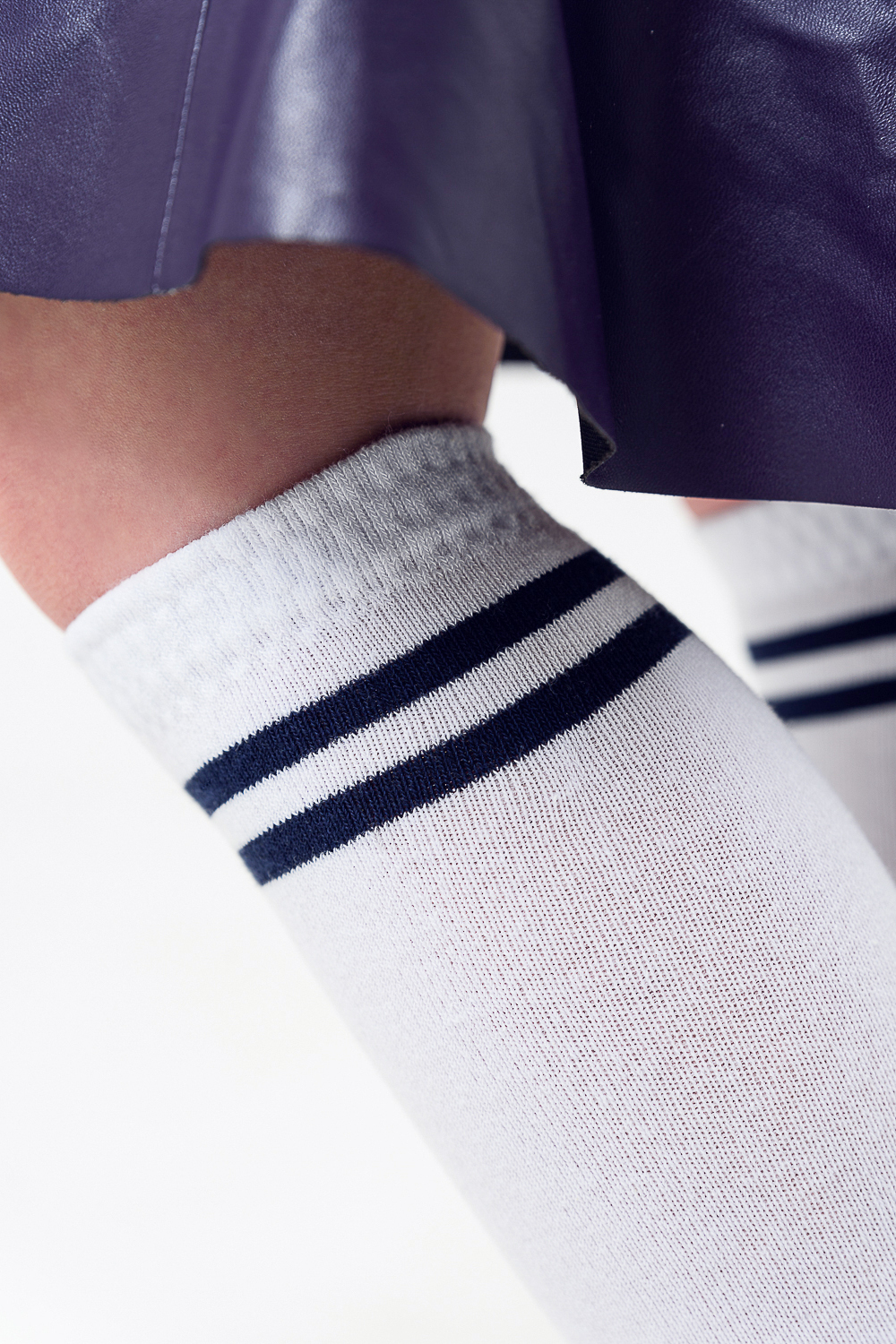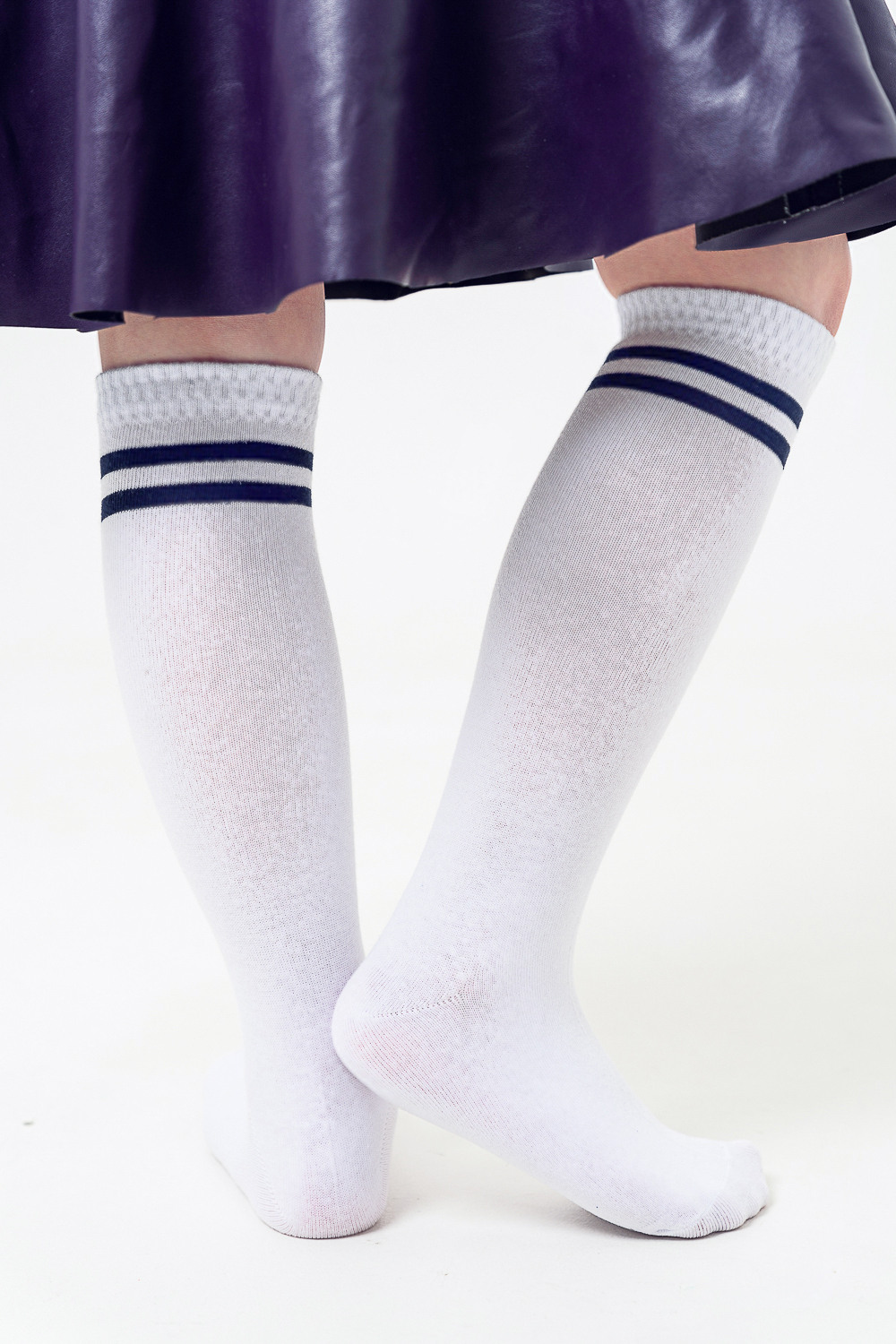 Классические гольфы для детей. Сверху узор из двух полос другого цвета.