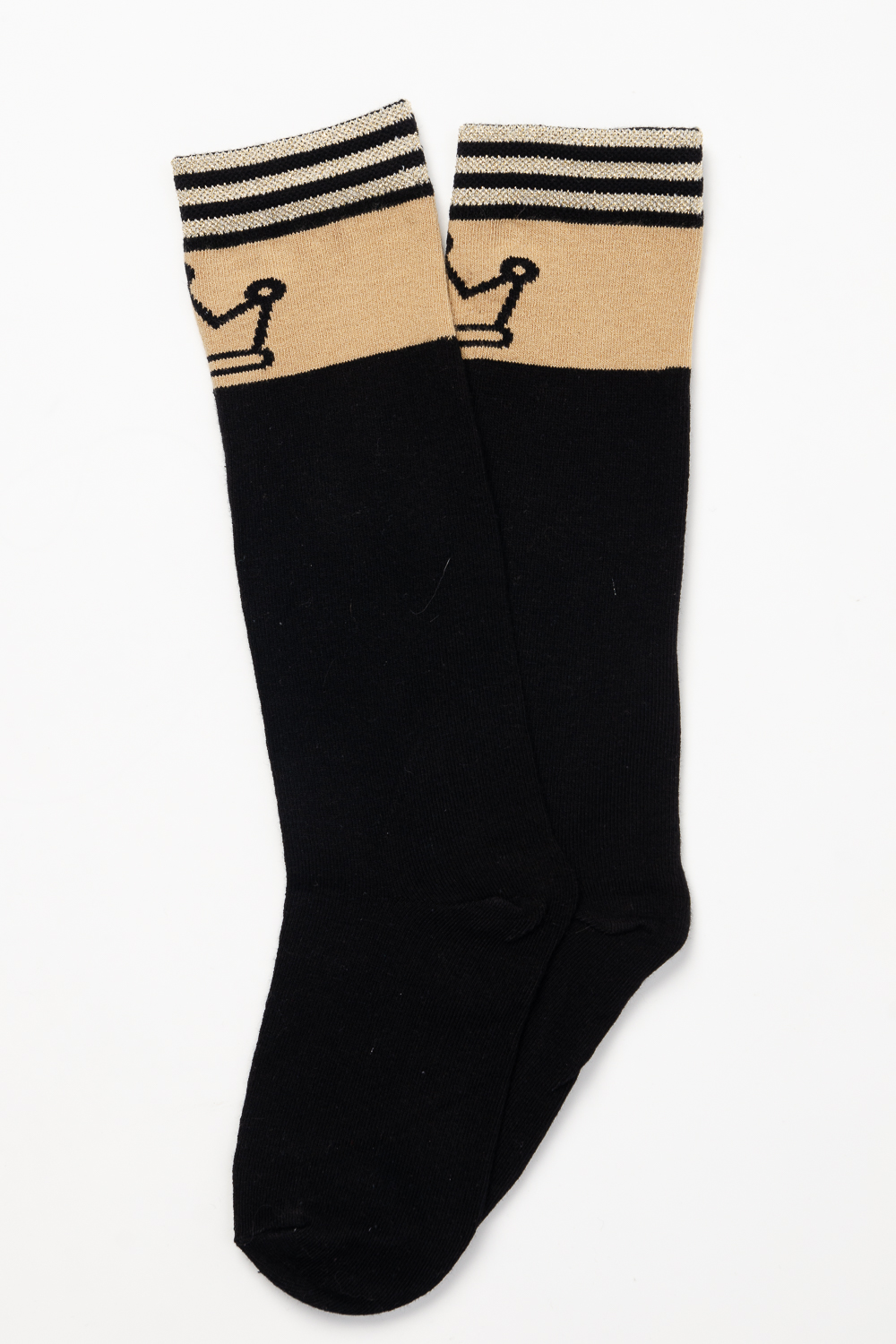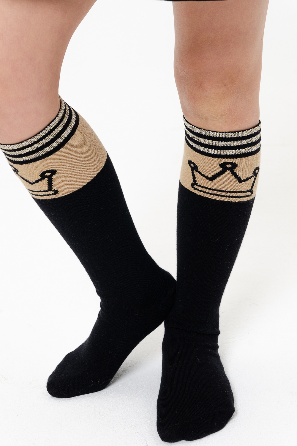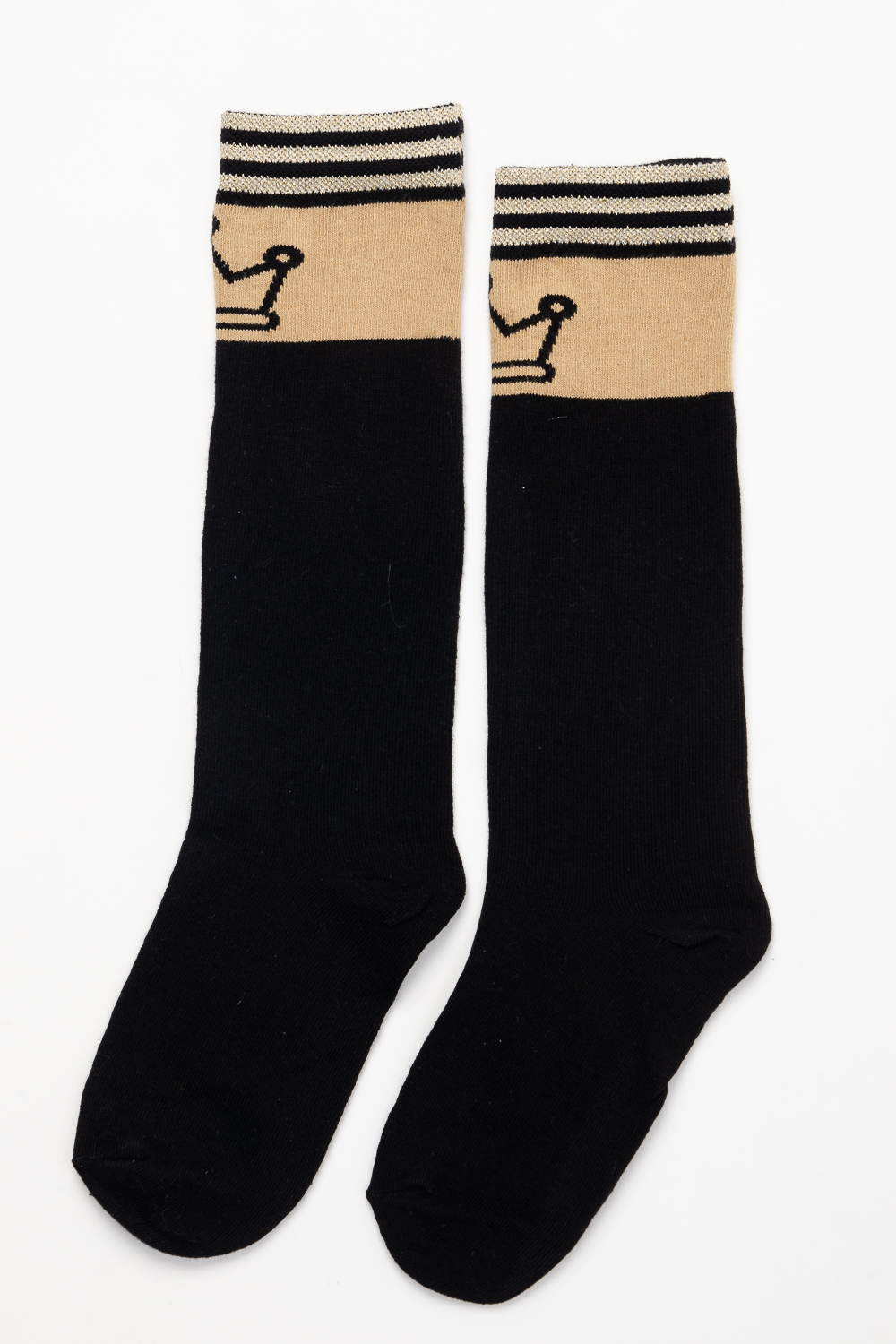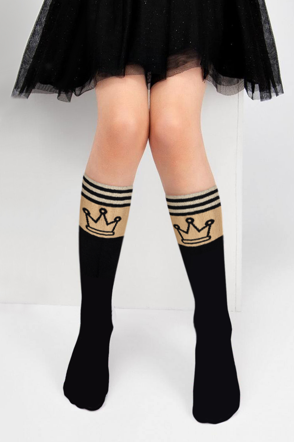 Стильные подростковые гольфы с лаконичным рисунком в виде короны и тонких полос с люрексом. Нарядные гольфы подойдут как для праздника, так и на каждый день.