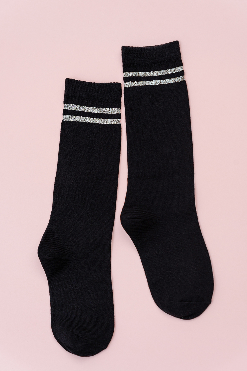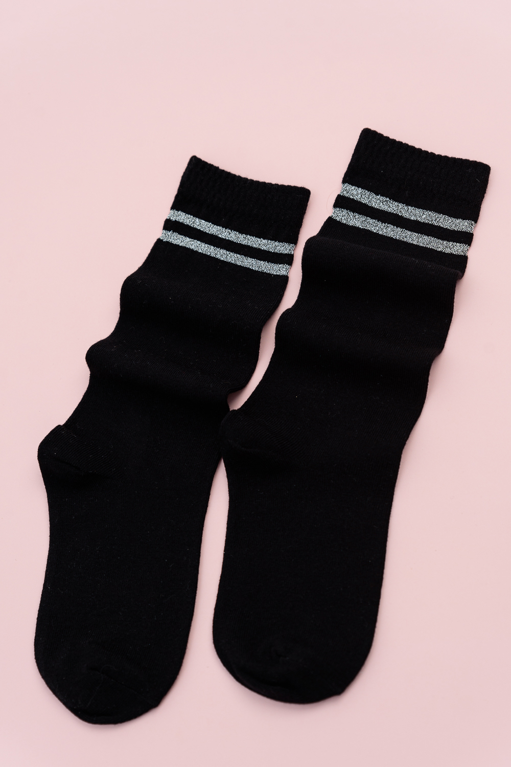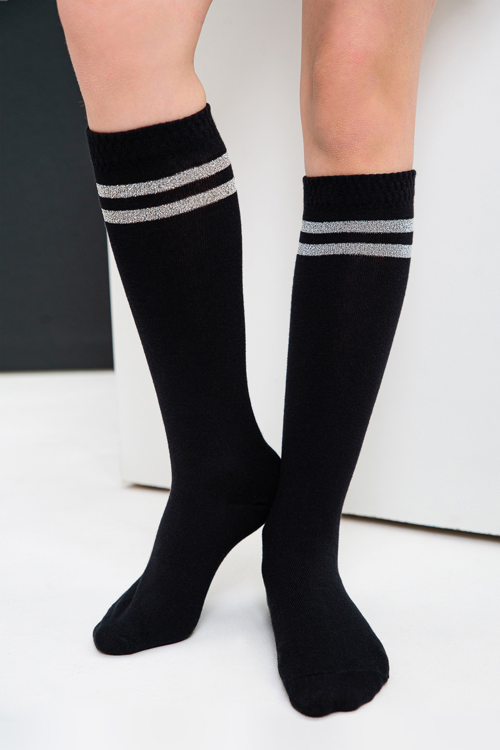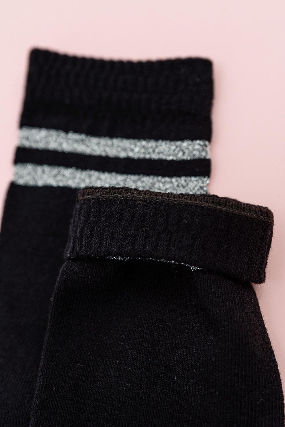 Комплект из двух пар детских гольф. На верхней части носка у самой резинки две полоски выполнены из люрекса - блестящего материала.