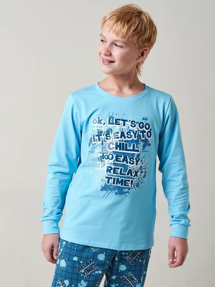 Пижама детская "Патруль" для мальчика с принтом - это удобный домашний комплект свободного кроя для детей и подростков. Домашний костюм для мальчика без карманов выполнен из мягкого, легкого и комфортного трикотажа средней плотности, не сковывает движений. Хлопковая пижама подойдет для сна, в садик, одежды для дома и игр с друзьями. Манжеты надежно фиксируются и не позволяют сползать, что придаёт дополнительное удобство при носке пижамы. Брюки выполнены на резинке, мягко и приятно прилегают к телу, не давит на живот и не вызывает дискомфорта. Футболка с длинными рукавами согреет ребенка в прохладные дни. Пижама обеспечивает комфортное телесное ощущение как в летний, так и в зимний период. Органический 100 % хлопок не вызывает раздражения на коже ребенка и впитывает влагу, выделяемую телом во время сна. Пижамный костюм не садится после стирки, не линяет и не теряет яркости красок.