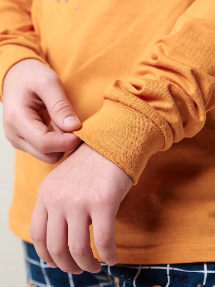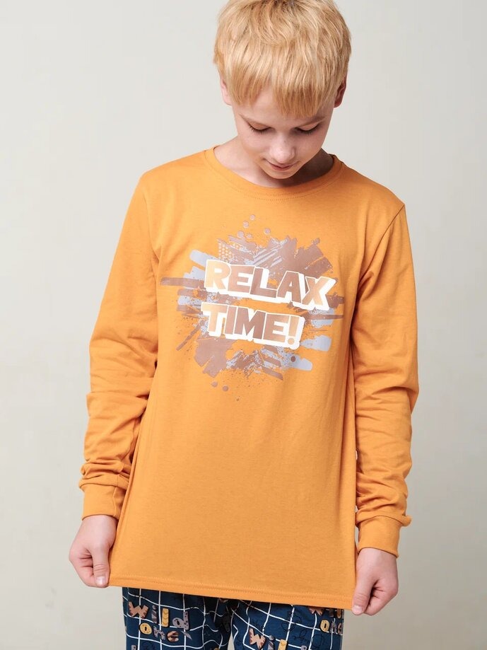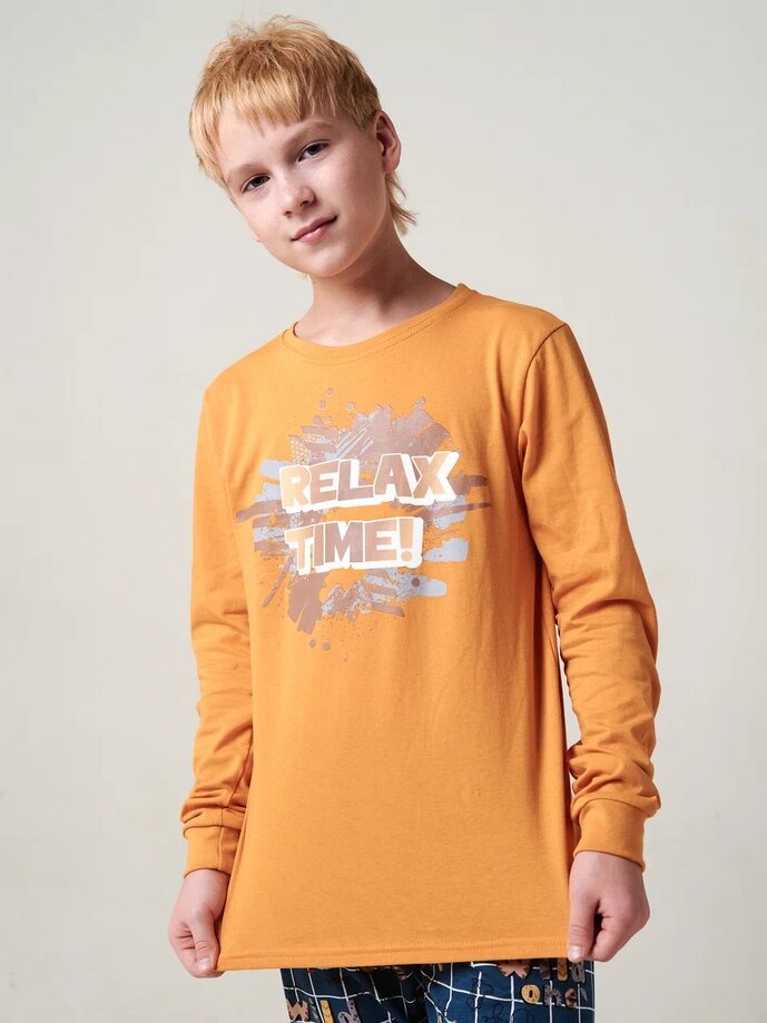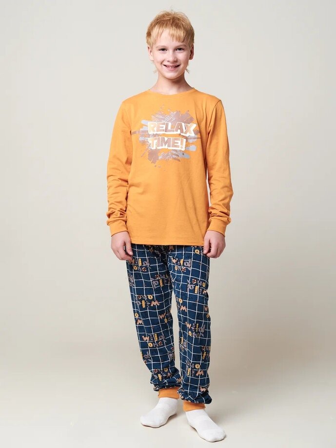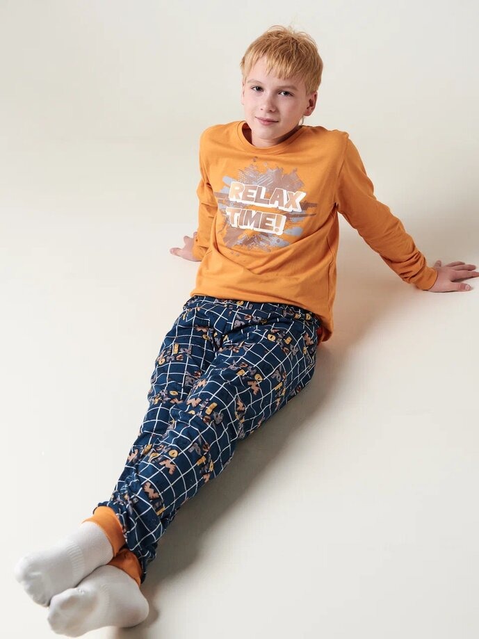 Пижама детская "Дрема" для мальчика с принтом - это удобный домашний комплект свободного кроя для детей и подростков. Домашний костюм для мальчика без карманов выполнен из мягкого, легкого и комфортного трикотажа средней плотности, не сковывает движений. Хлопковая пижама подойдет для сна, в садик, одежды для дома и игр с друзьями. Манжеты надежно фиксируются и не позволяют сползать, что придаёт дополнительное удобство при носке пижамы. Брюки выполнены на резинке, мягко и приятно прилегают к телу, не давит на живот и не вызывает дискомфорта. Футболка с длинными рукавами согреет ребенка в прохладные дни. Пижама обеспечивает комфортное телесное ощущение как в летний, так и в зимний период. Органический 100 % хлопок не вызывает раздражения на коже ребенка и впитывает влагу, выделяемую телом во время сна. Пижамный костюм не садится после стирки, не линяет и не теряет яркости красок.