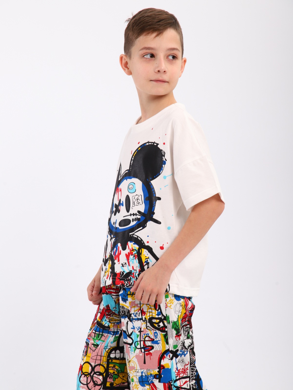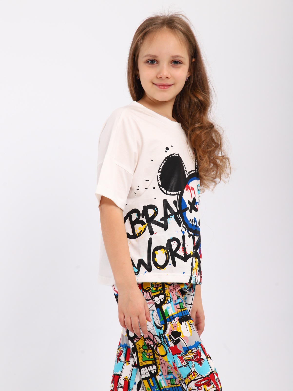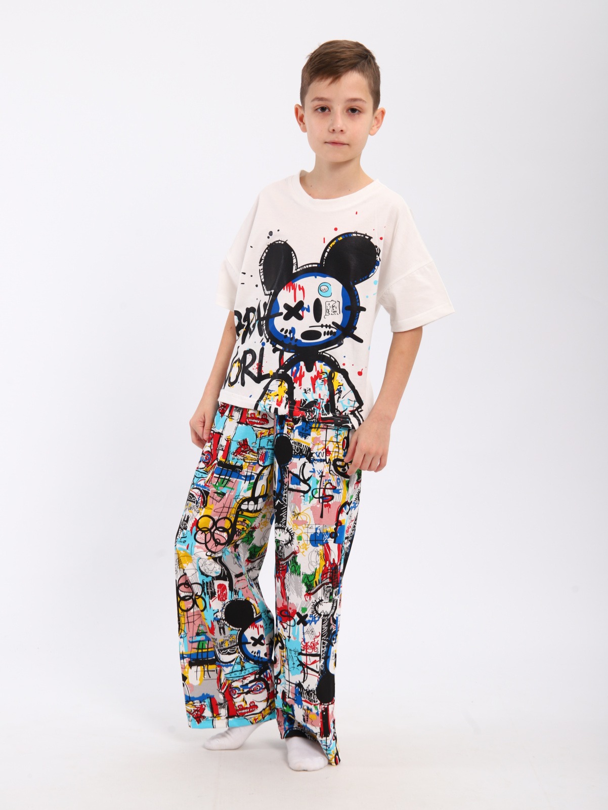 Эта очаровательная детская пижама Гранд станет любимой домашней одеждой, как для девочки, так и для мальчика, создавая атмосферу комфорта и уюта. Свободный крой оверсайз футболки и широкие брюки-палаццо на резинке подарят максимальную свободу движений, а мягкий хлопковый трикотаж обеспечит приятные тактильные ощущения.