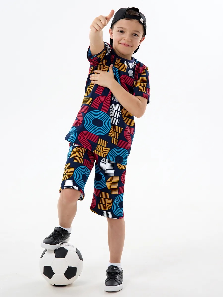 Детская пижама, как домашний комплект для мальчика от 3 до 13 лет из тонкого эластичного хлопкового трикотажа можно использовать и как пижаму для сна в садике или дома, и как дачный набор или домашний летний костюм, ее можно надевать во время долгой поездки на машине или в поезде, для похода на пляж, для занятий гимнастикой. Пижама для мальчика из натурального хлопка гарантирует комфортный сон благодаря отличной воздухопроницаемости ткани. Удлиненная футболка для мальчика свободный крой, поэтому подойдет для ребенка любой комплекции. Свободные шорты для мальчика на мягкой эластичной резинке, длиной ниже колена, не стесняют движений во время сна и бодрствования.