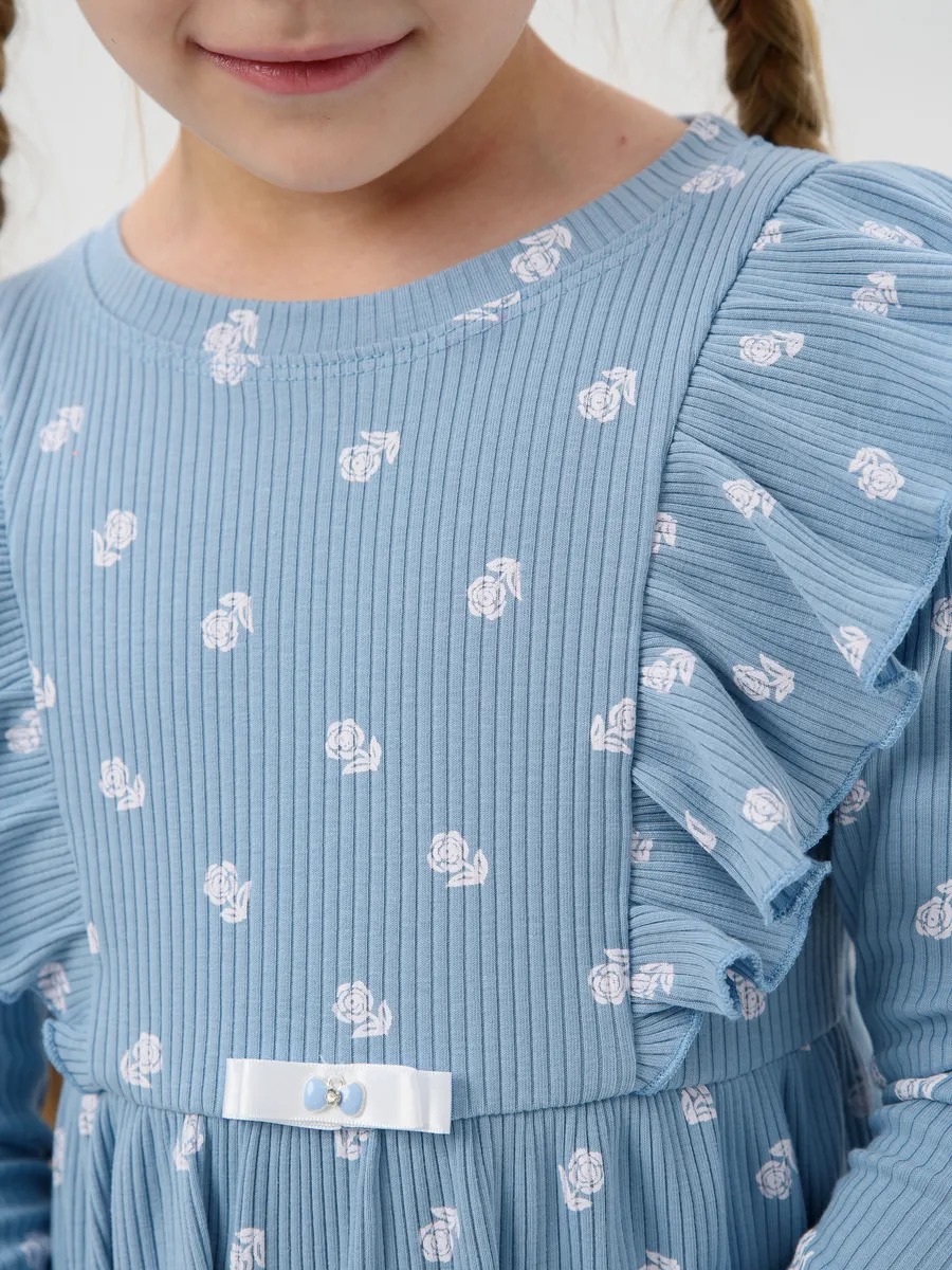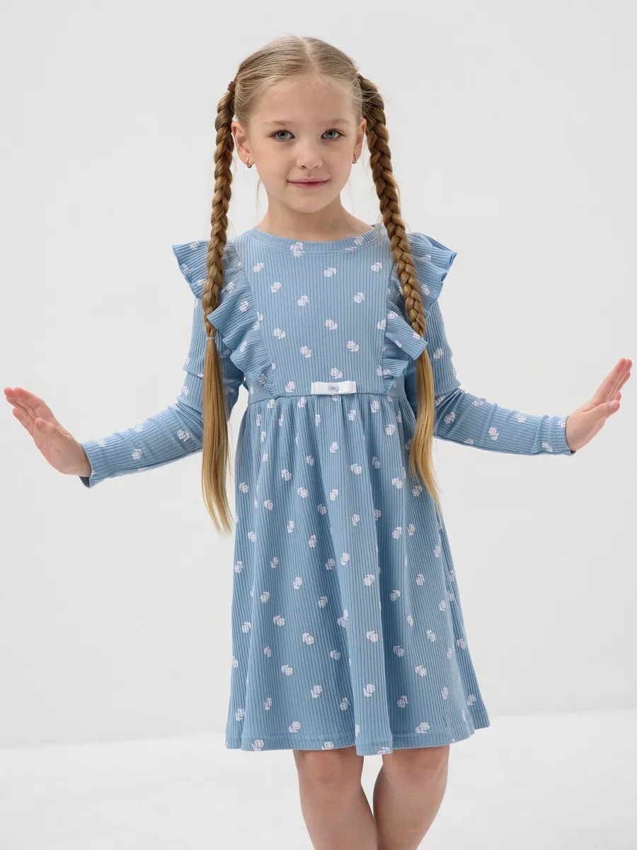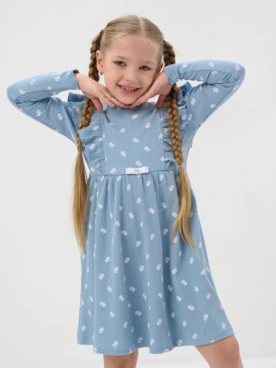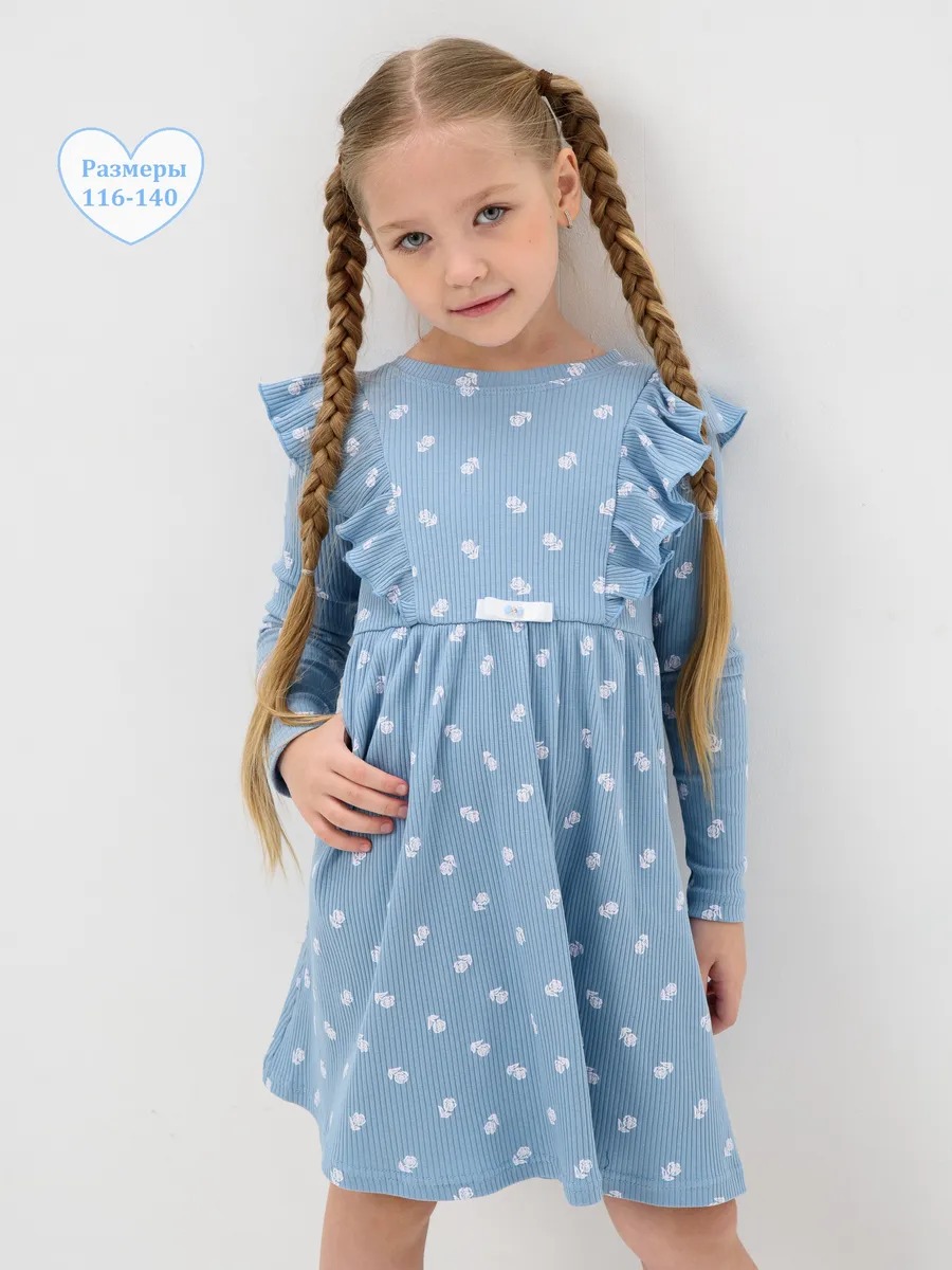 Платье для девочки в садик "Бетти" длинный рукав / Голубой (цвтеточки) из трикотажного полотна в рубчик с рисунком, расширенное от линии талии, приталенного силуэта, верхние части переда и спинки с присборенными крылышками. Сшито из набивного мягкого материала 95% хлопок 5% лайкра - лапша. Идеально для детского сада, для прогулок, для праздника и на каждый день, обладает прочностью, которая позволяет Вашей девочке активно играть и веселиться, не ограничивая движения. Прекрасная посадка позволяет использовать, как повседневное, а ещё наше платье для девочки не имеет застежек, что делает его легким в надевании и снятии, ребёнок сможет самостоятельно одеваться и чувствовать себя самой красивой принцессой.