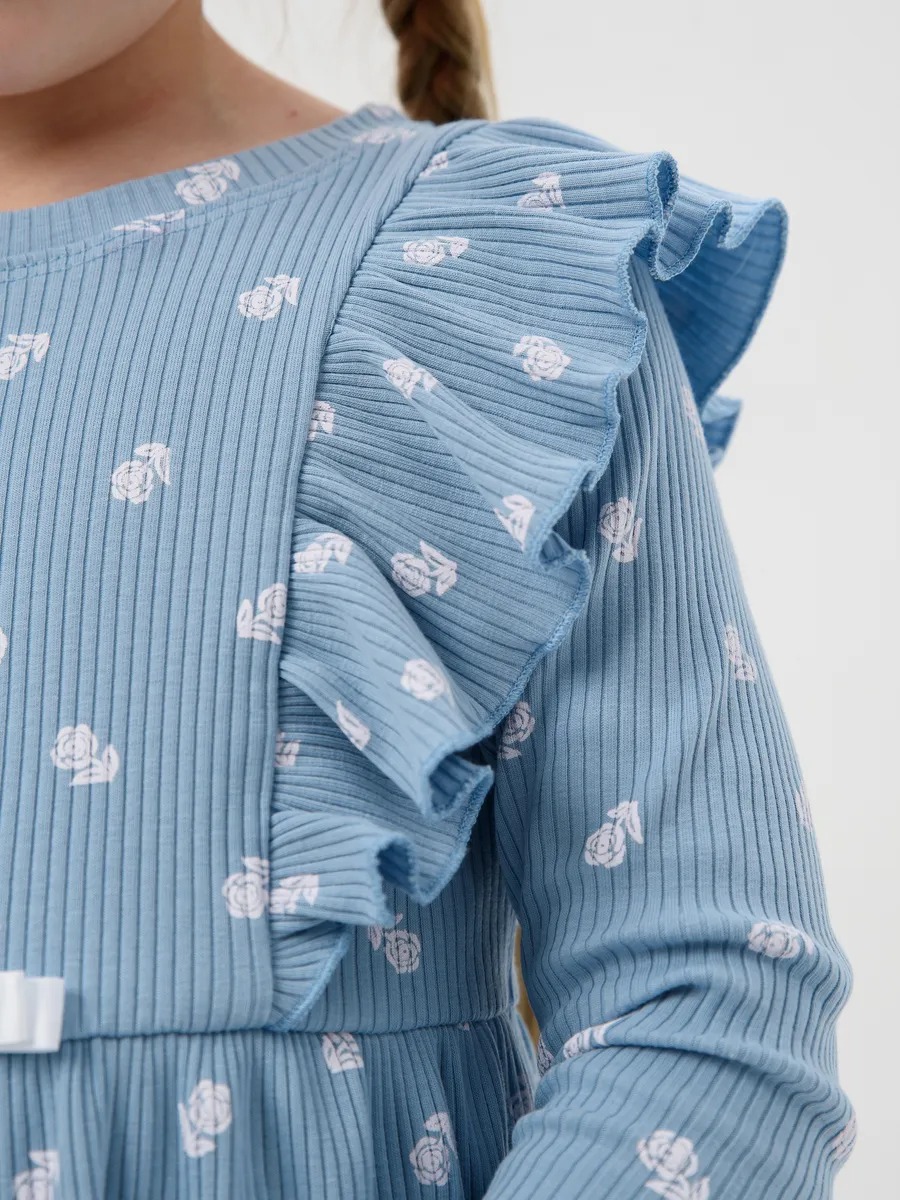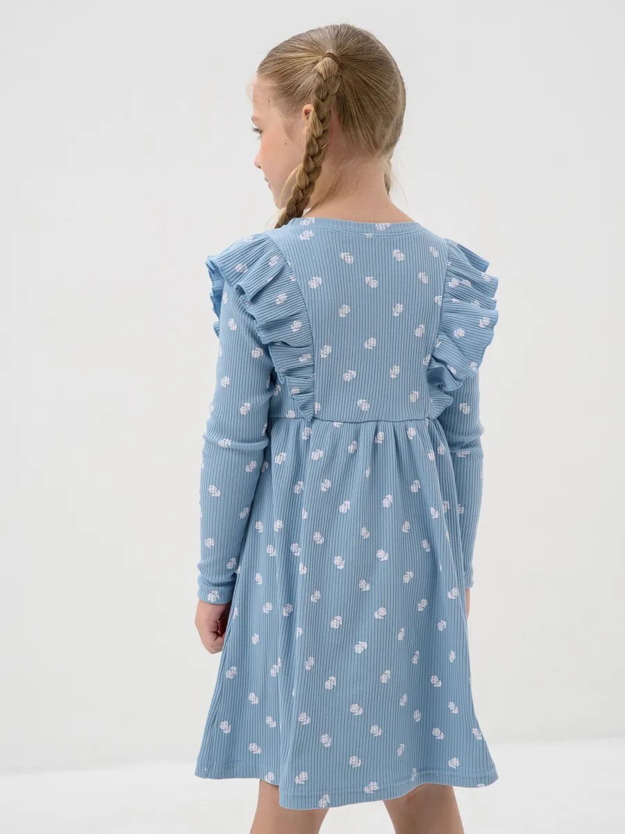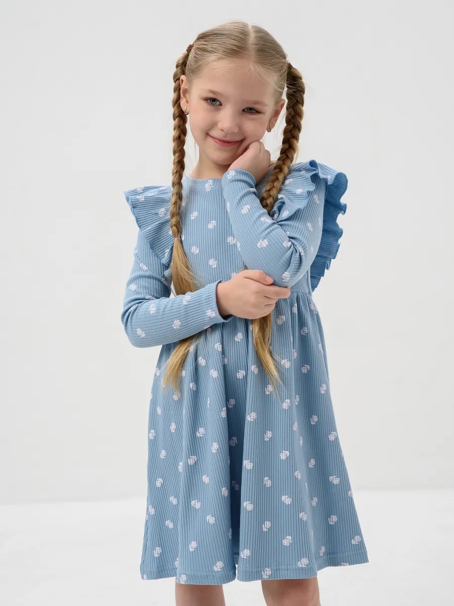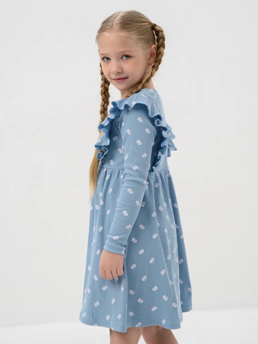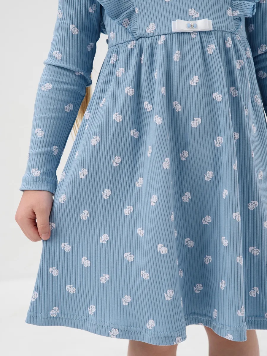 Платье для девочки в садик "Бетти" длинный рукав / Голубой (цвтеточки) из трикотажного полотна в рубчик с рисунком, расширенное от линии талии, приталенного силуэта, верхние части переда и спинки с присборенными крылышками. Сшито из набивного мягкого материала 95% хлопок 5% лайкра - лапша. Идеально для детского сада, для прогулок, для праздника и на каждый день, обладает прочностью, которая позволяет Вашей девочке активно играть и веселиться, не ограничивая движения. Прекрасная посадка позволяет использовать, как повседневное, а ещё наше платье для девочки не имеет застежек, что делает его легким в надевании и снятии, ребёнок сможет самостоятельно одеваться и чувствовать себя самой красивой принцессой.