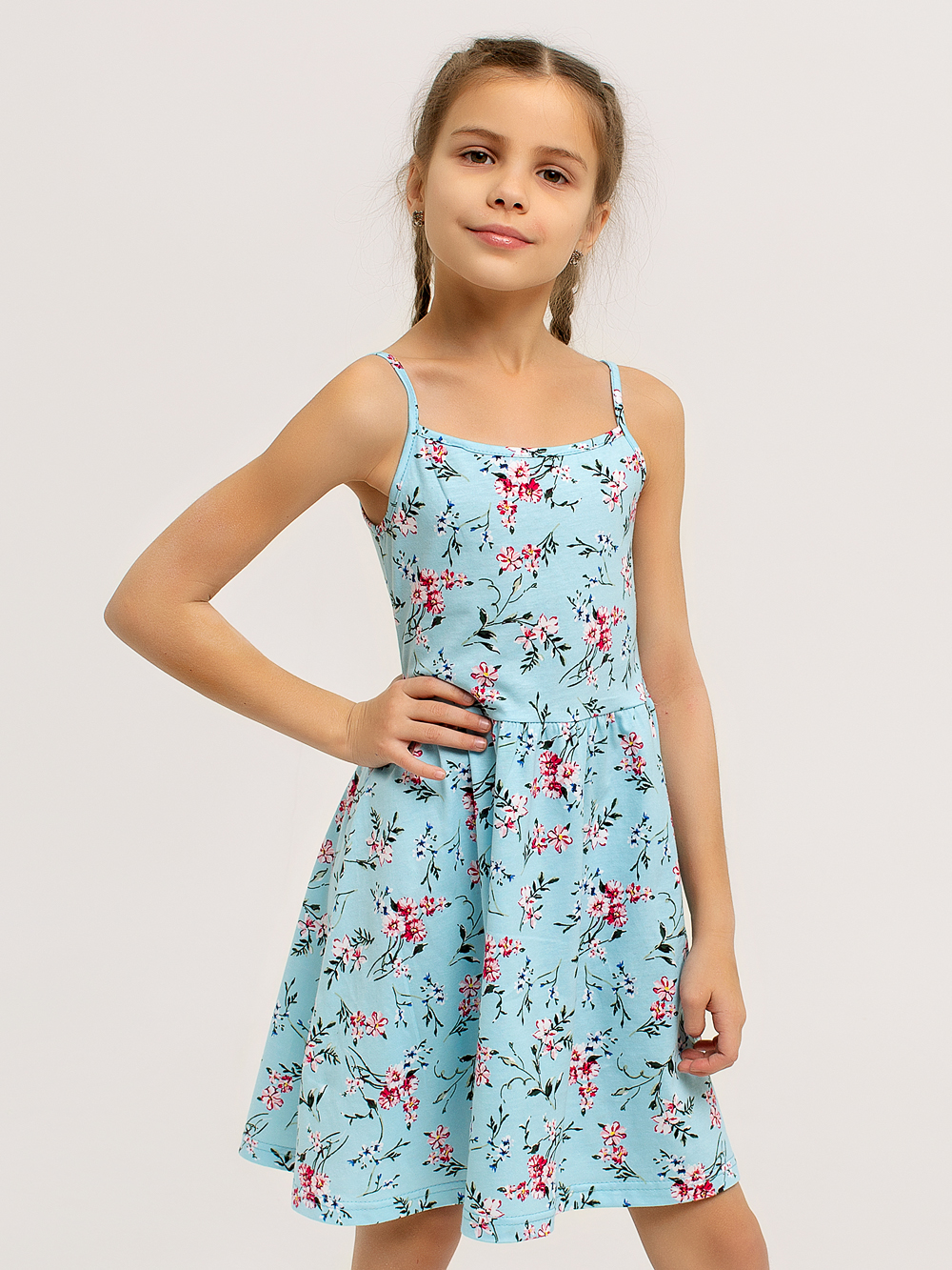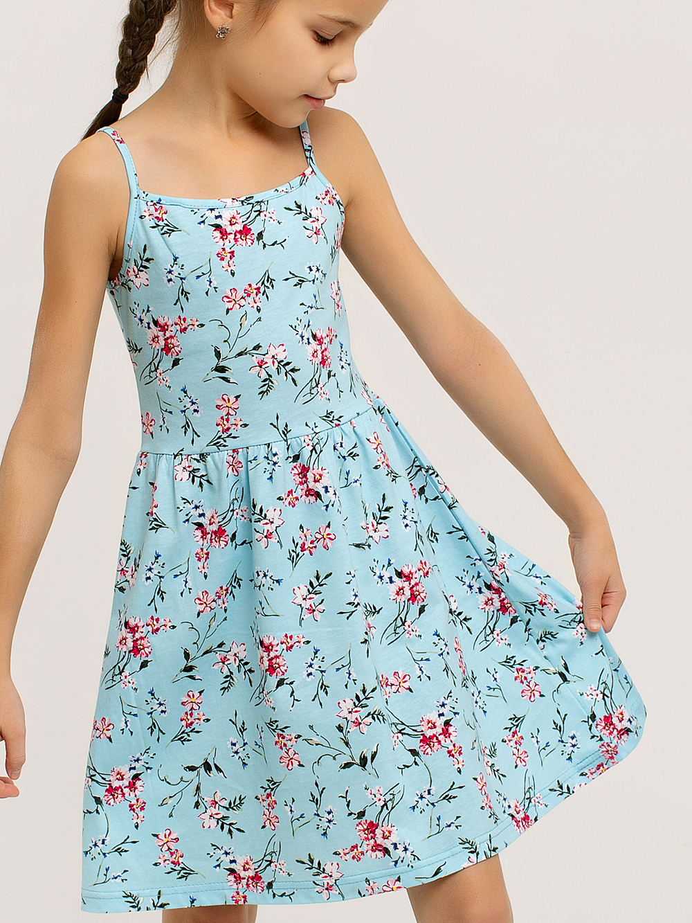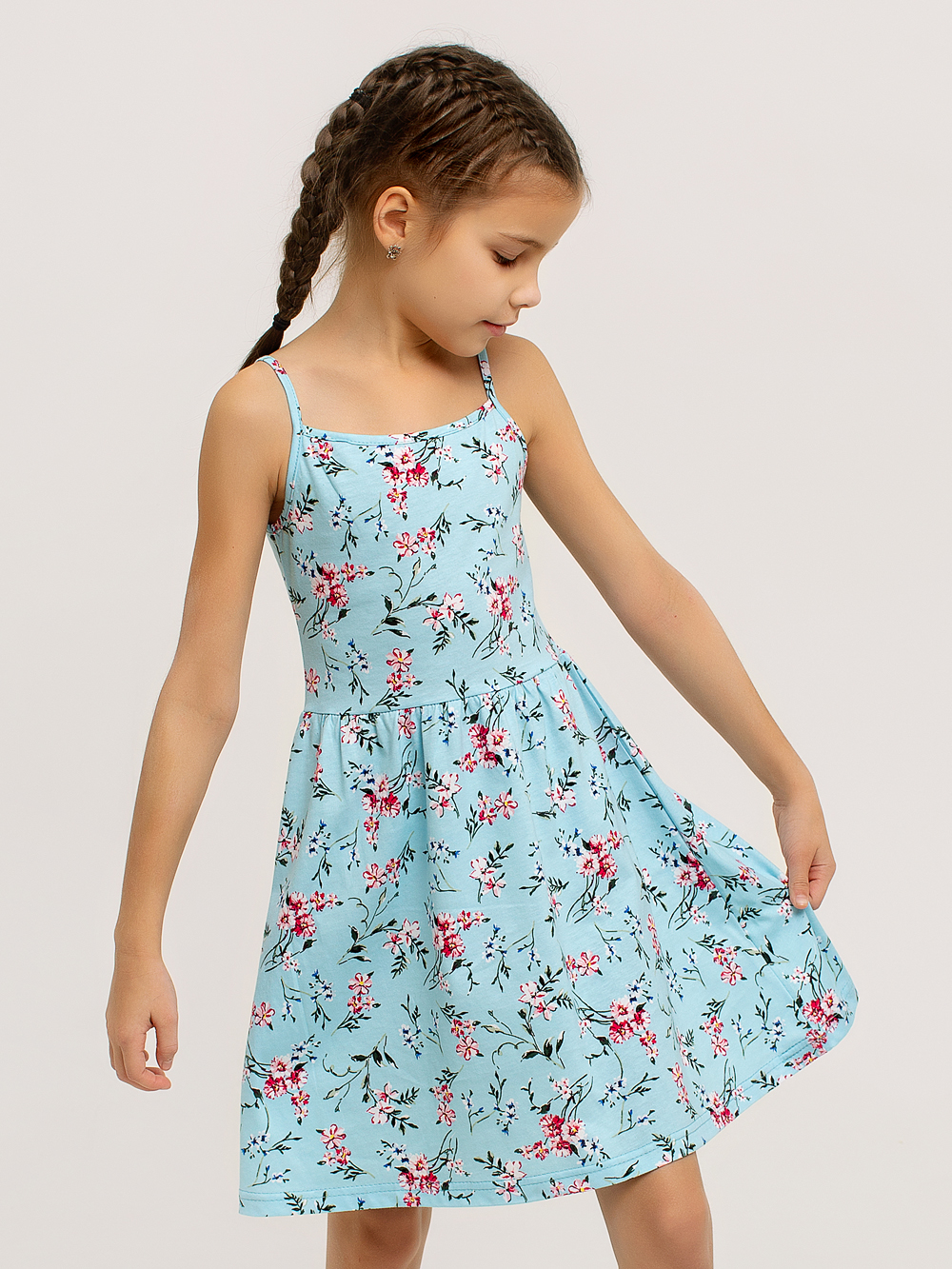 Сарафан "Кокетка" арт. дк169г / Голубой будет отличным пополнением летнего гардероба любой принцессы. Они очень удобны и практичны, особенно в теплое время года. Изделие выполнено из набивного хлопкового полотна. Красивый летний рисунок сразу привлекает внимание. Юбочка собирается посредством эластичной ленты, и создаётся эффект воздушности. Ваша малышка будет непременно в восторге от такого пополнения своего гардероба.