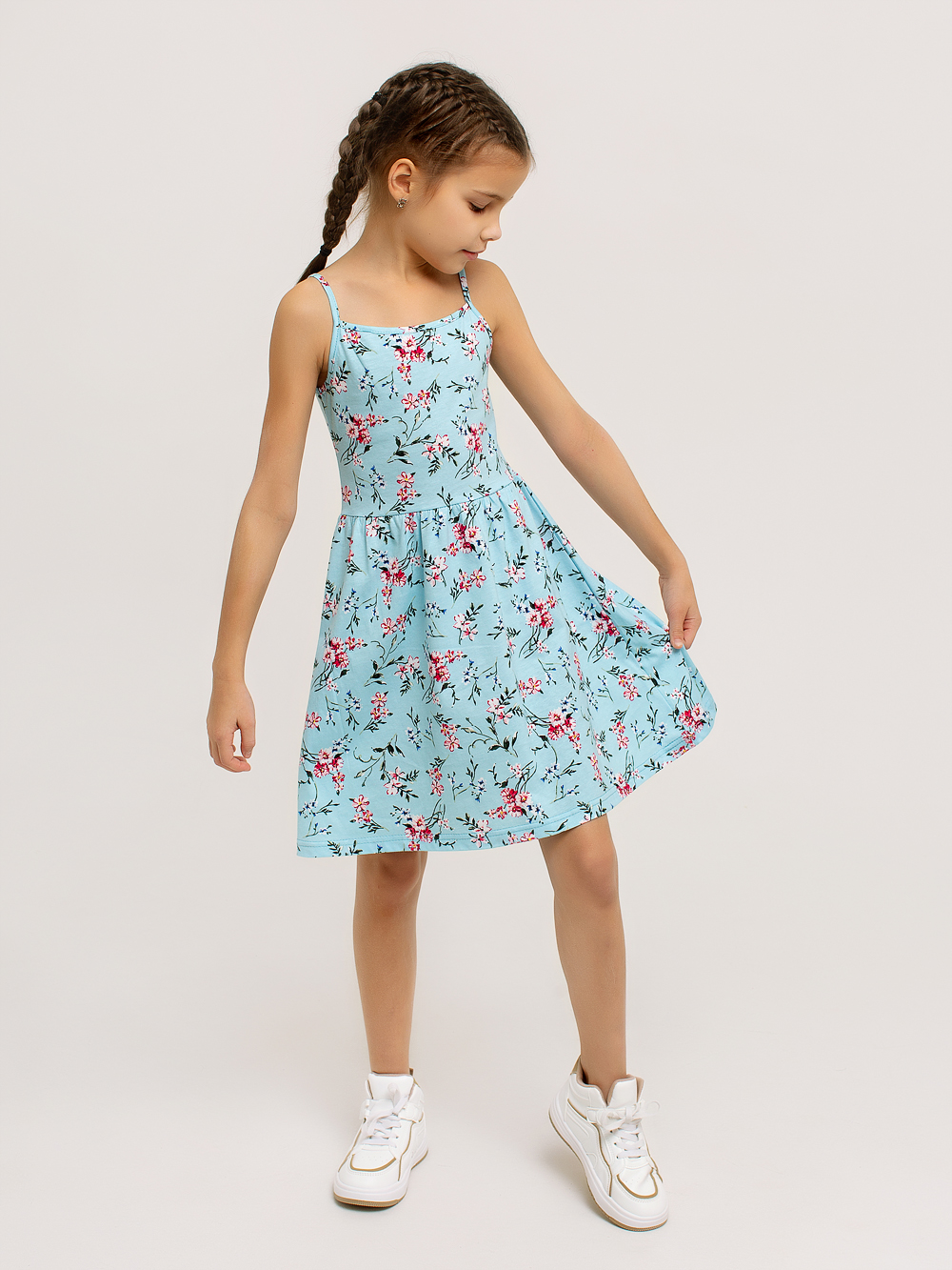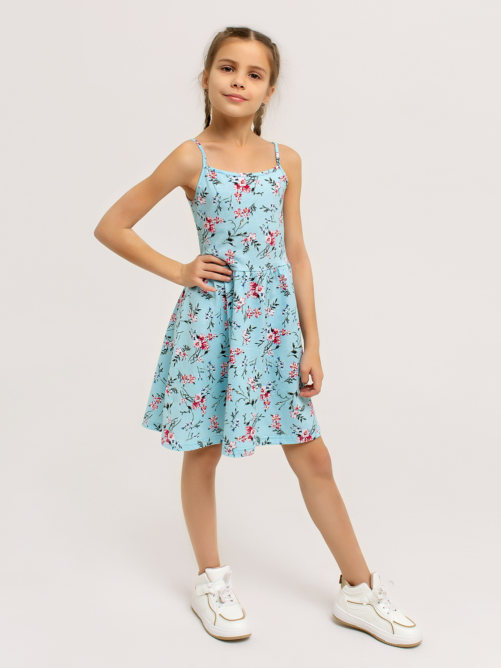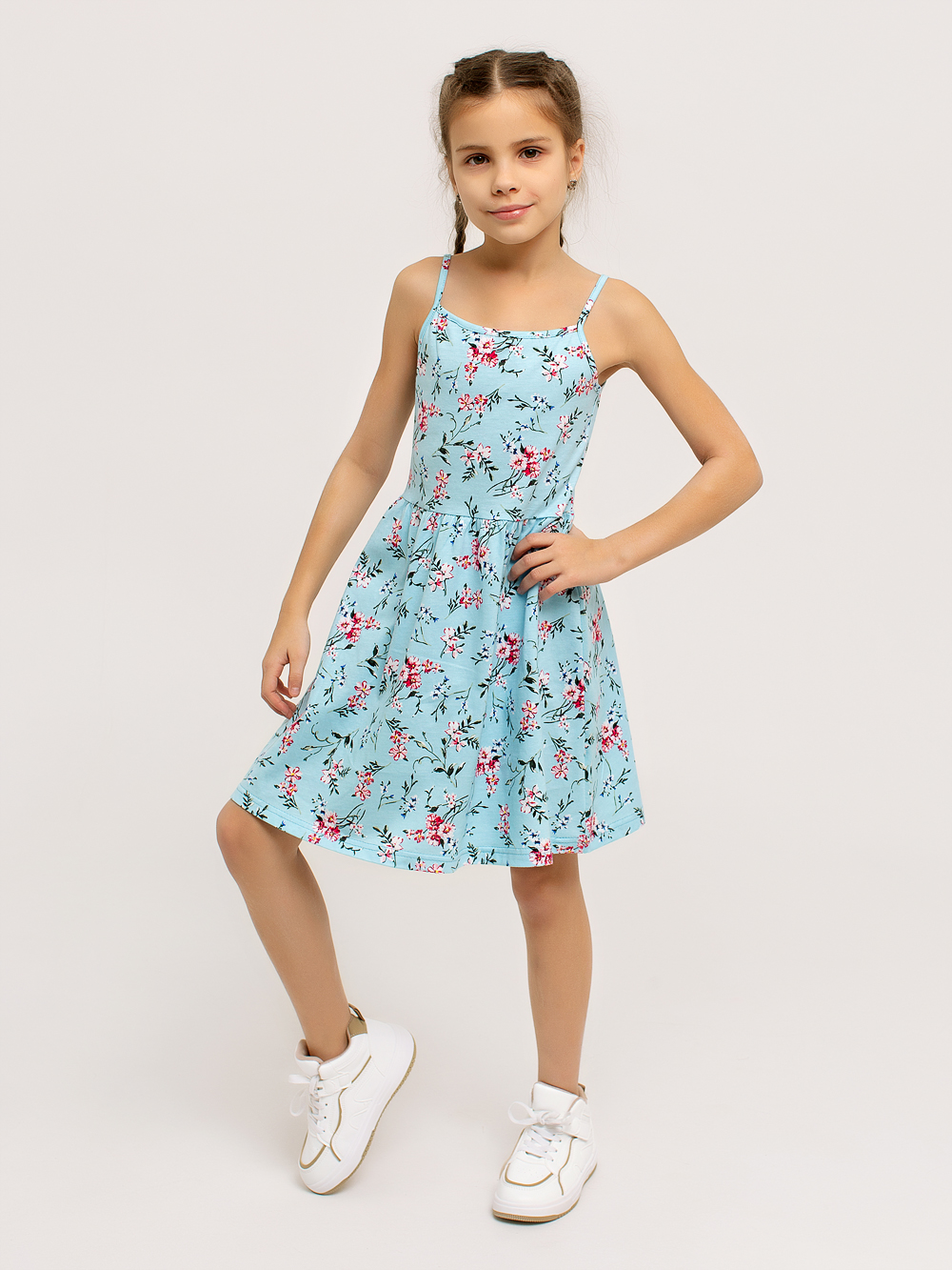 Сарафан "Кокетка" арт. дк169г / Голубой будет отличным пополнением летнего гардероба любой принцессы. Они очень удобны и практичны, особенно в теплое время года. Изделие выполнено из набивного хлопкового полотна. Красивый летний рисунок сразу привлекает внимание. Юбочка собирается посредством эластичной ленты, и создаётся эффект воздушности. Ваша малышка будет непременно в восторге от такого пополнения своего гардероба.
