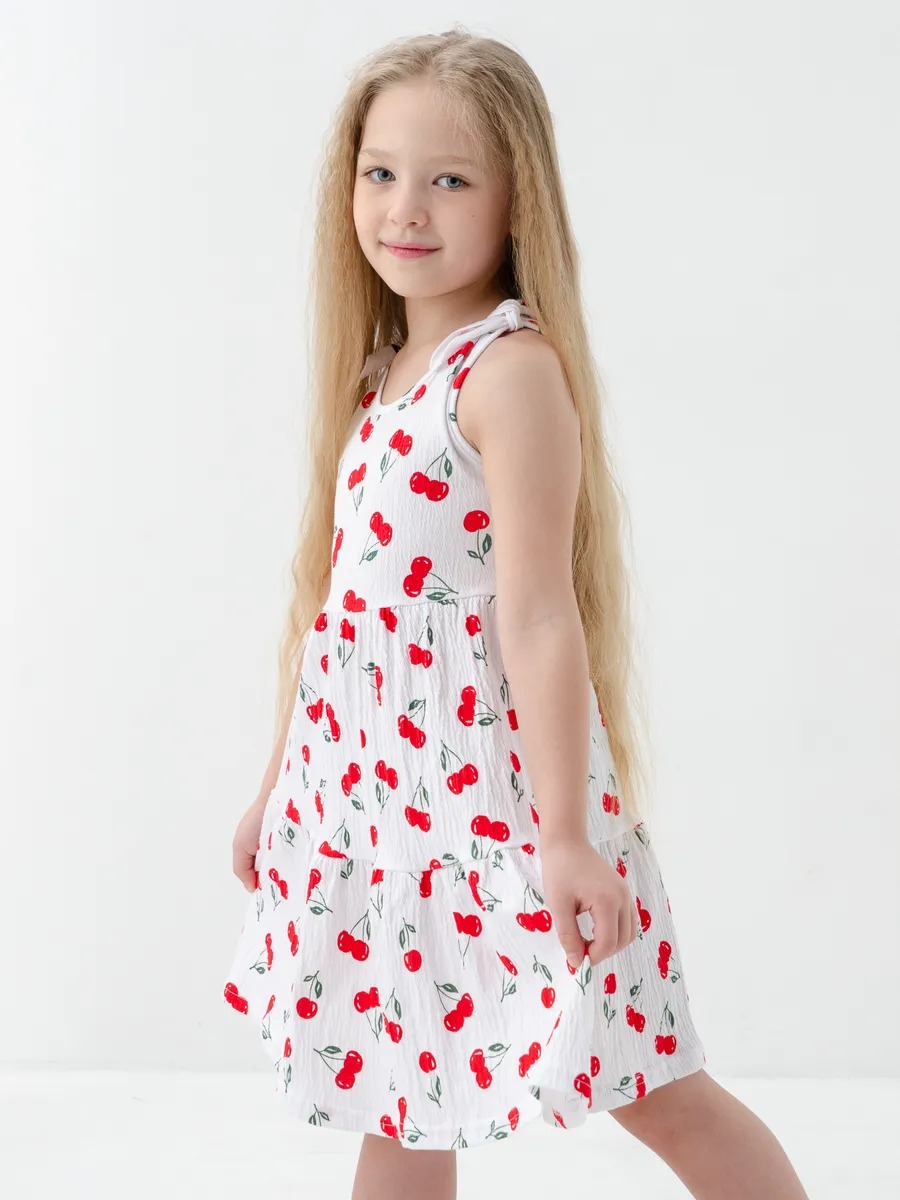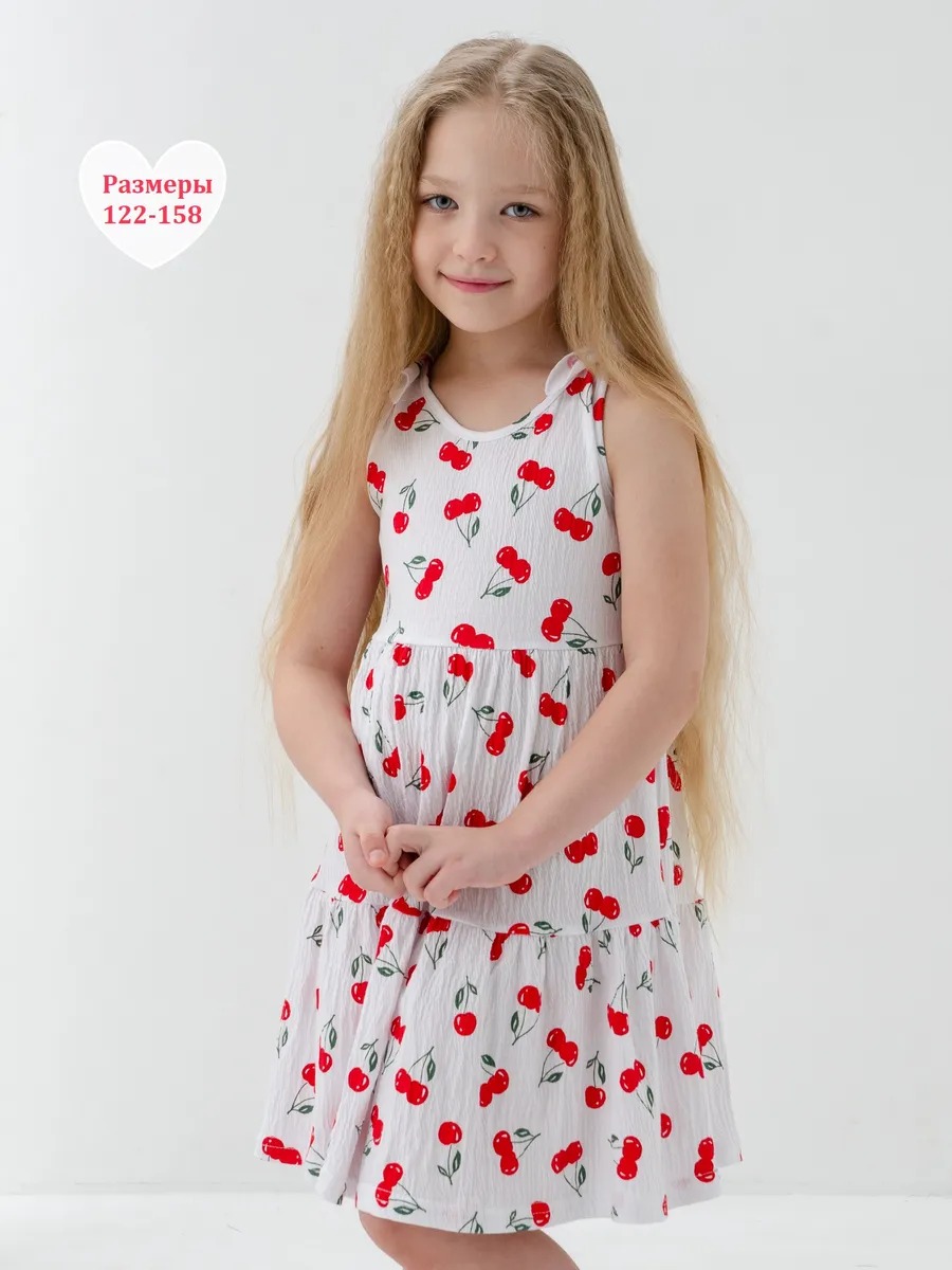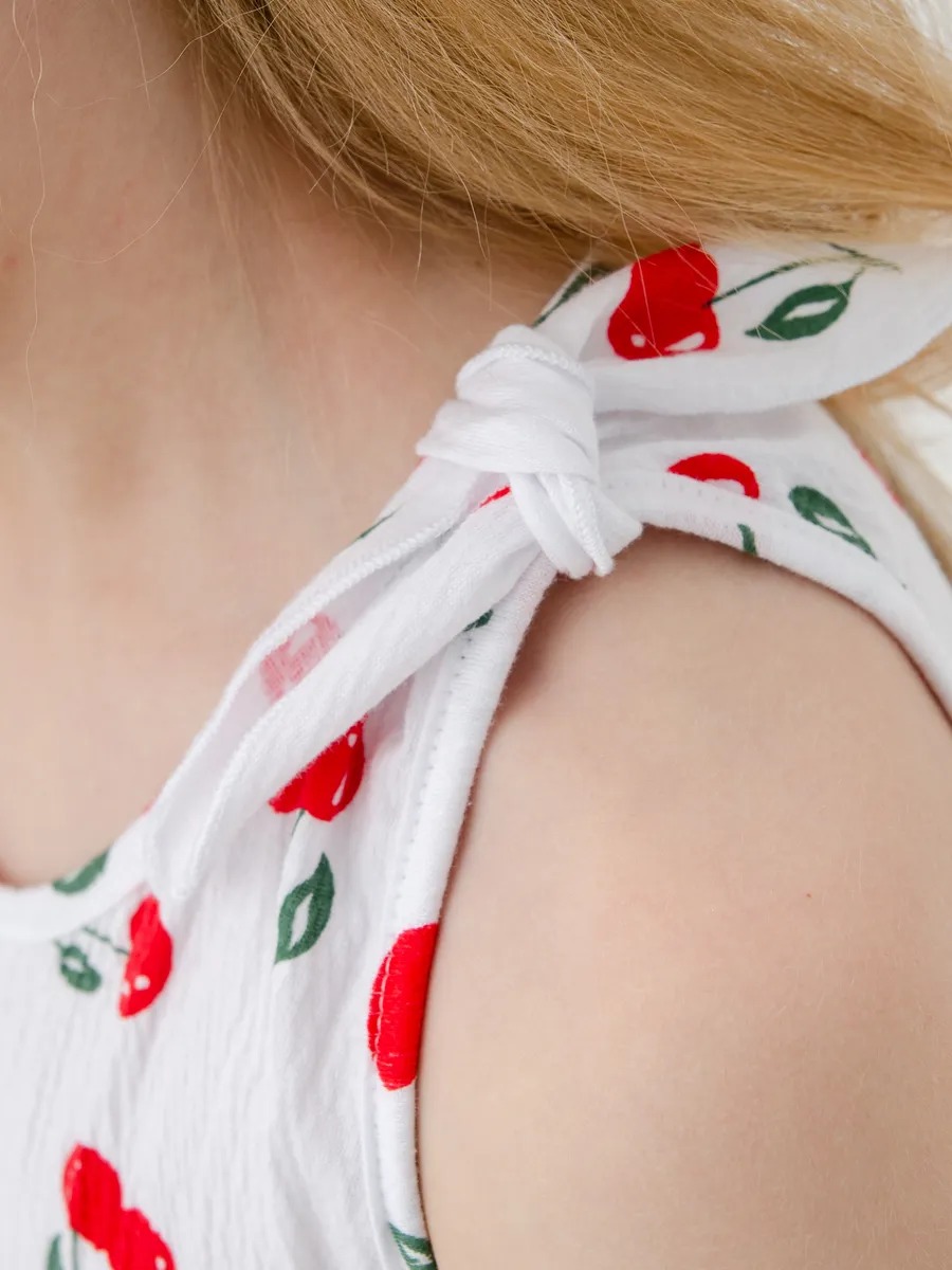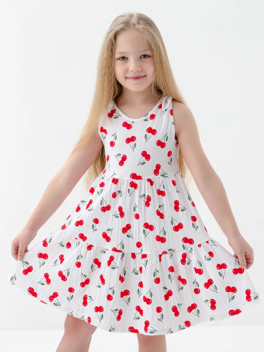 Детский сарафан "Романс" / Белый, вишня из хлопковой ткани, жатки. Легкий невесомый хлопок, быстро сохнет, мягкий и приятный на ощупь. Яркие расцветки подойдут для повседневной носки в детский сад и на праздничные мероприятия: день рождения, утренник в садике.