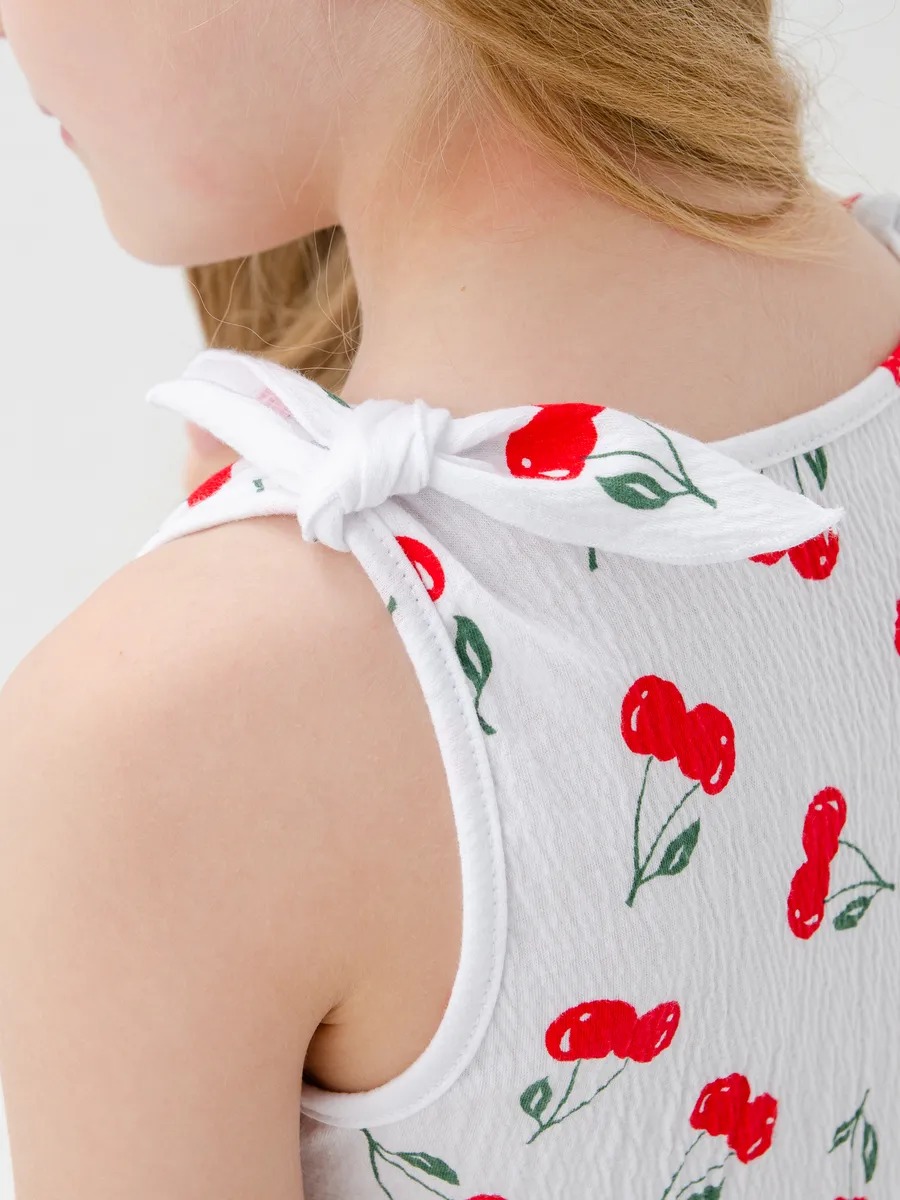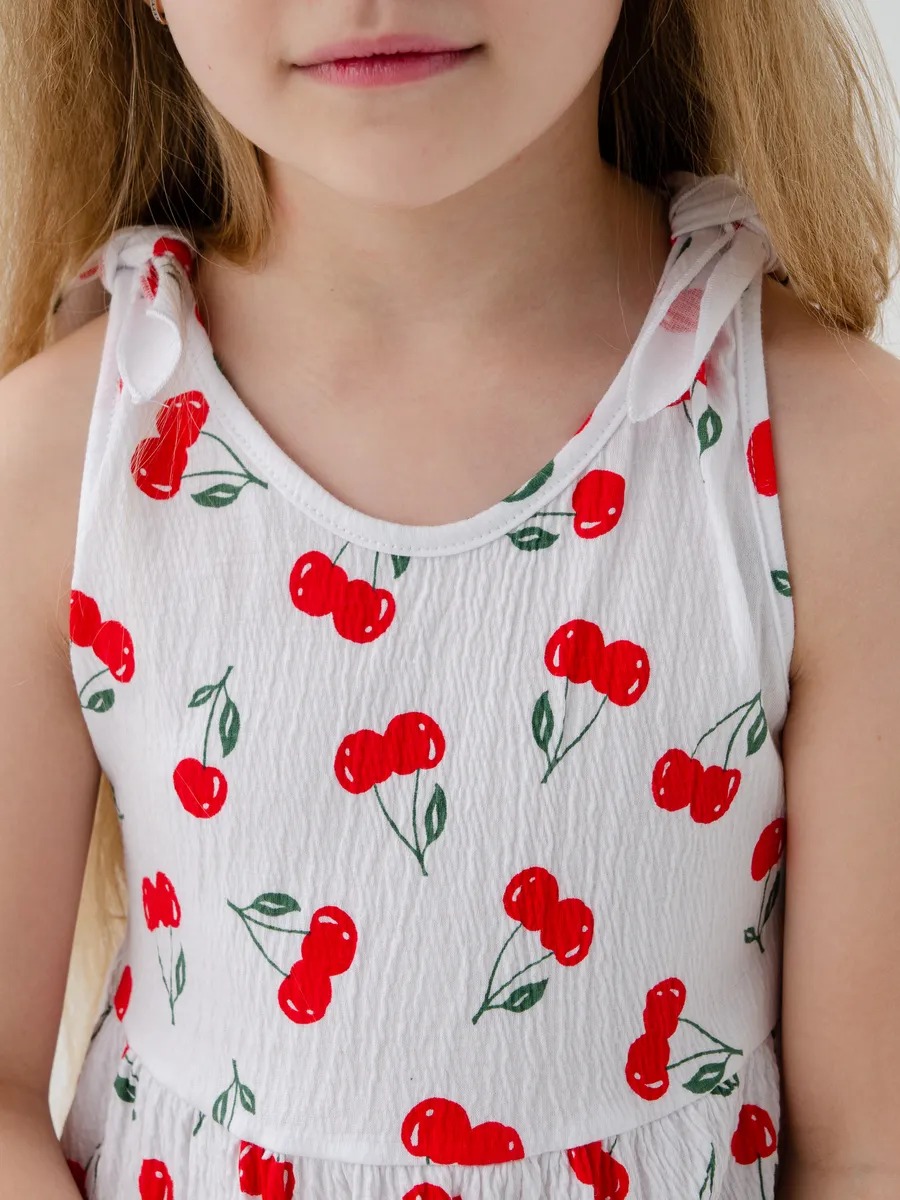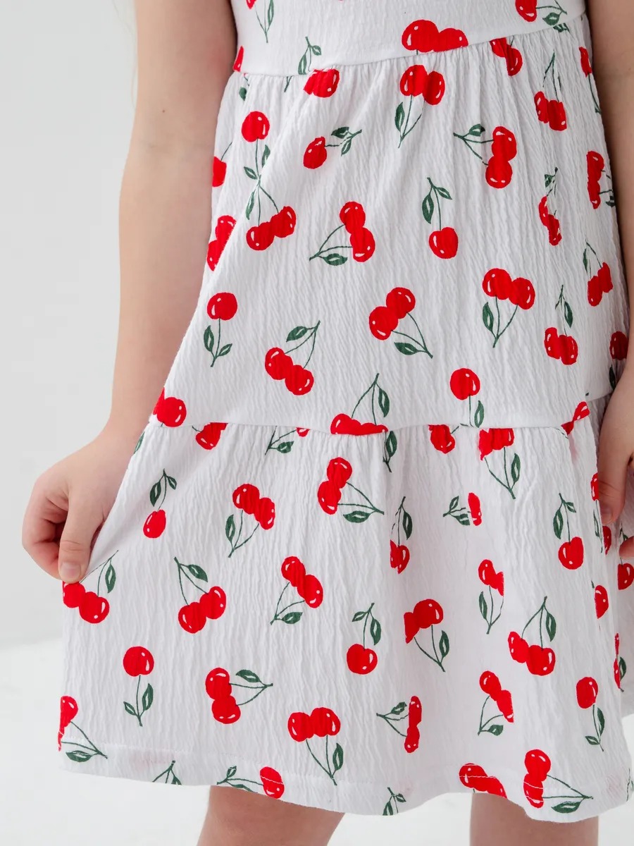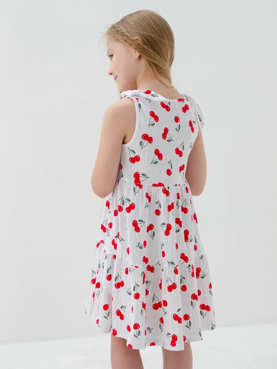 Детский сарафан "Романс" / Белый, вишня из хлопковой ткани, жатки. Легкий невесомый хлопок, быстро сохнет, мягкий и приятный на ощупь. Яркие расцветки подойдут для повседневной носки в детский сад и на праздничные мероприятия: день рождения, утренник в садике.