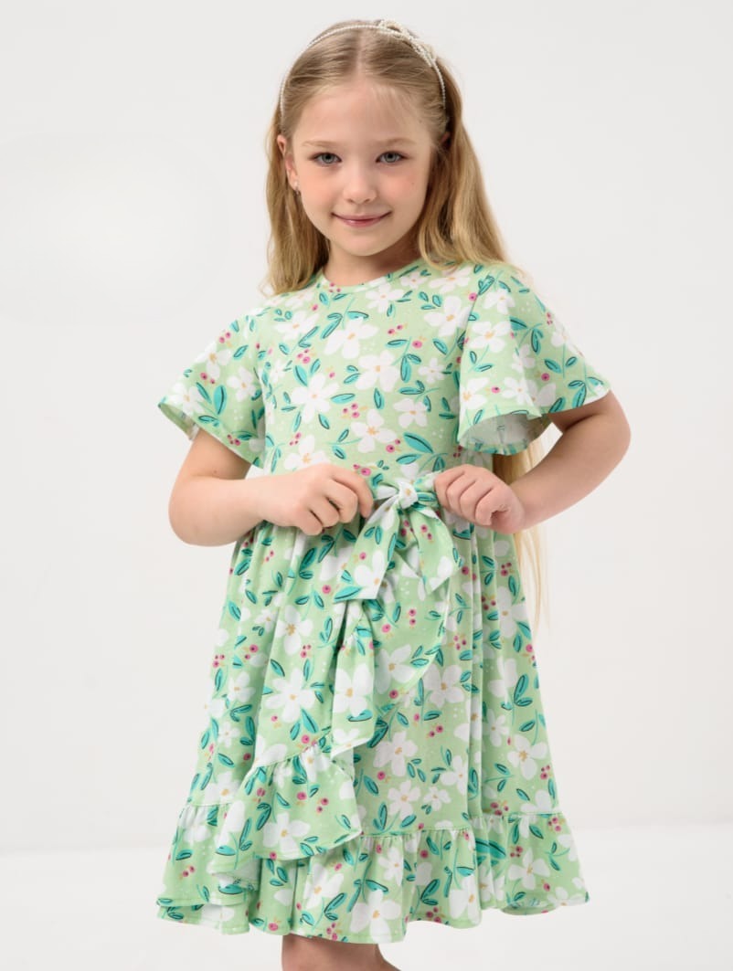 Красивое платье "Мальва" / Светло-зеленый для девочки с коротким рукавом в садик - идеальный выбор. Трикотажное детское платье с коротким рукавом создано специально для активных девочек, которые проводят много времени в детском саду. Платье с воланом для детей выполнено из высококачественного трикотажа, что обеспечивает комфорт и долговечность. Свободный крой платья не стесняет движений, что особенно важно для детской одежды. Яркий дизайн у платья в садик для девочки привлечет внимание и порадует Вашу маленькую девочку.