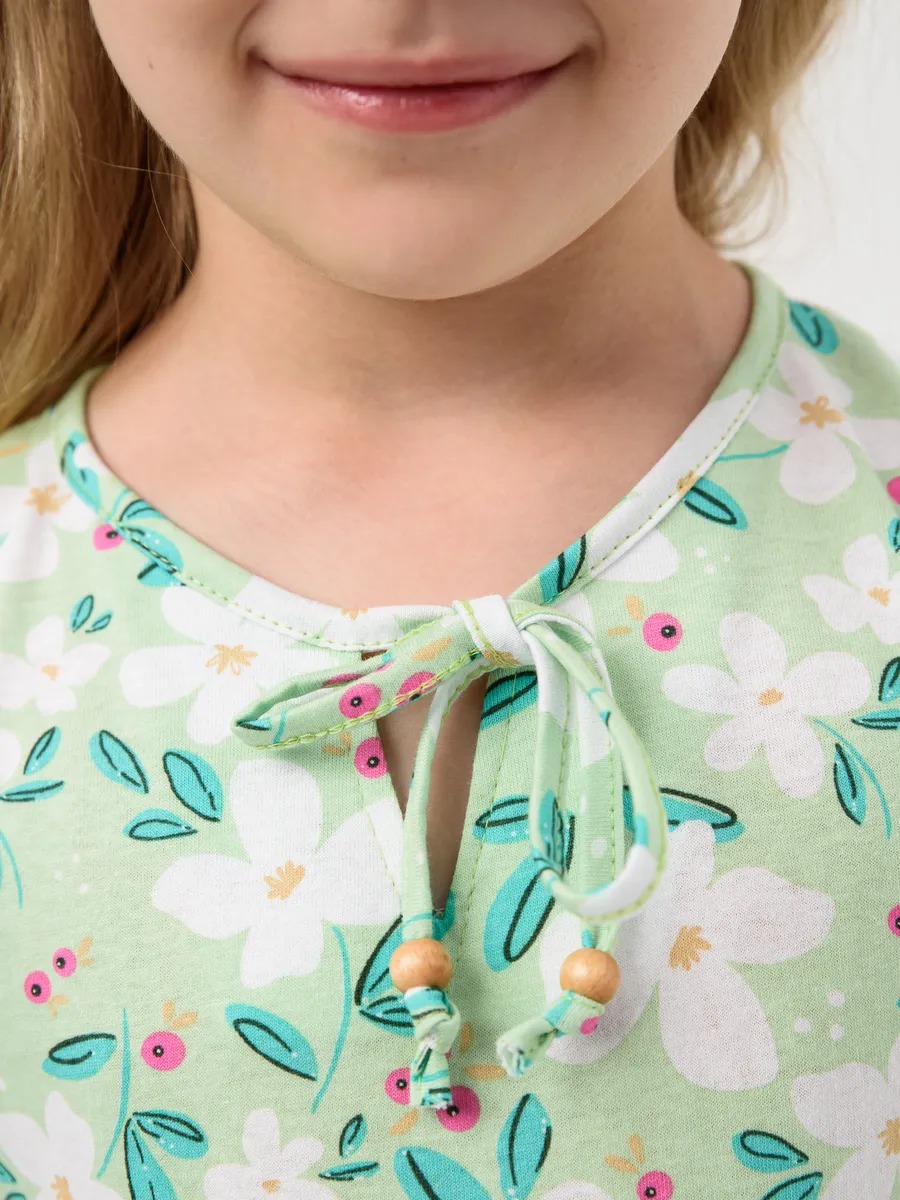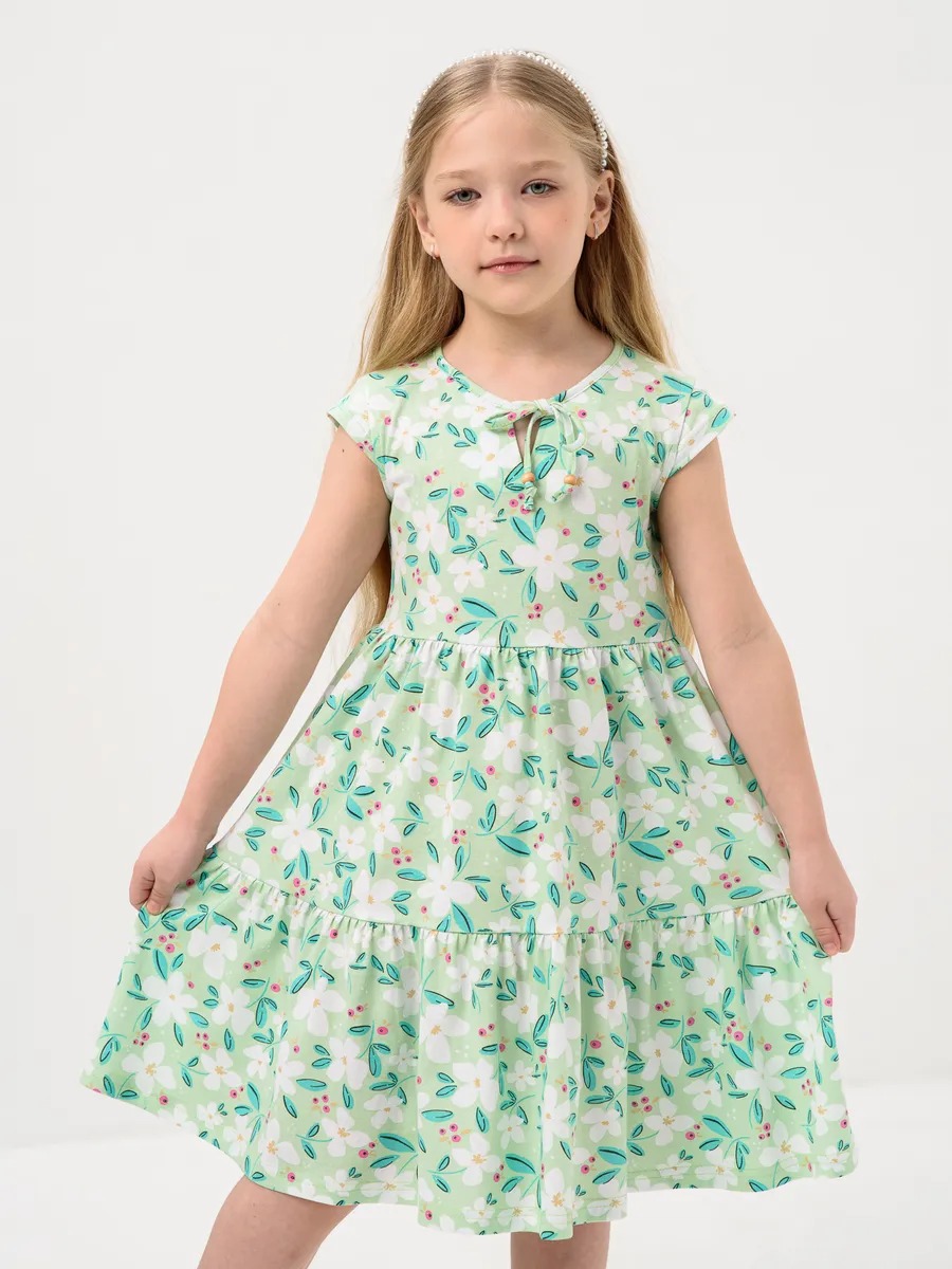 Спереди горловина на завязках, под линией горловины вырез в виде треугольника. Платье представлено в различных расцветках, чтобы Ваша дочка могла выбрать свой собственный стиль. Красивые рисунки и яркие оттенки ткани добавляют очарования этому нарядному платью.