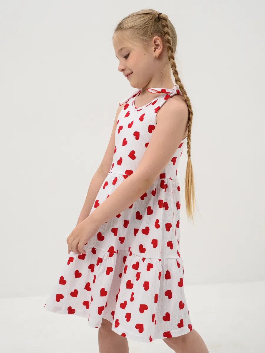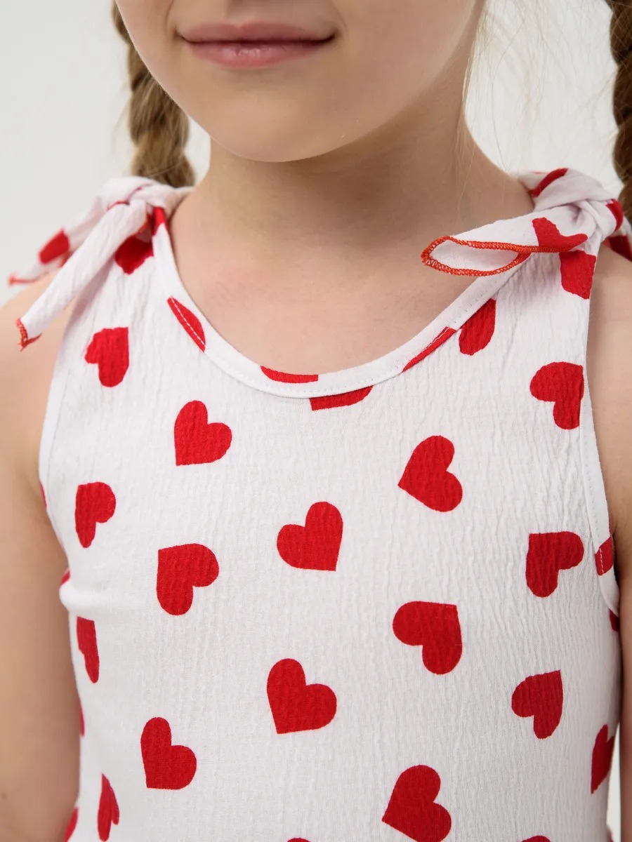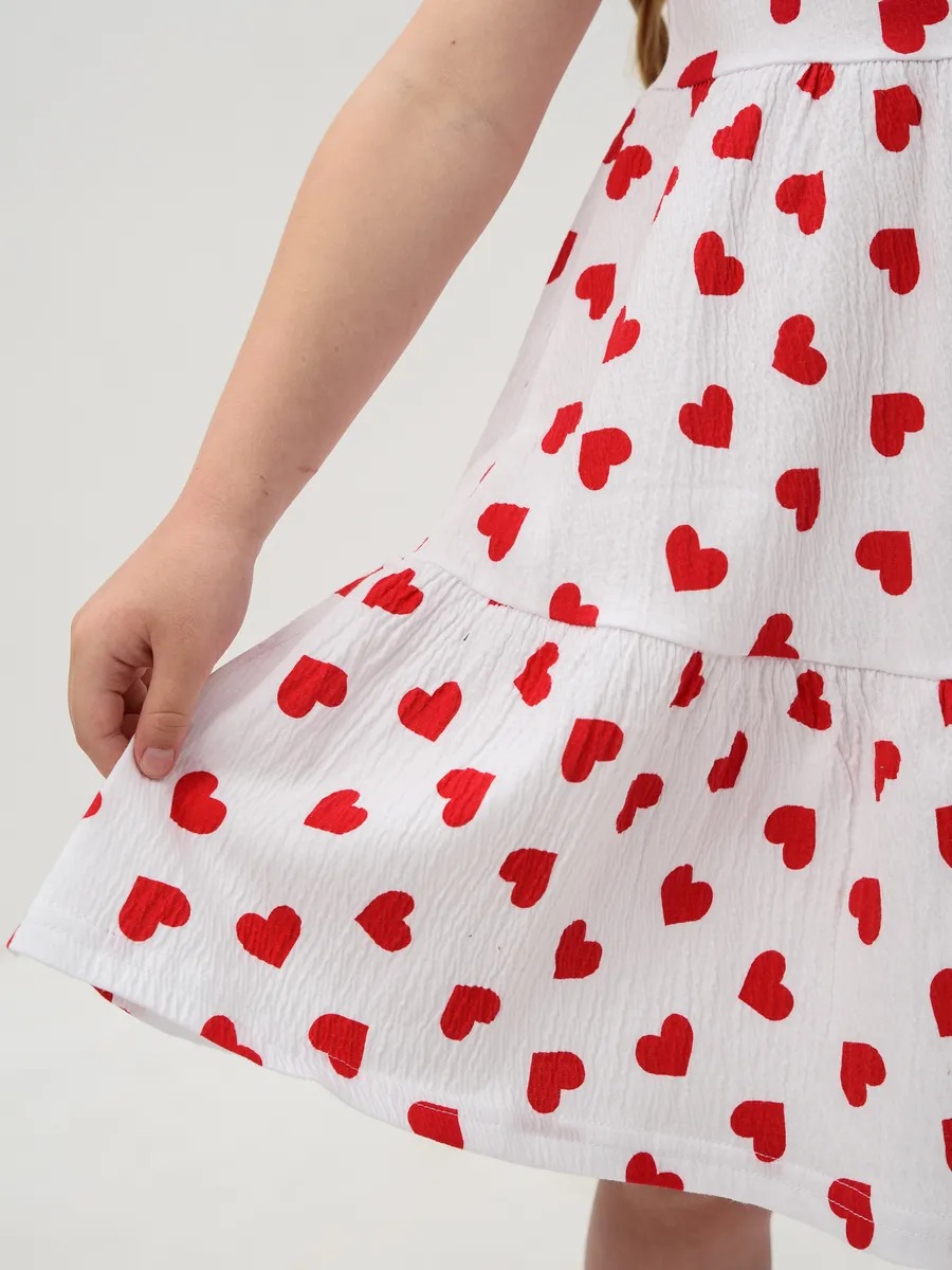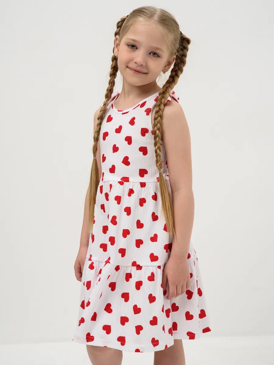 Детский сарафан "Романс" / Белый, сердечки из хлопковой ткани, жатки. Легкий невесомый хлопок, быстро сохнет, мягкий и приятный на ощупь. Яркие расцветки подойдут для повседневной носки в детский сад и на праздничные мероприятия: день рождения, утренник в садике.