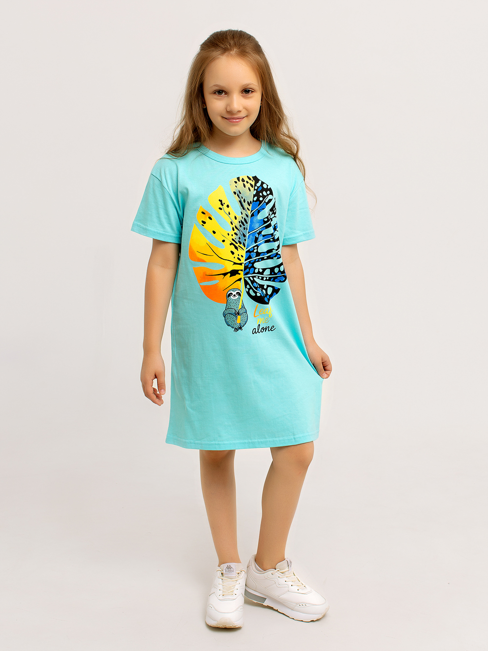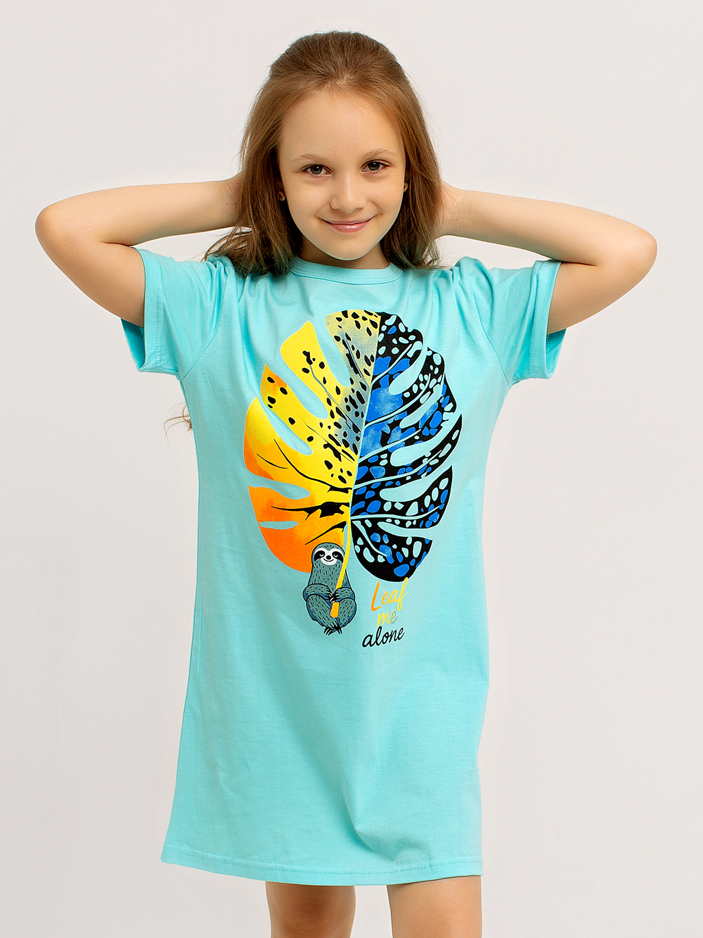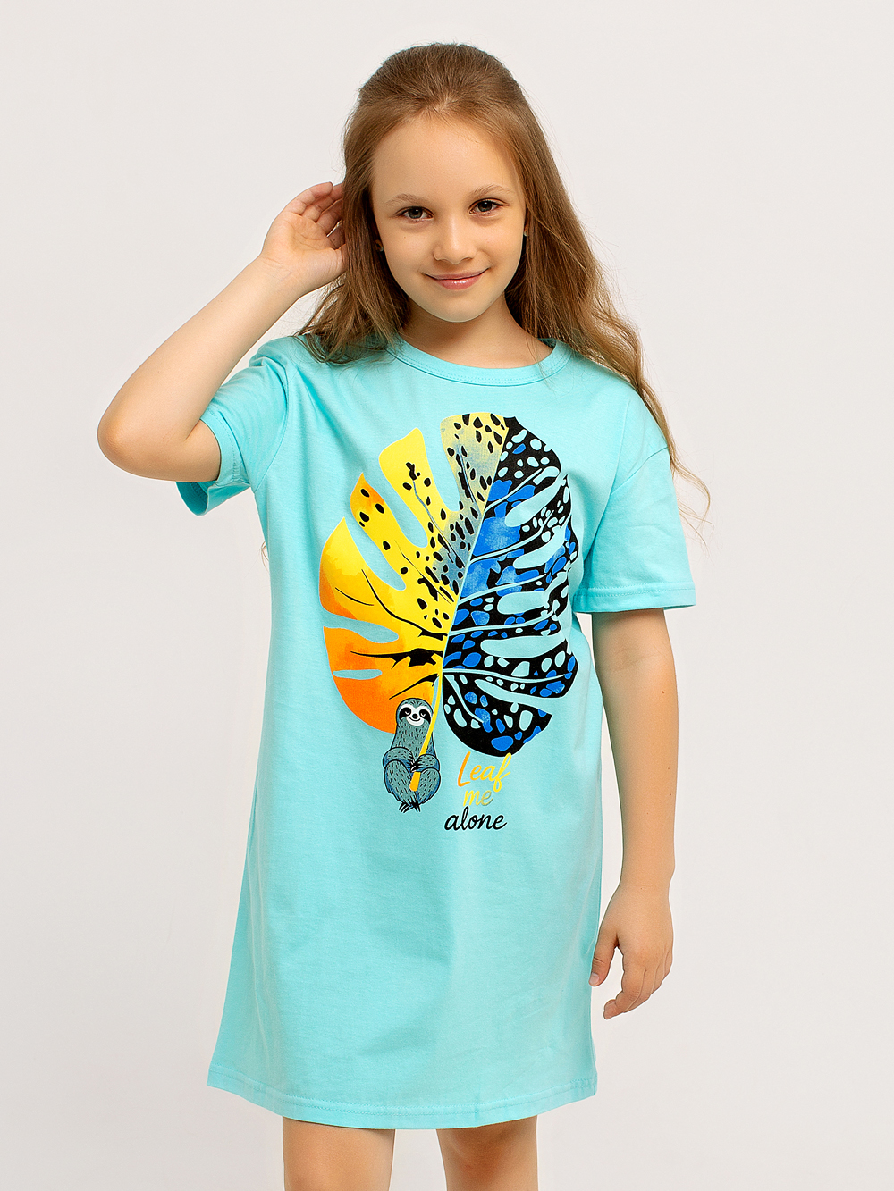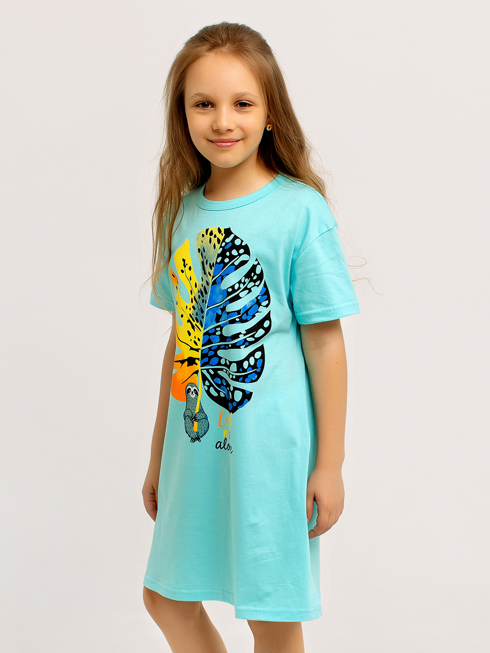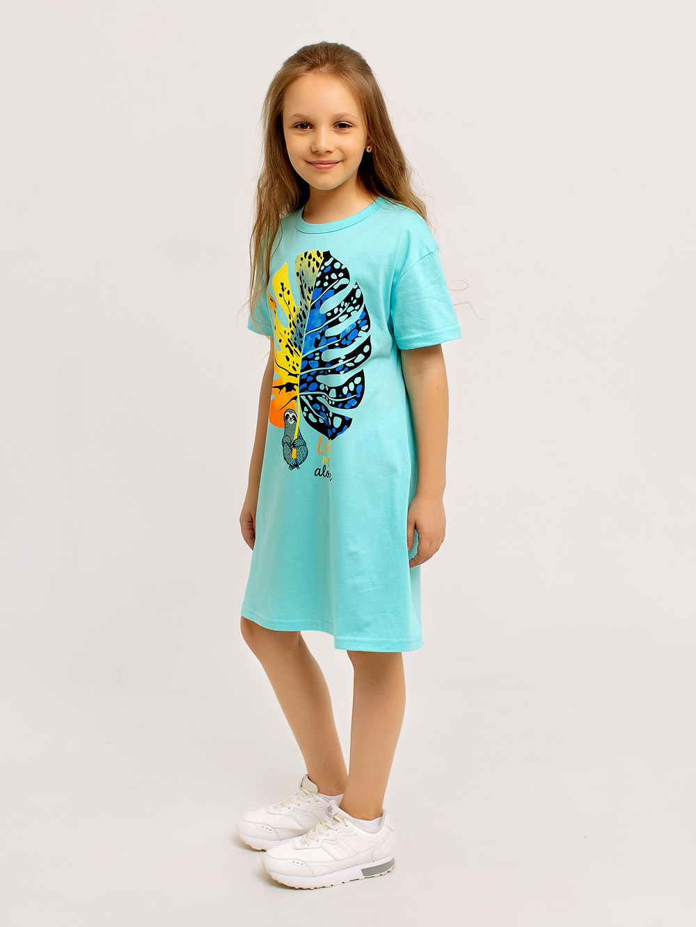 Платье-футболка оверсайз для девочки — универсальная и комфортная модель, которая легко заменяет и платье, и тунику, и домашнюю сорочку. Выполнена из 100% хлопка, мягкого и приятного к телу, подходящего для ежедневной носки дома, на прогулке или во сне.
