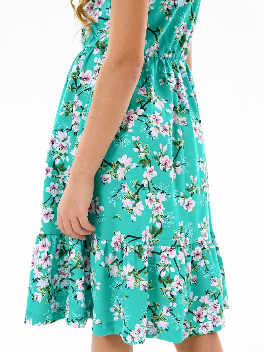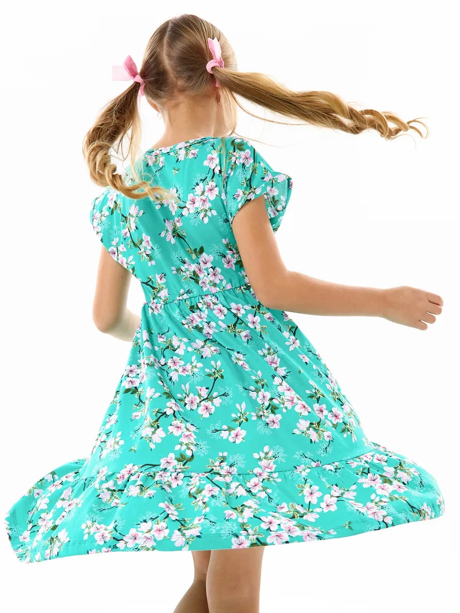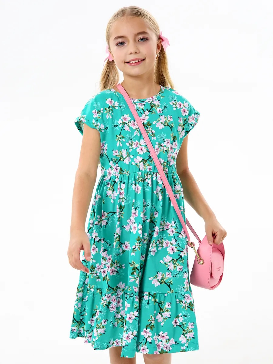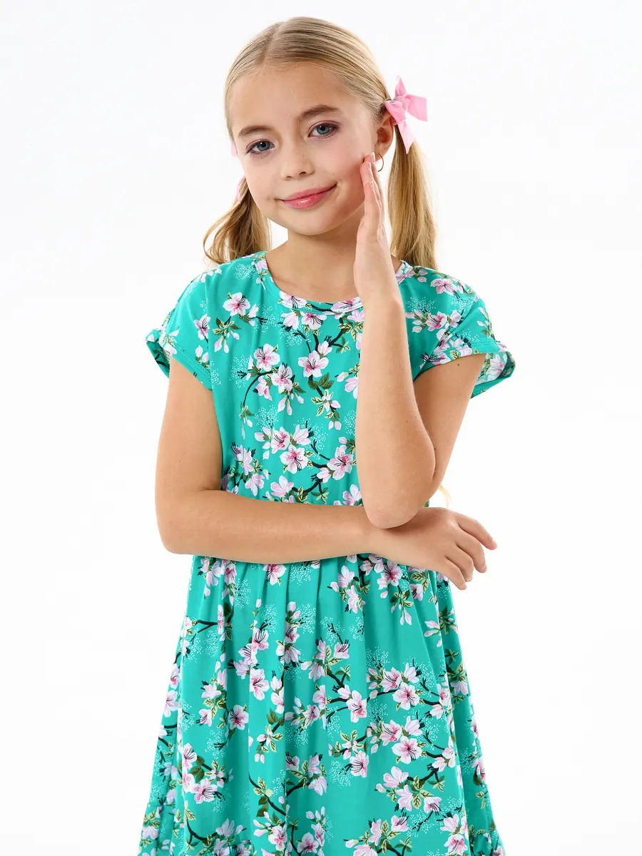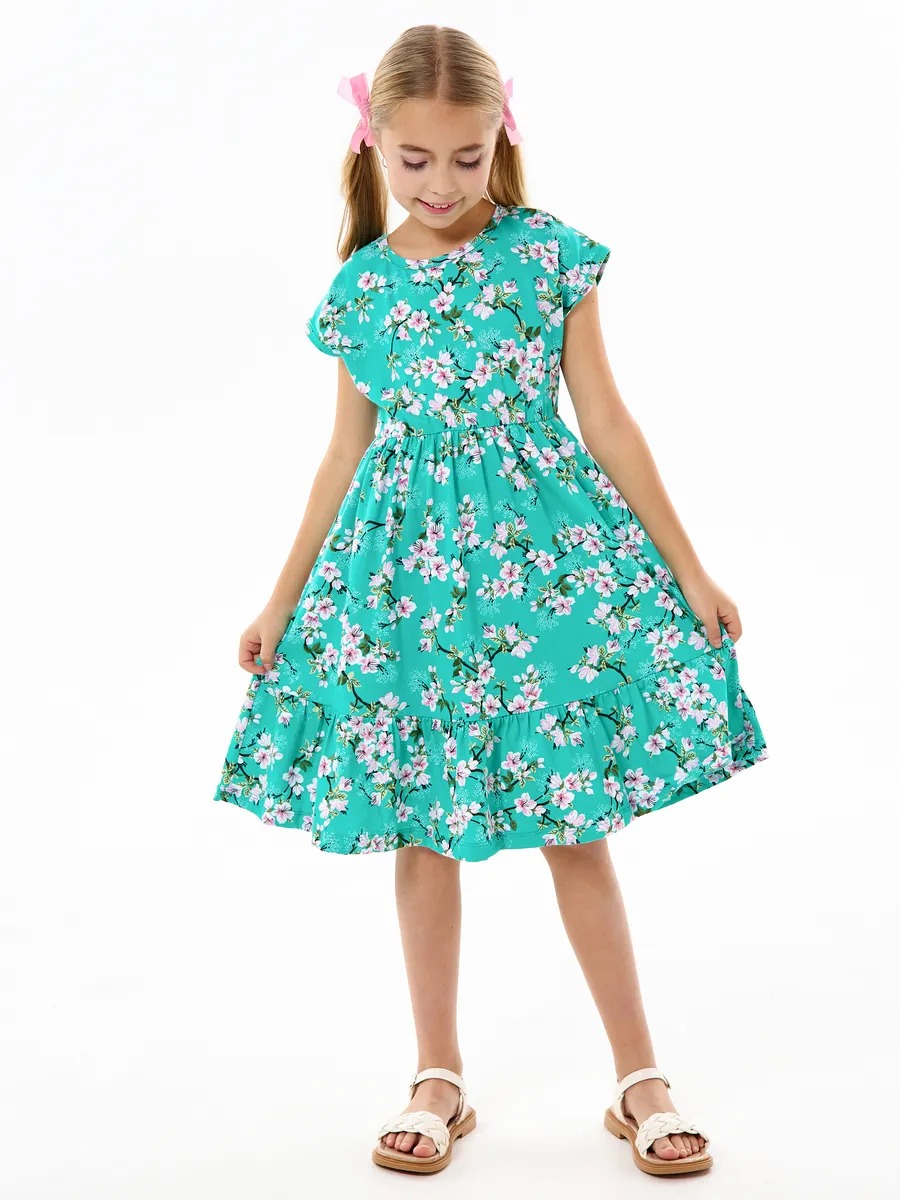 Платье легкое и удобное в носке, отлично подходит на лето для повседневных прогулок в теплую погоду, в детский садик или на праздник. Благодаря яркой расцветке, удобному крою и летящей юбке с оборкой оно выглядит просто и одновременно роскошно. Детское платье для девочки изготавливается из качественного 100% хлопка, будет удобно в носке и устойчивом к многочисленным стиркам. Платье нарядное имеет свободный покрой с завышенной талией на эластичной потайной резиночке, поэтому подходит как для стройных, так и на пухленьких девочек. У платья спущенный цельнокроеный рукав.