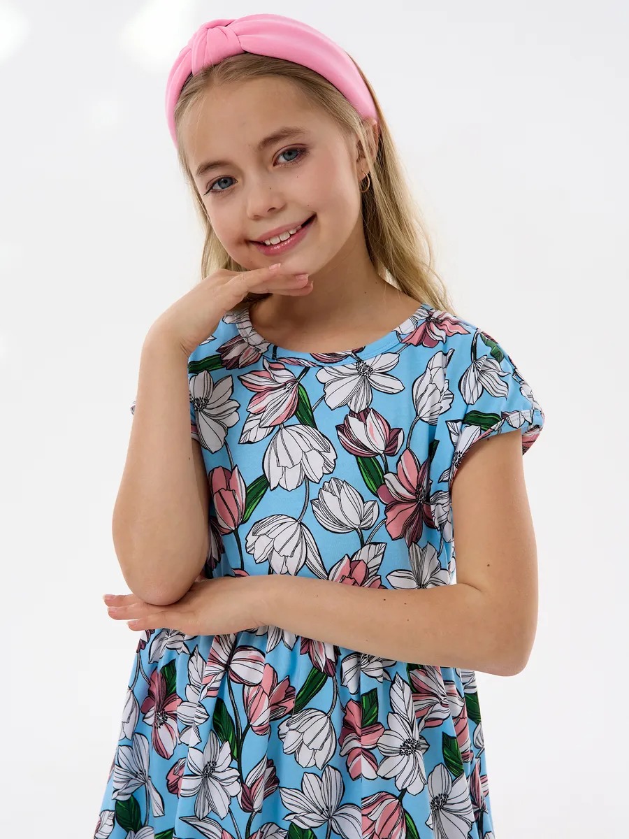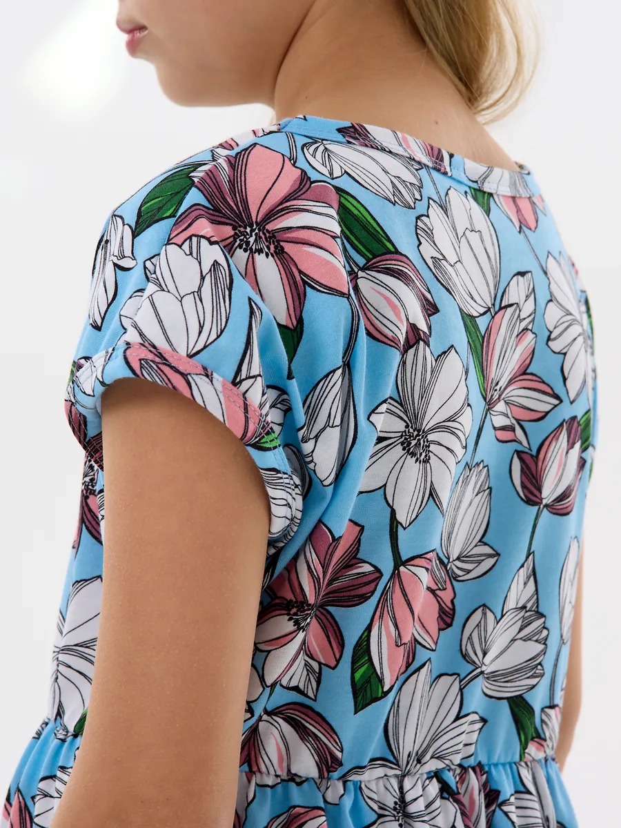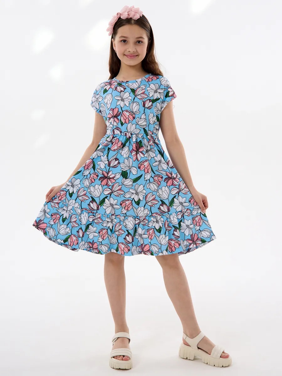 Платье легкое и удобное в носке, отлично подходит на лето для повседневных прогулок в теплую погоду, в детский садик или на праздник. Благодаря яркой расцветке, удобному крою и летящей юбке с оборкой оно выглядит просто и одновременно роскошно. Детское платье для девочки изготавливается из качественного 100% хлопка, будет удобно в носке и устойчивом к многочисленным стиркам. Платье нарядное имеет свободный покрой с завышенной талией на эластичной потайной резиночке, поэтому подходит как для стройных, так и на пухленьких девочек. У платья спущенный цельнокроеный рукав.
