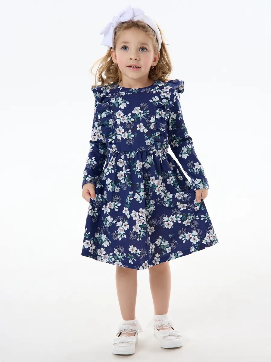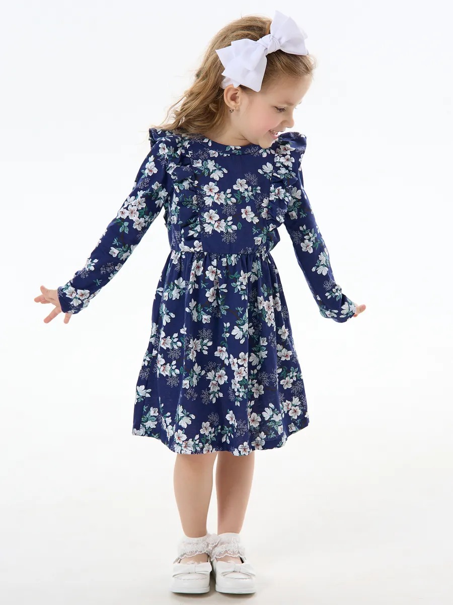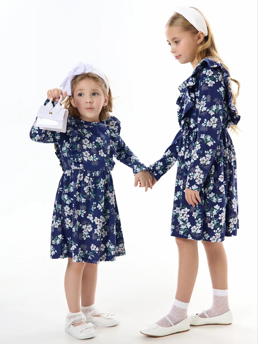 Платье выполнено в популярном винтажном стиле тренд 2026 года — сочетание рюшей, приталенного силуэта и цветочного принта напоминает модные платья в ретро стиле и актуальные тенденции советской детской моды. Приталенный силуэт, воланы на плечах и нежный цветочный принт — детали, характерные для винтажных и ретро платьев. Такое советское платье вновь в тренде и станет отличным выбором для маленьких модниц, любящих стильные образы.