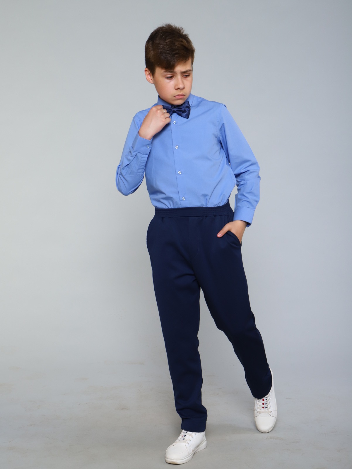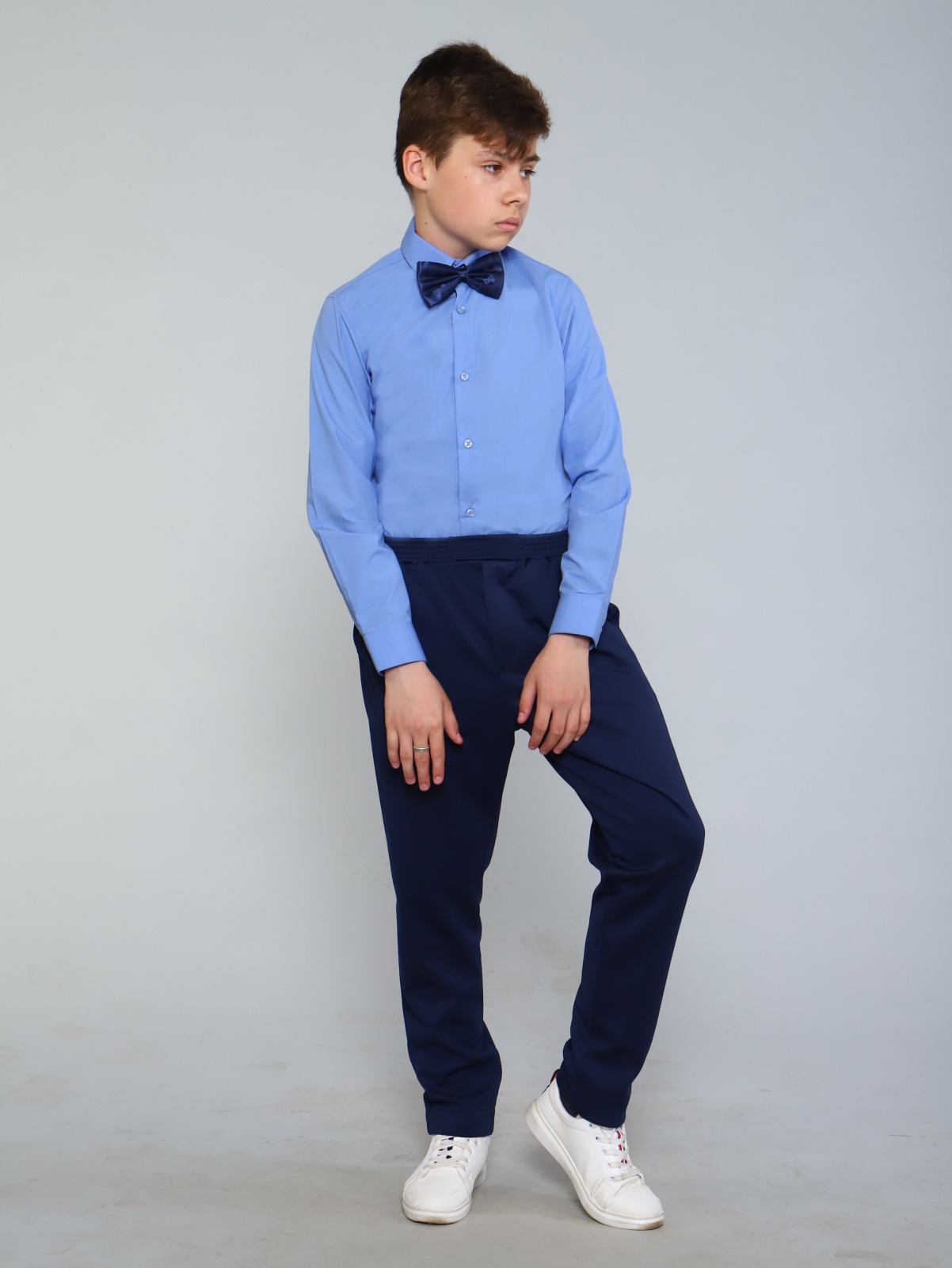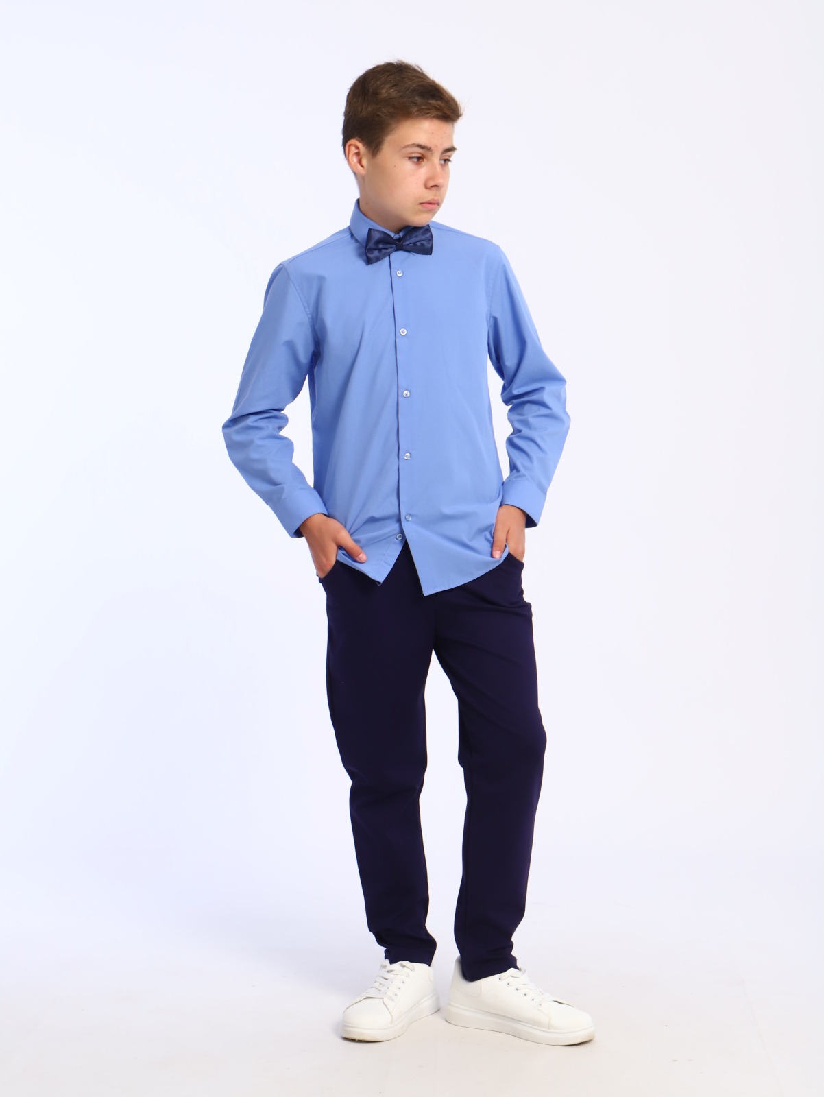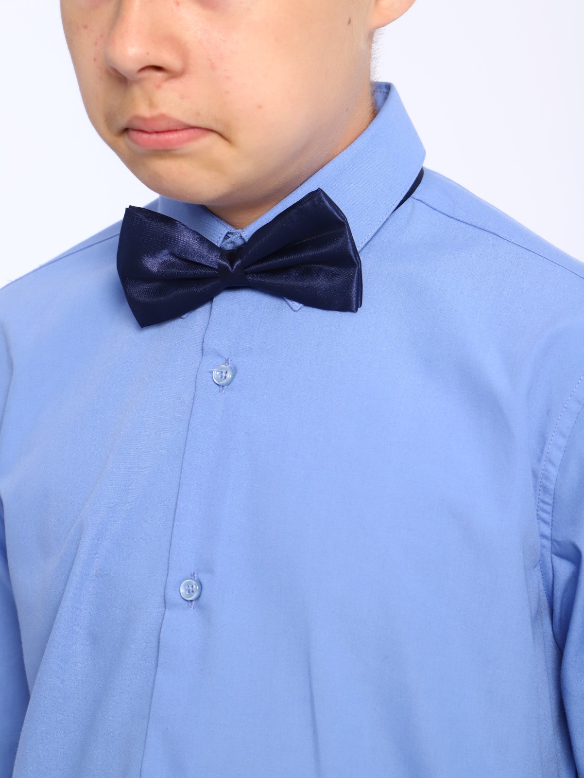 Школьная рубашка сшита из сорочечной ткани с хлопком.