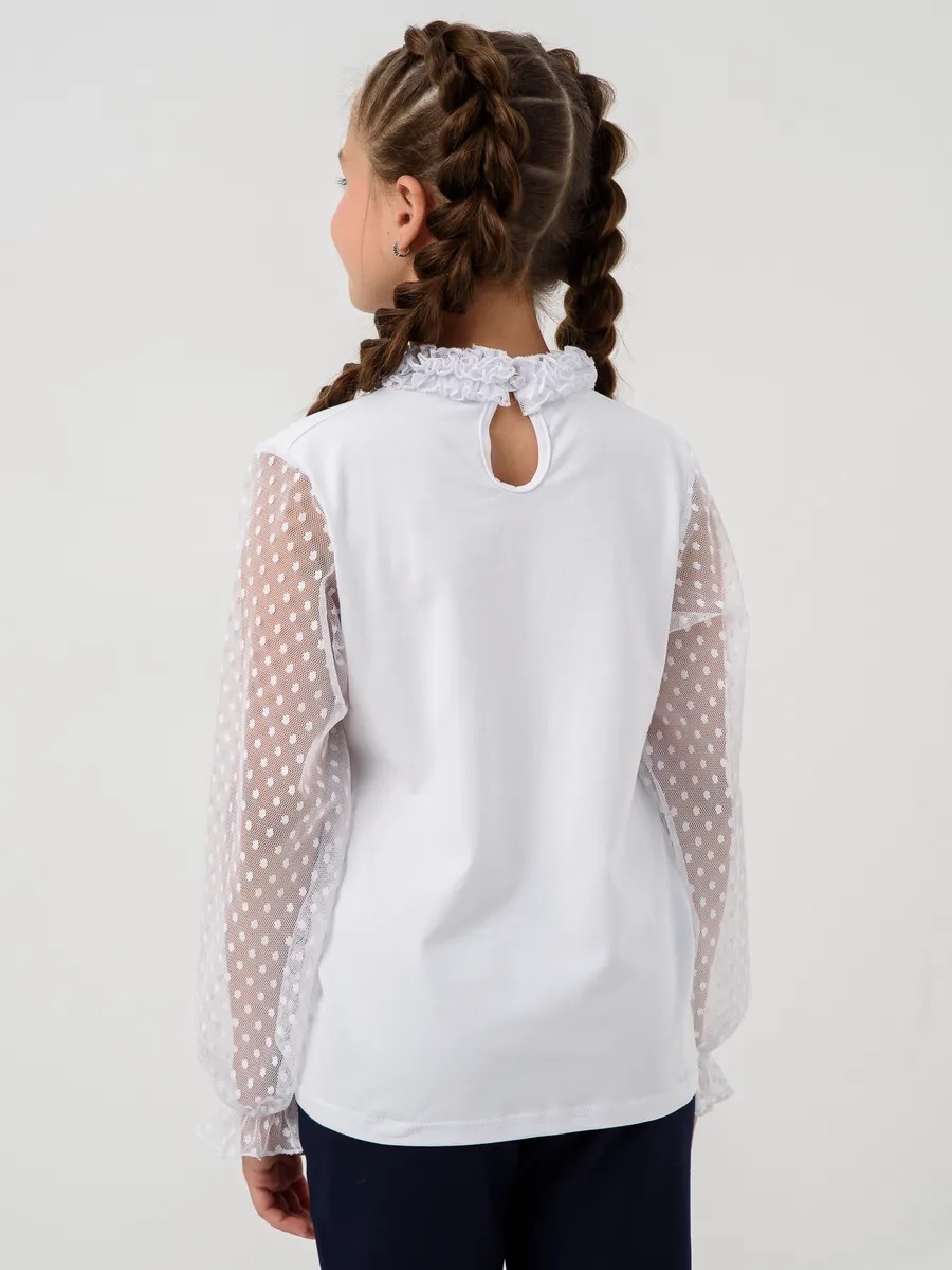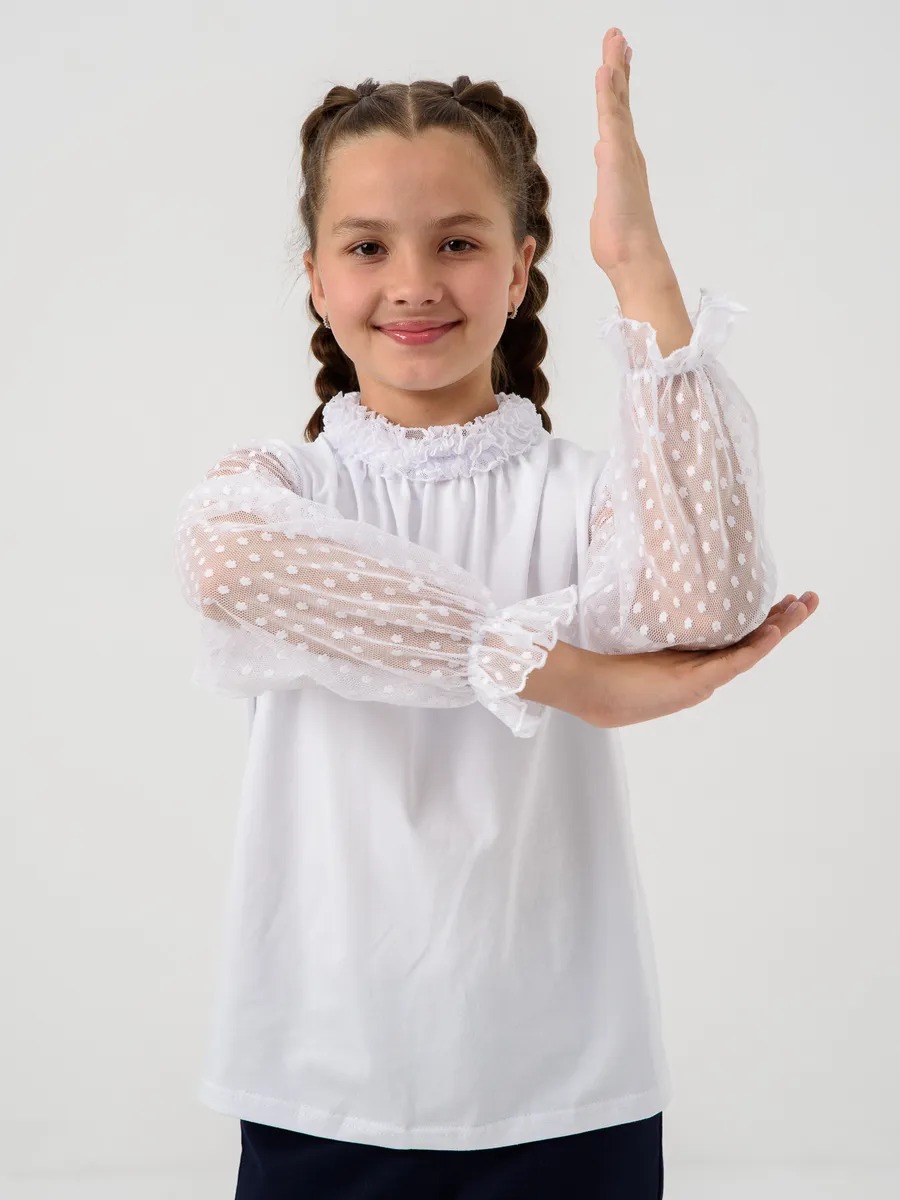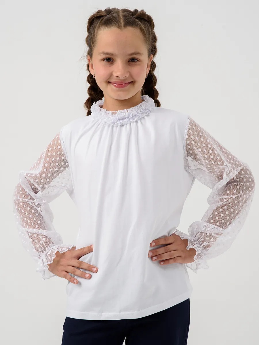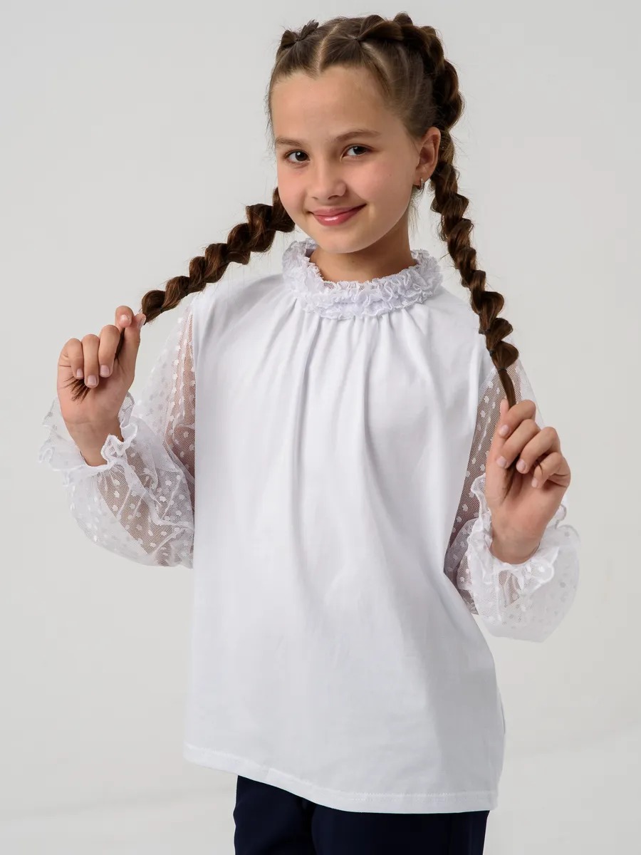 Блузка "Кайли" длинный рукав станет идеальным выбором для школьного гардероба Вашей дочери. Блузка трикотажная для девочки подходит для повседневного ношения, на 1 сентября и торжественных мероприятий. Она изготовлена из высококачественных материалов, что обеспечивает комфорт и долговечность. Школьная блузка легко сочетается с различными элементами одежды, будь то юбка, брюки или сарафан. Это делает ее универсальной вещью в гардеробе каждой подростковой девочки. Предназначенная для подростков, эта школьная белая блузка отличается современным дизайном и удобным кроем, который не стесняет движений, позволяя девочке чувствовать себя уверенно и комфортно в течение всего дня.