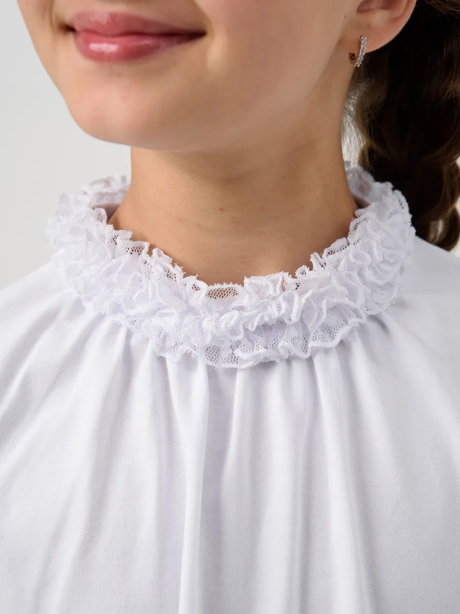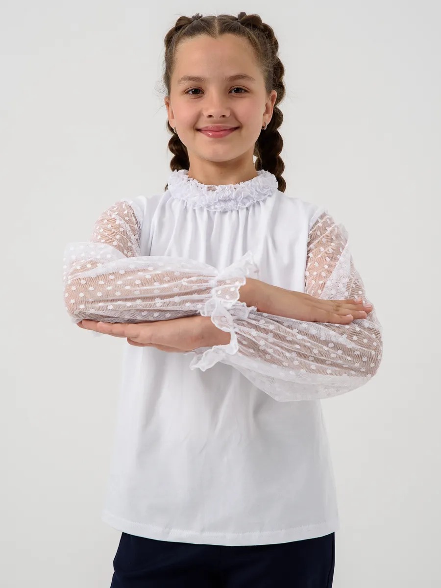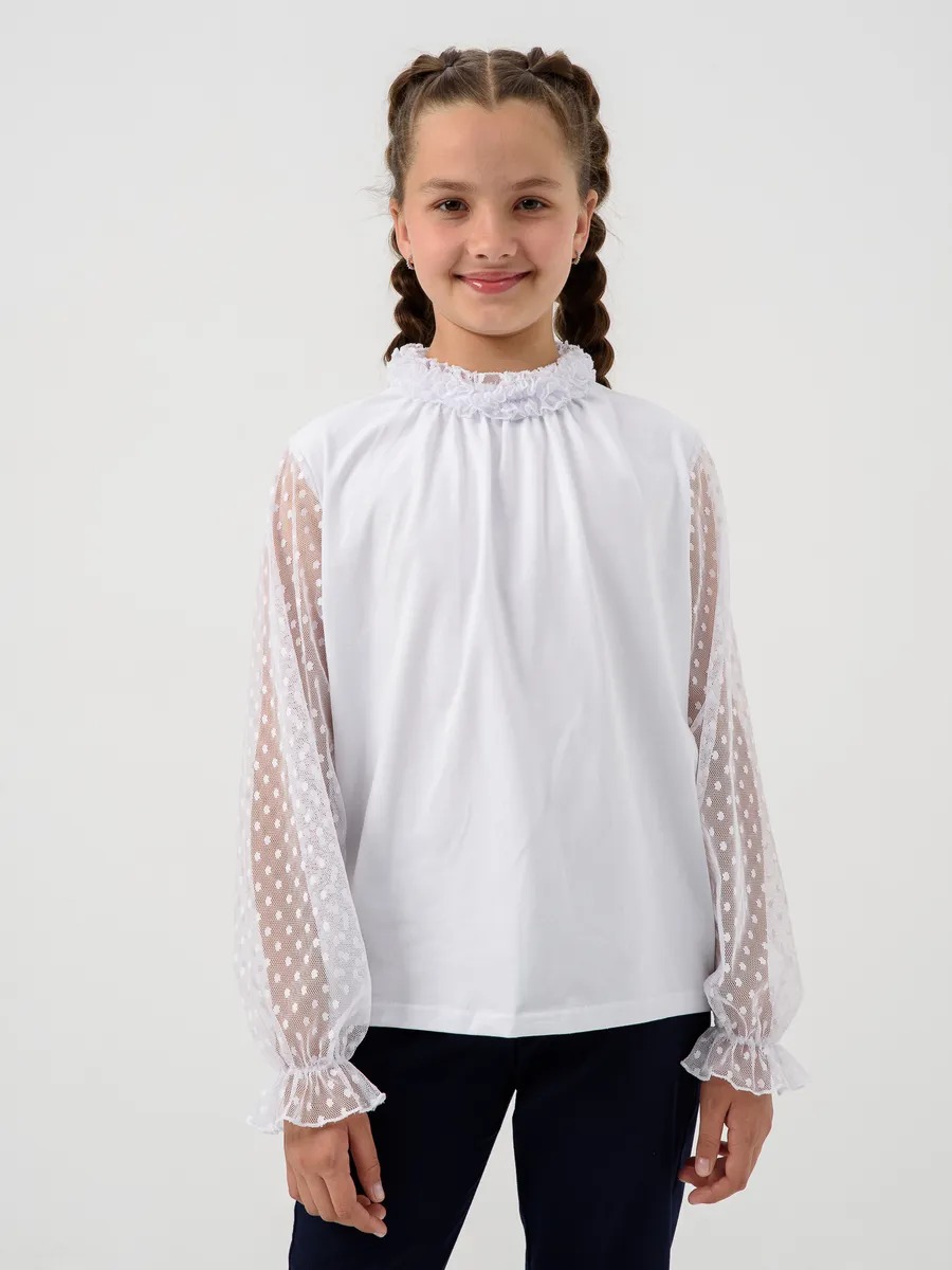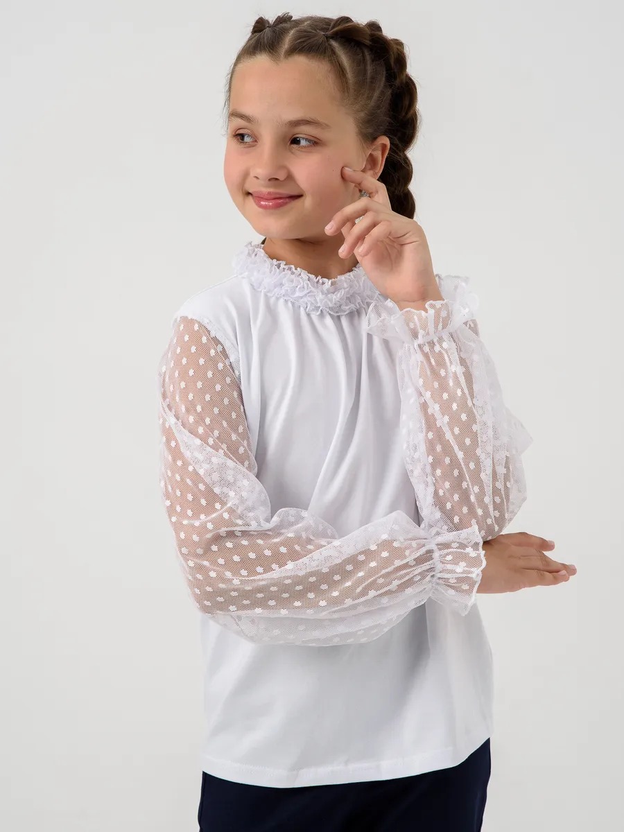 Блузка "Кайли" длинный рукав станет идеальным выбором для школьного гардероба Вашей дочери. Блузка трикотажная для девочки подходит для повседневного ношения, на 1 сентября и торжественных мероприятий. Она изготовлена из высококачественных материалов, что обеспечивает комфорт и долговечность. Школьная блузка легко сочетается с различными элементами одежды, будь то юбка, брюки или сарафан. Это делает ее универсальной вещью в гардеробе каждой подростковой девочки. Предназначенная для подростков, эта школьная белая блузка отличается современным дизайном и удобным кроем, который не стесняет движений, позволяя девочке чувствовать себя уверенно и комфортно в течение всего дня.