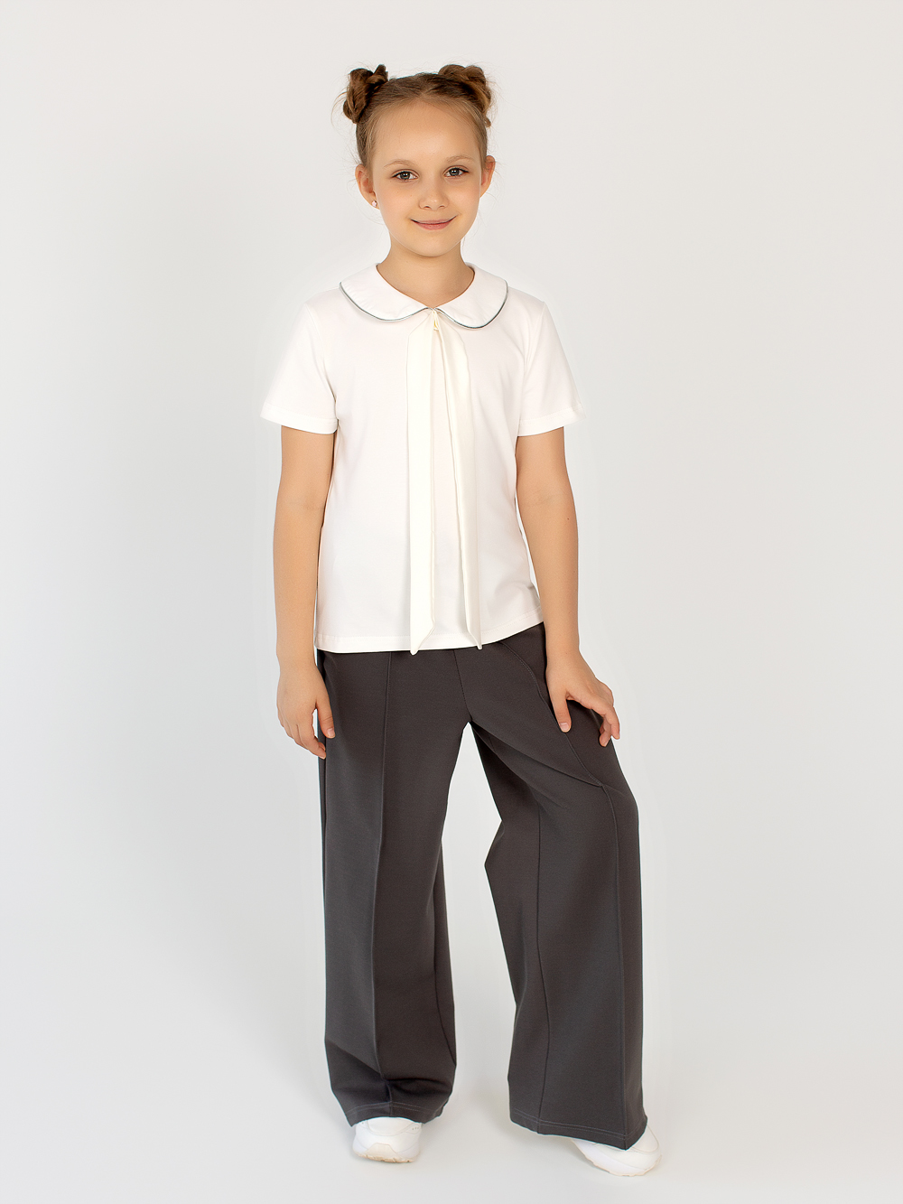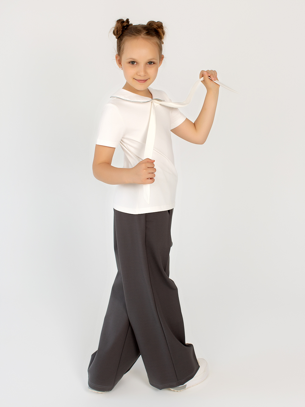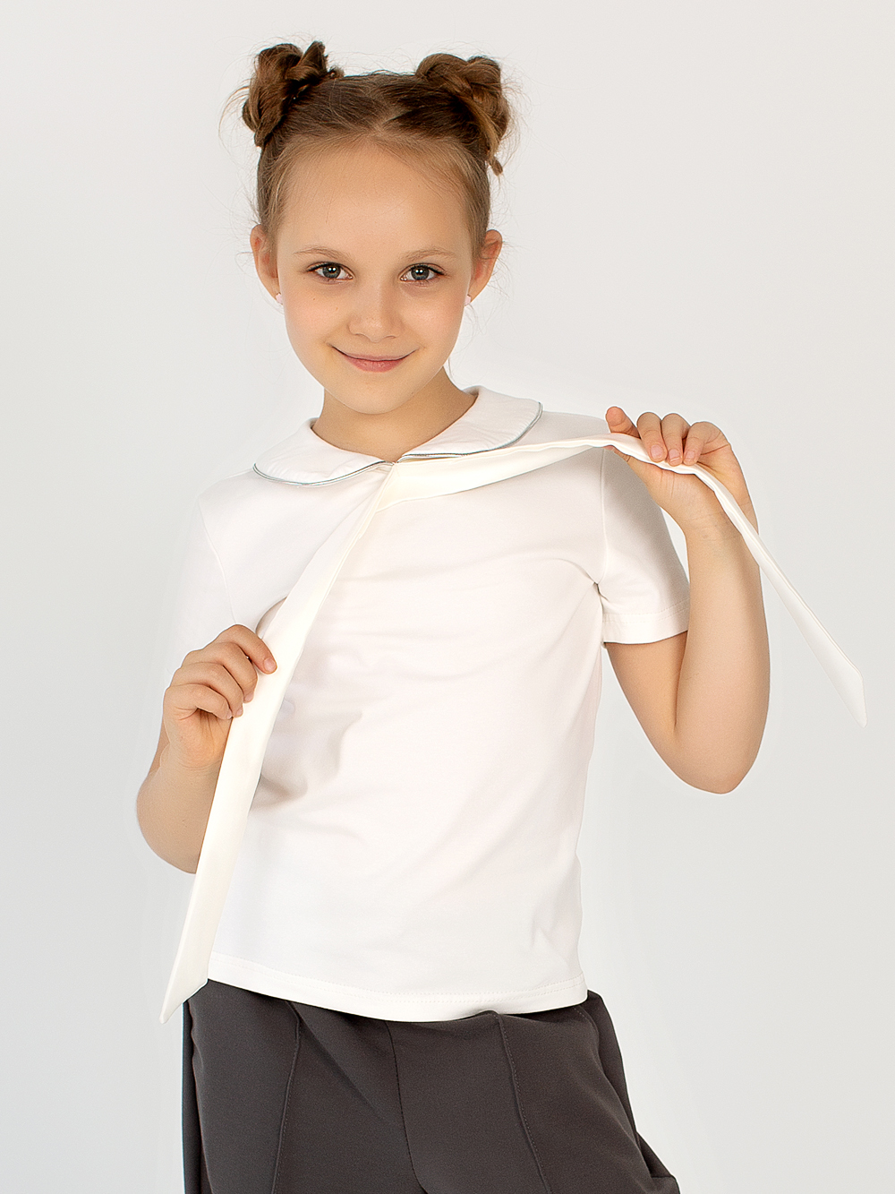 Школьная трикотажная блузка для девочки с атласным галстуком-бантом — стильная и удобная модель, идеально подходящая для повседневной носки в школу и для торжественных случаев. Она сочетает в себе классическую строгость и нежные декоративные детали, благодаря чему создаёт элегантный и запоминающийся образ.