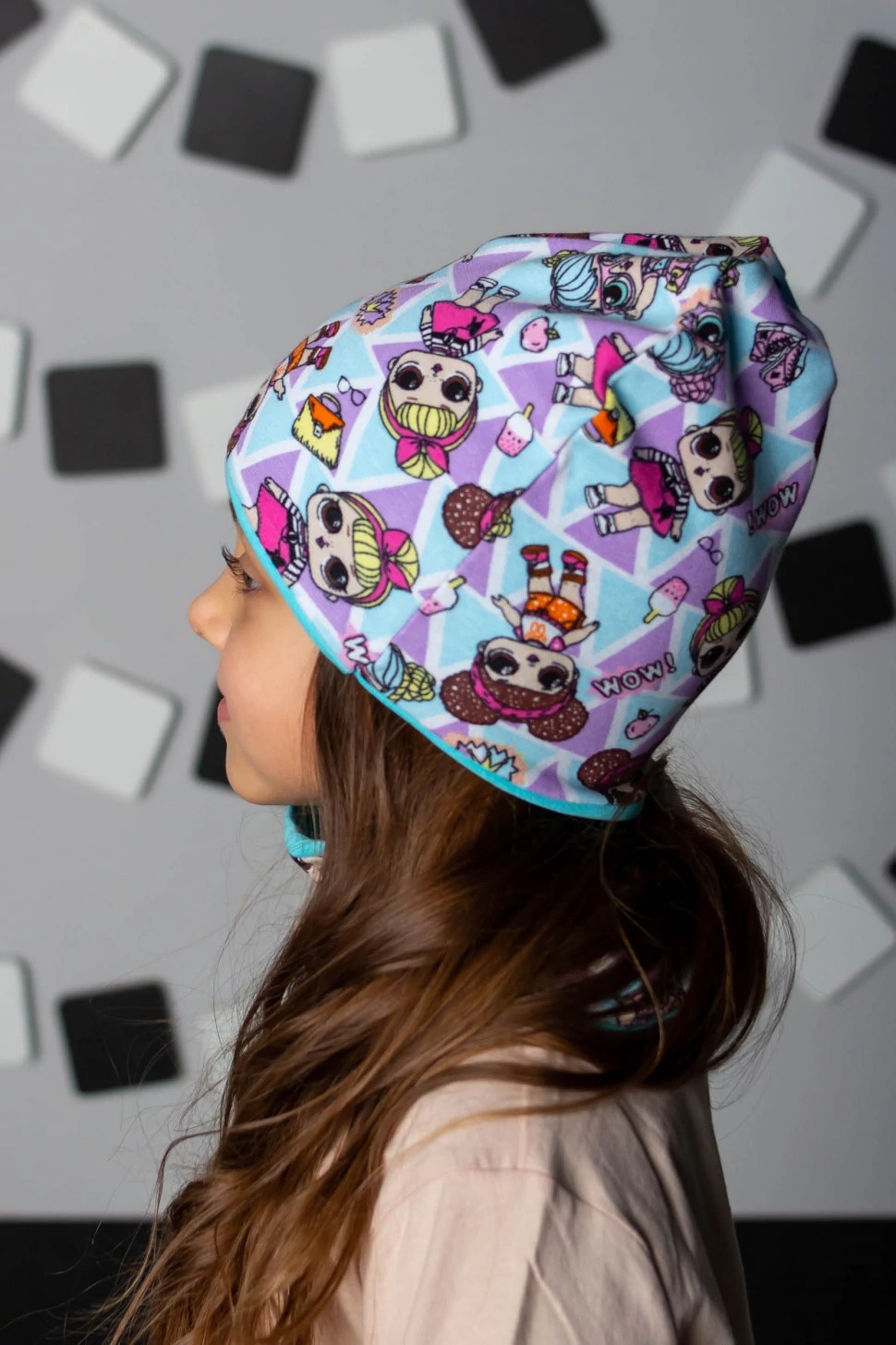 Ткань для товара качественная, не садится после стирки и быстро сохнет, если зимой нужно постирать вещь и надеть ее на следующий день. Материал не электризуется, дети с комфортом надевают и снимают этот головной убор.