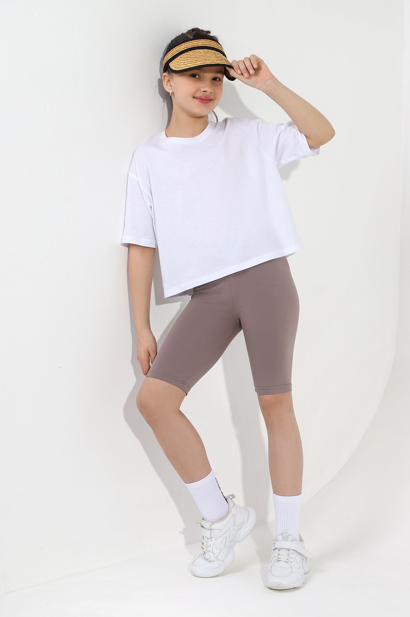Бриджи-велосипедки для девочки из трикотажного полотна "кулирка с лайкрой" классические, плотного прилегания к телу.
