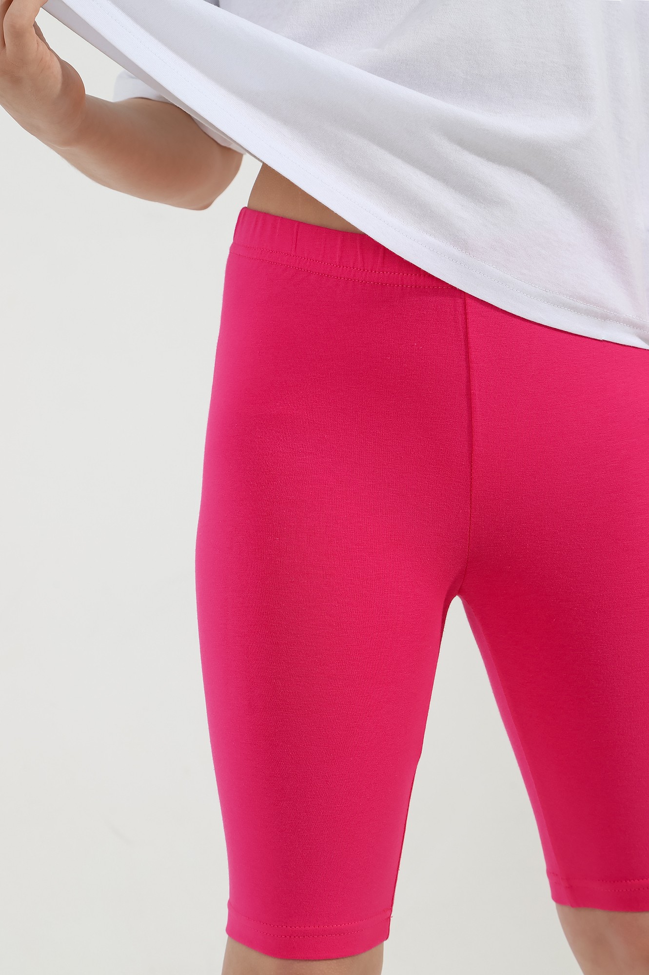 Бриджи-велосипедки для девочки из трикотажного полотна "кулирка с лайкрой" классические, плотного прилегания к телу.