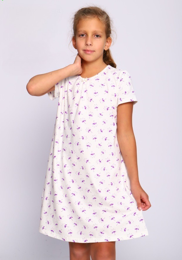 Ночная сорочка для девочек с коротким рукавом выполнена из натуральной ткани, кулирки. Нежный цвет в одежде для сна будет успокаивать и снижать активность, настраивая на отдых и сон. Умеренно свободный фасон создает ощущение свободы и комфорта. Такая ночная рубашка свободного силуэта непременно пригодится дома и обеспечит девочке должный комфорт во время сна. Она может выступить даже в качестве стильного домашнего платья или туники.