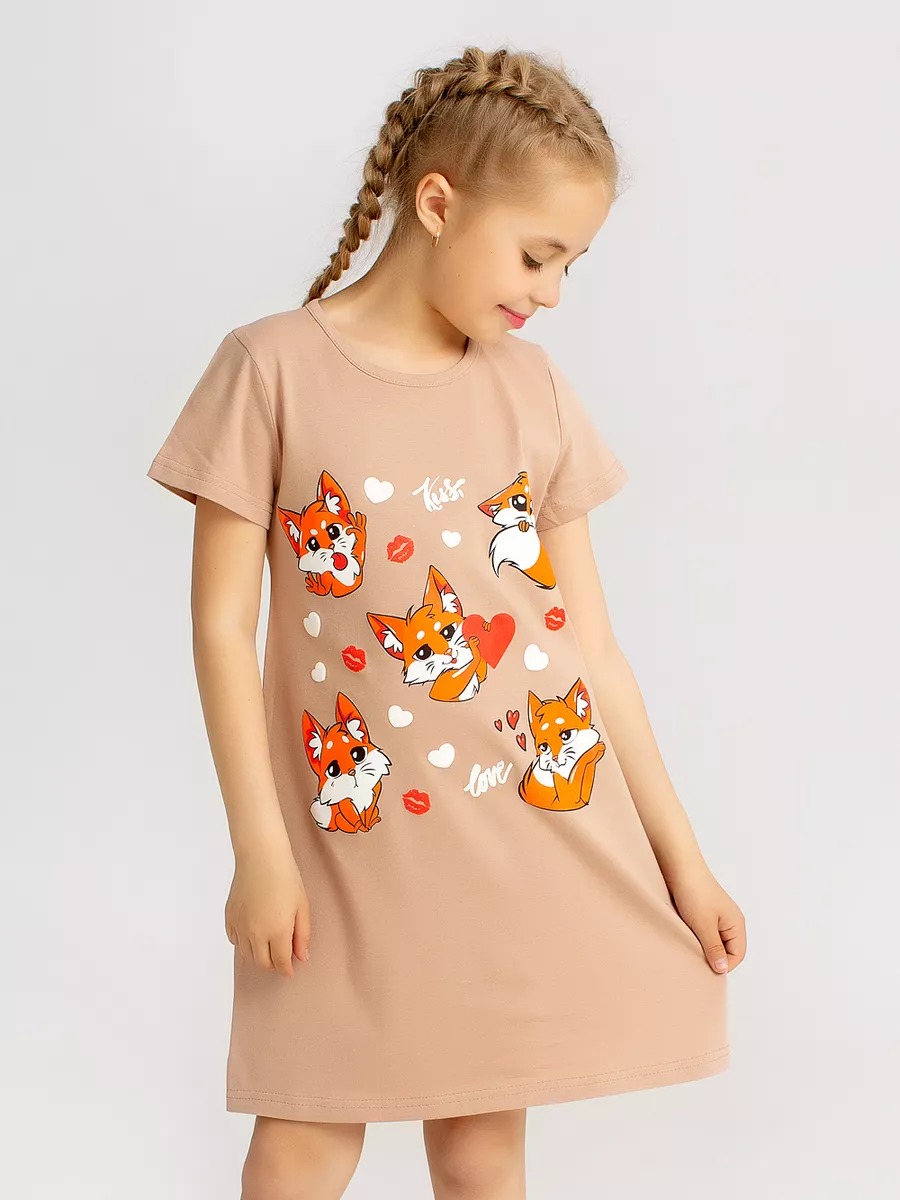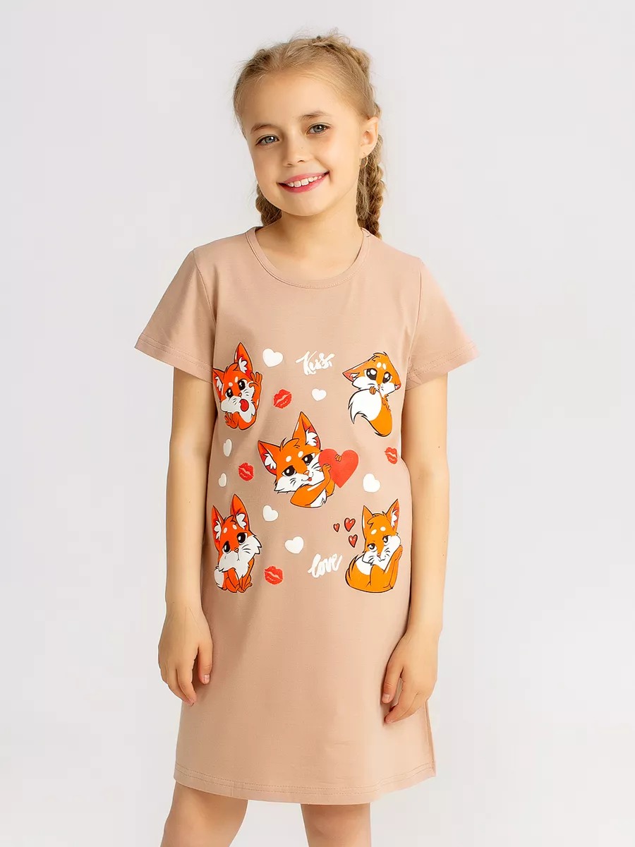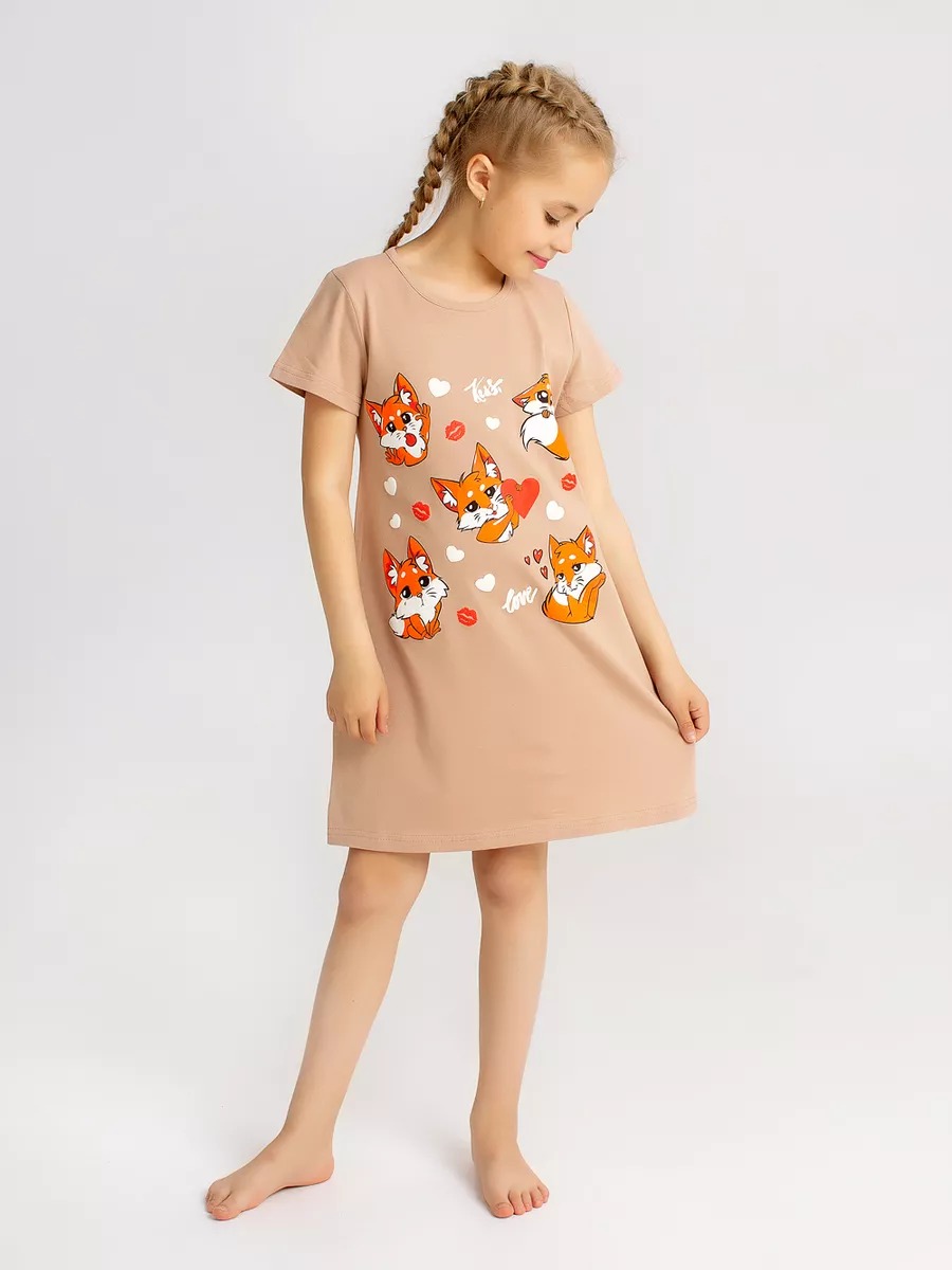 Ночная сорочка "Мультяшки" / Бежевый арт. дк230б для девочки с оригинальным изображением лисят будет любимым элементом домашней одежды Вашей малышки.