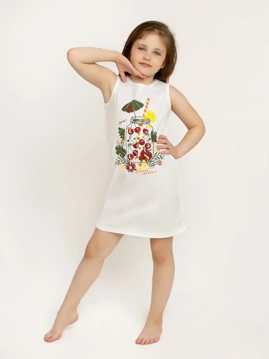 Ночная сорочка "Cherry" арт. дк273 без рукавов для девочки определённо незаменима в детском летнем гардеробе. Рубашка выполнена из натурального дышащего хлопкового материала. Сорочка для девочки имеет классический силуэт-трапецию, благодаря чему она не стесняет движений и Ваша малышка будет чувствовать себя уютно и комфортно в ней, а натуральный материал отлично выводит влагу. Горловина и проймы изделия обрабатываются под окантовку. Полочку украшает нежный и красивый принт. Детская ночная рубашка без рукавов представлена с широким ассортиментом изображений, что помогает отразить любую индивидуальность. Размеры можно подобрать для возраста от 2-х до 12 лет.