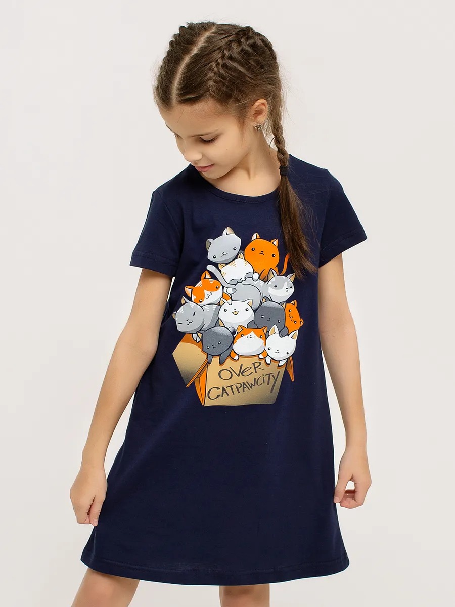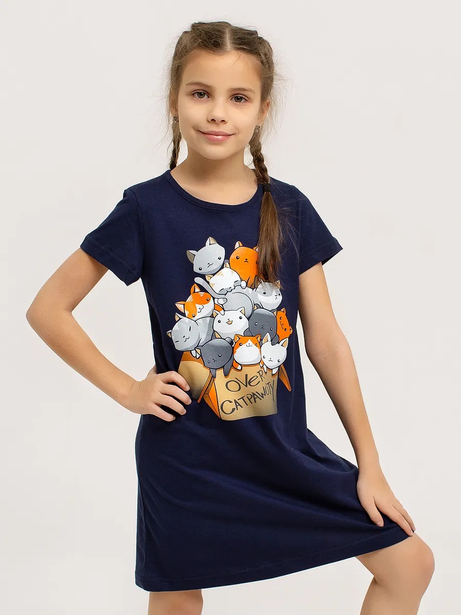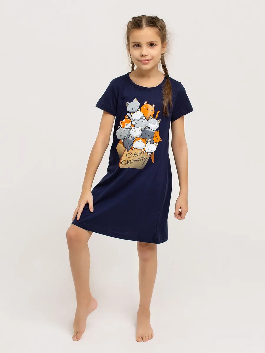 Ночная сорочка "Коты в коробке" арт. дк309тс для девочки - незаменимый элемент детской домашней одежды, особенно в прохладное время года.
