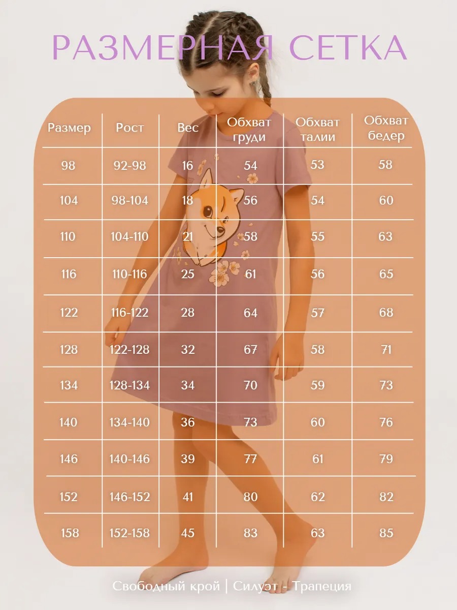 Ночная сорочка "Сиба" арт. дк312лй для девочки - незаменимый элемент детской домашней одежды, особенно в прохладное время года.