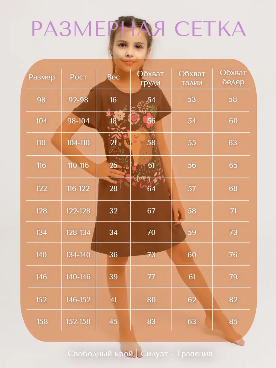 Ночная сорочка имеет классический силуэт-трапеция и выполненная из мягкой хлопковой дышащей ткани, за счёт чего в ней будет максимально удобно и комфортно. Длинные рукава придают дополнительное тепло во холодное время года. В этой яркой и оригинальной ночной сорочке ваша малышка будет чувствовать себя уютно как во время сна, так и во время бодрствования. Горловина изделия обрабатывается под окантовку.
