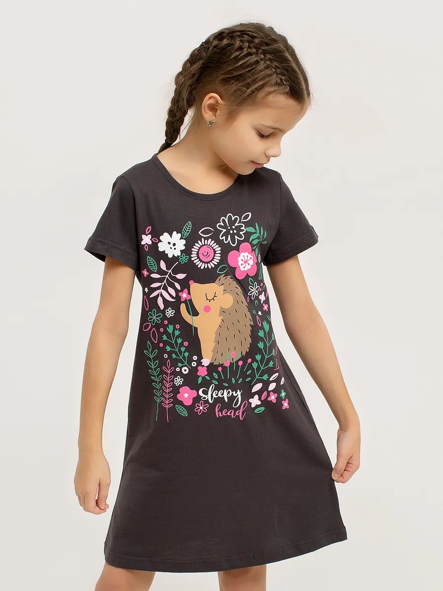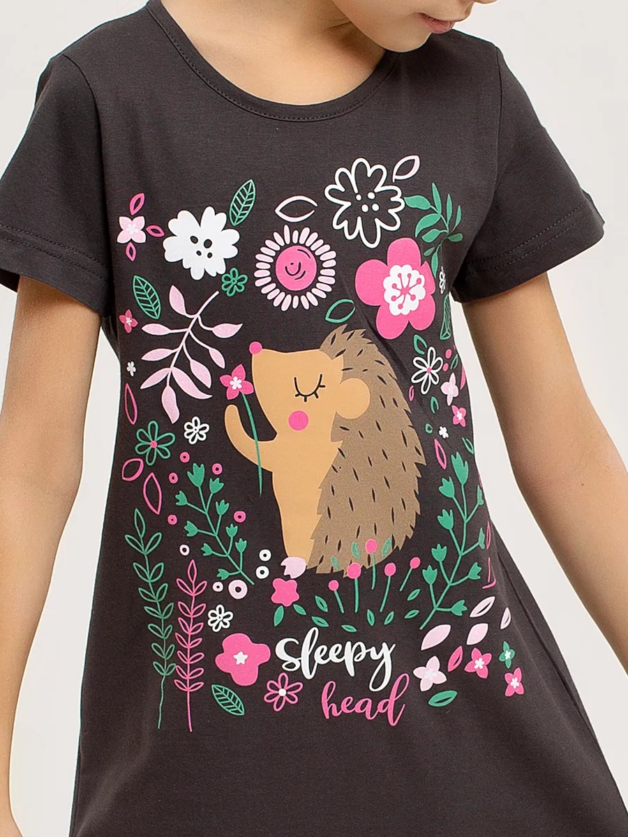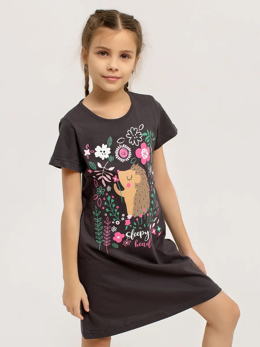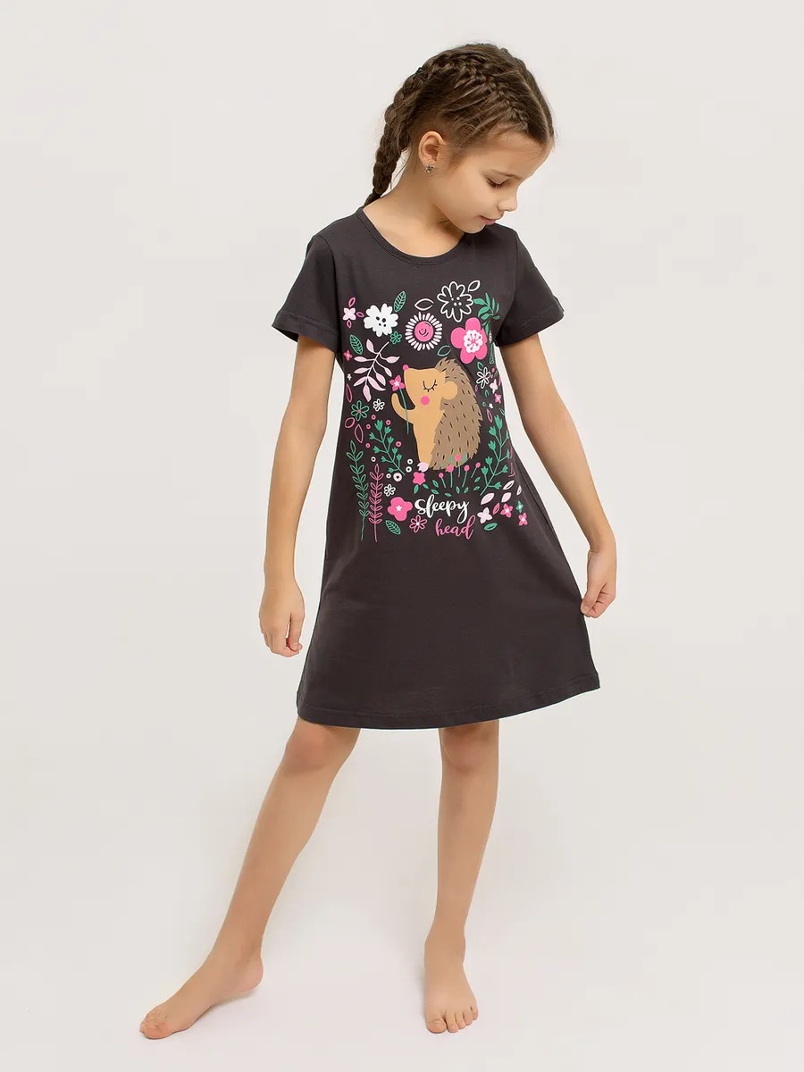 Ночная сорочка "Ёжик" / Темно-серый арт. дк311с для девочки - незаменимый элемент детской домашней одежды, особенно в прохладное время года.
