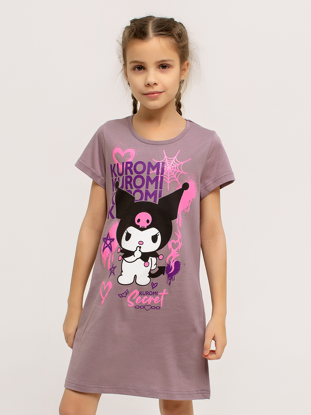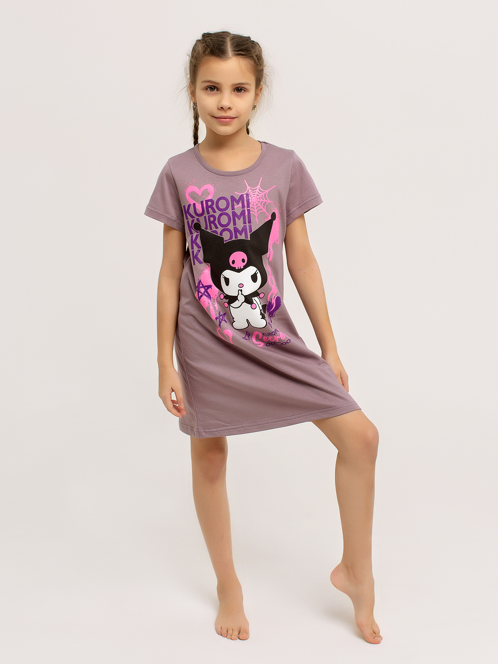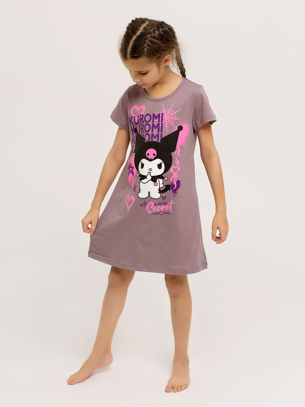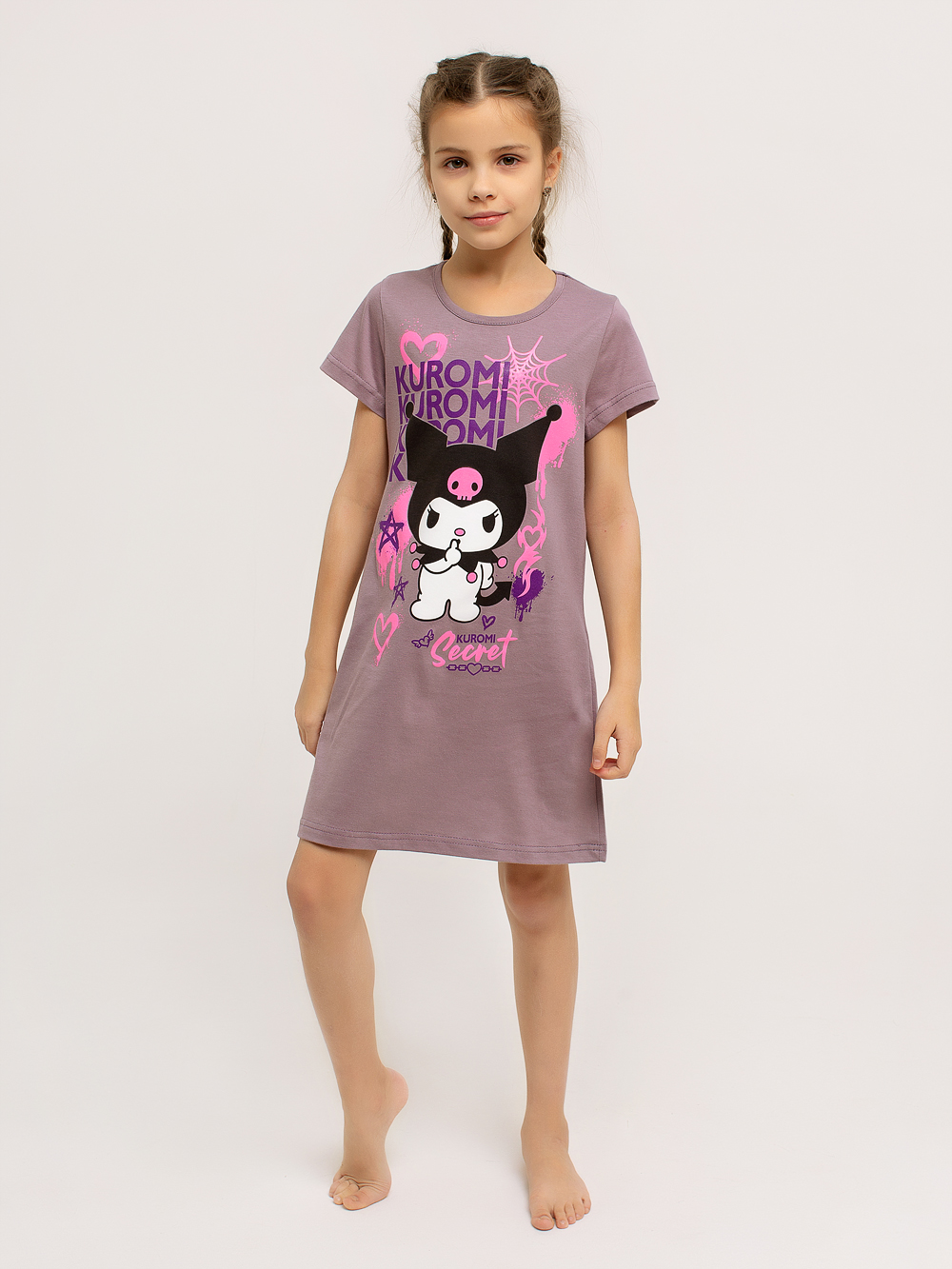 Сорочка "Kuromi" арт. дк314кф / Кофе имеет классический силуэт-трапеция. Короткие рукава и дышащий хлопковый материал позволяют чувствовать себя комфортно в любых условиях. В этой яркой и оригинальной сорочке ваша малышка будет чувствовать себя уютно как во время сна, так и во время бодрствования. Горловина изделия обрабатывается под окантовку. Полочку украшает очень красивый принт.