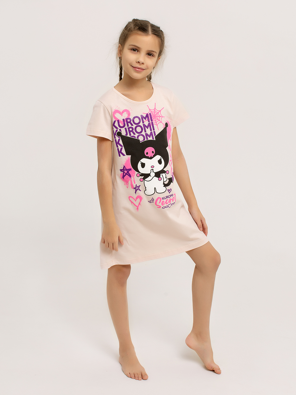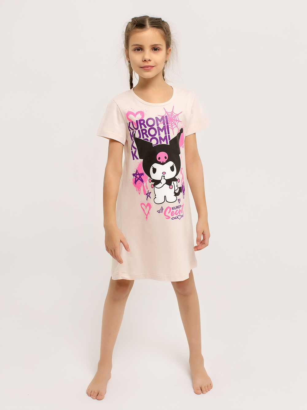 Сорочка "Kuromi" арт. дк314роз / Розовый имеет классический силуэт-трапеция. Короткие рукава и дышащий хлопковый материал позволяют чувствовать себя комфортно в любых условиях. В этой яркой и оригинальной сорочке ваша малышка будет чувствовать себя уютно как во время сна, так и во время бодрствования. Горловина изделия обрабатывается под окантовку. Полочку украшает очень красивый принт.