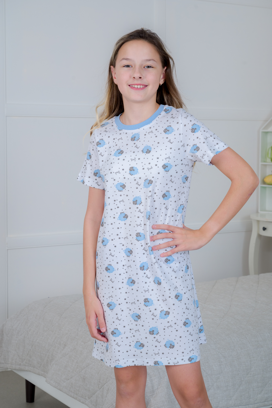 Нежная детская ночная сорочка из мягкого интерлока Ласка — идеальный выбор для комфортного сна вашего ребёнка, благодаря натуральному составу и приятной текстуре материала. Свободный крой и гипоаллергенные свойства ткани обеспечивают максимальный комфорт во время сна, а прочность материала гарантирует долговечность изделия даже при частых стирках.