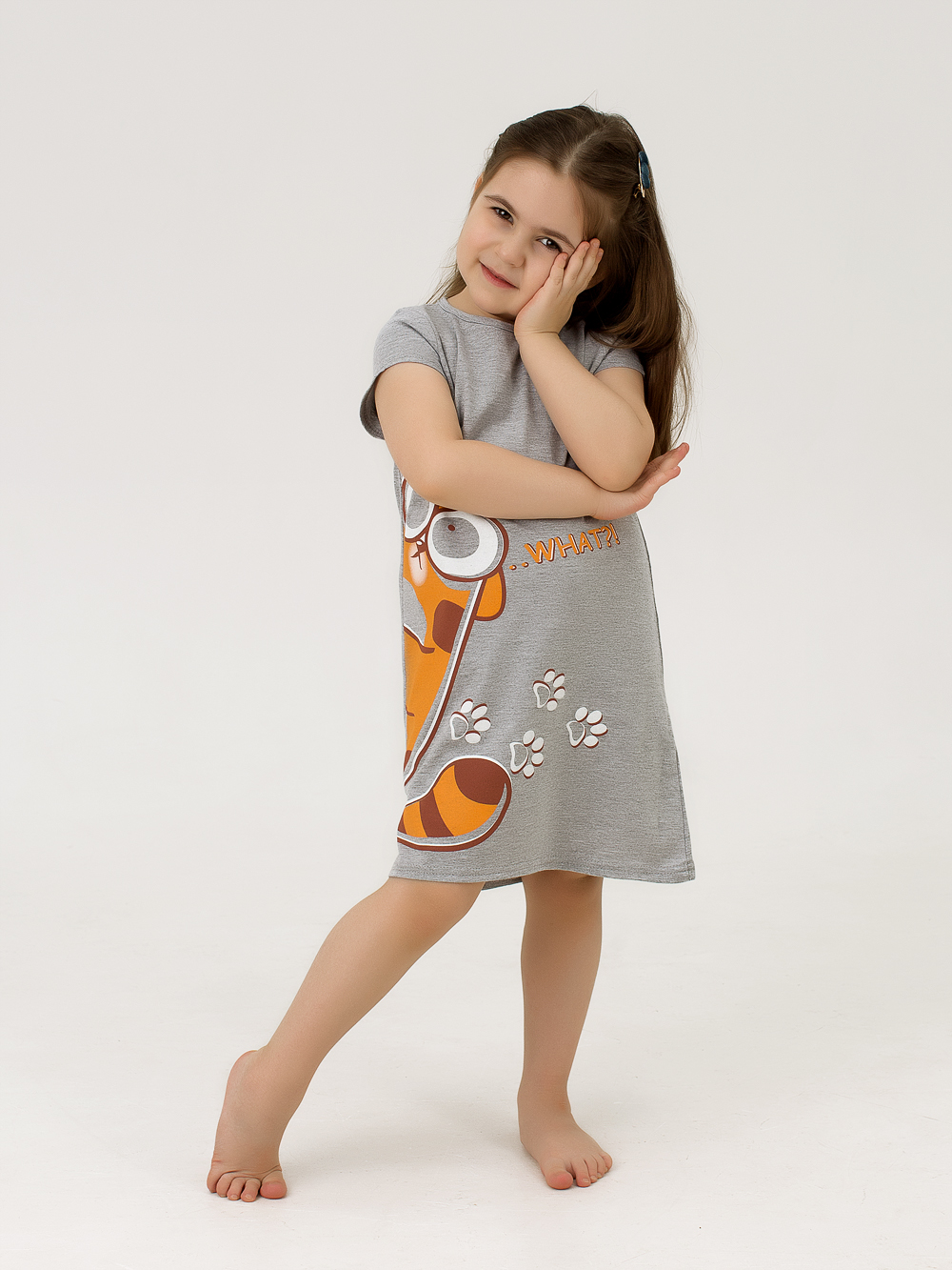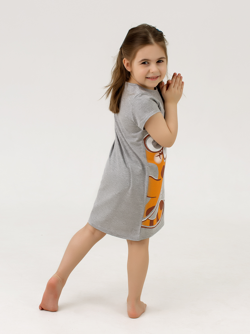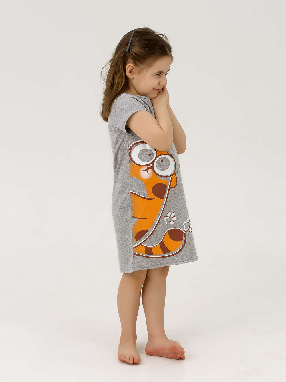 Ваша малышка будет определённо рада такому подарку! Сорочка имеет классический силуэт-трапеция. Короткие рукава и дышащий хлопковый материал позволяют чувствовать себя комфортно в любых условиях. В этой оригинальной сорочке ваша малышка будет чувствовать себя уютно как во время сна, так и во время бодрствования. Горловина изделия обрабатывается под окантовку. Полочку украшает необычный принт.